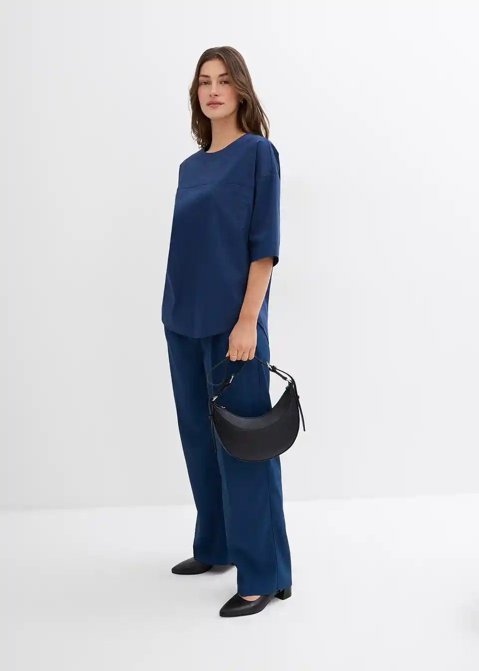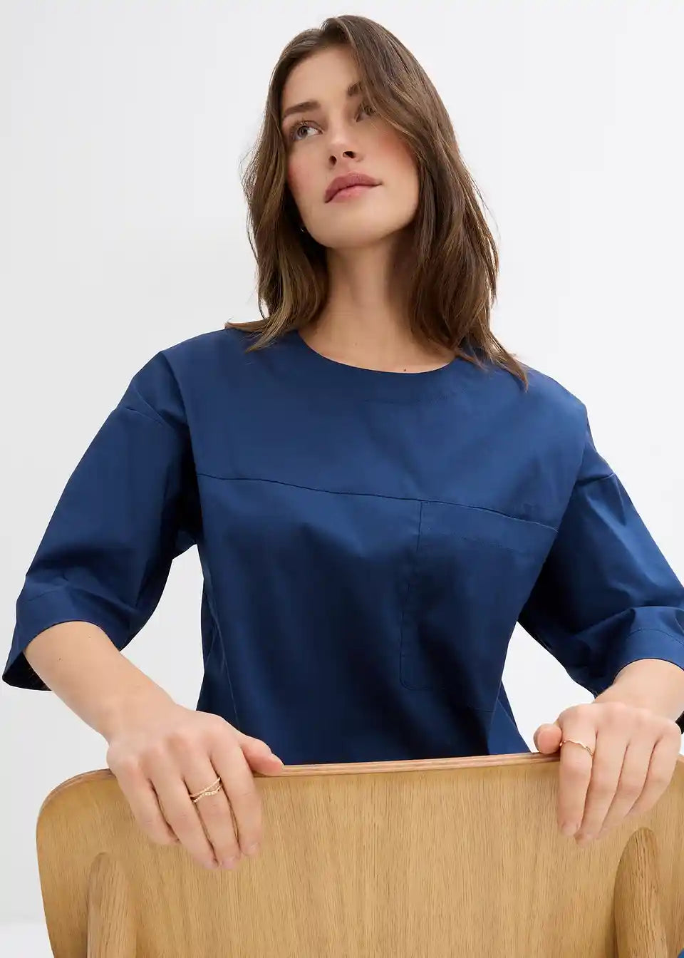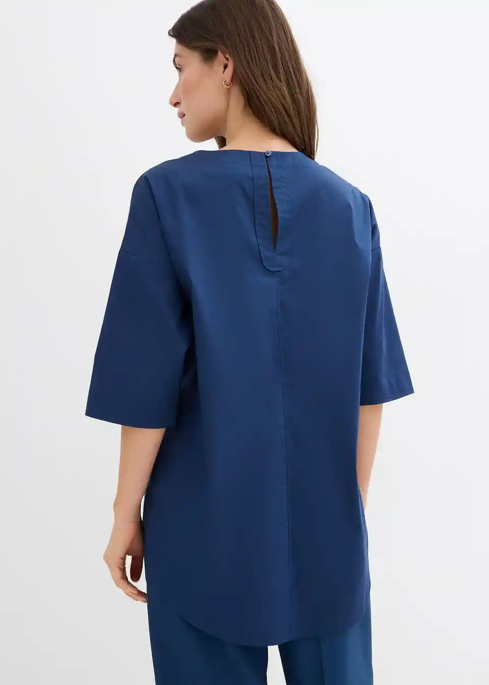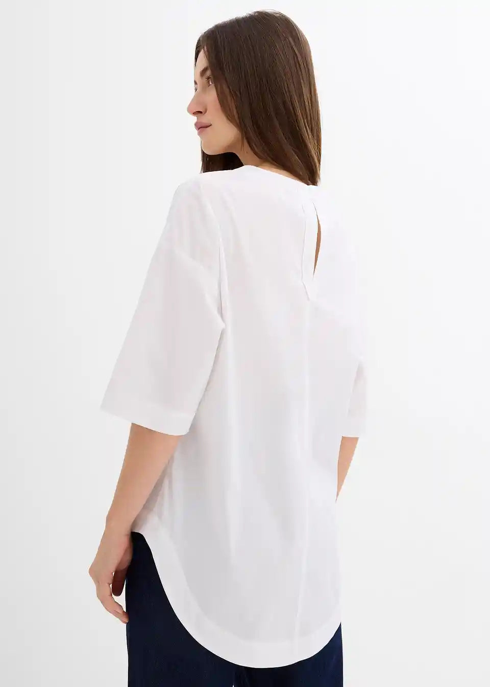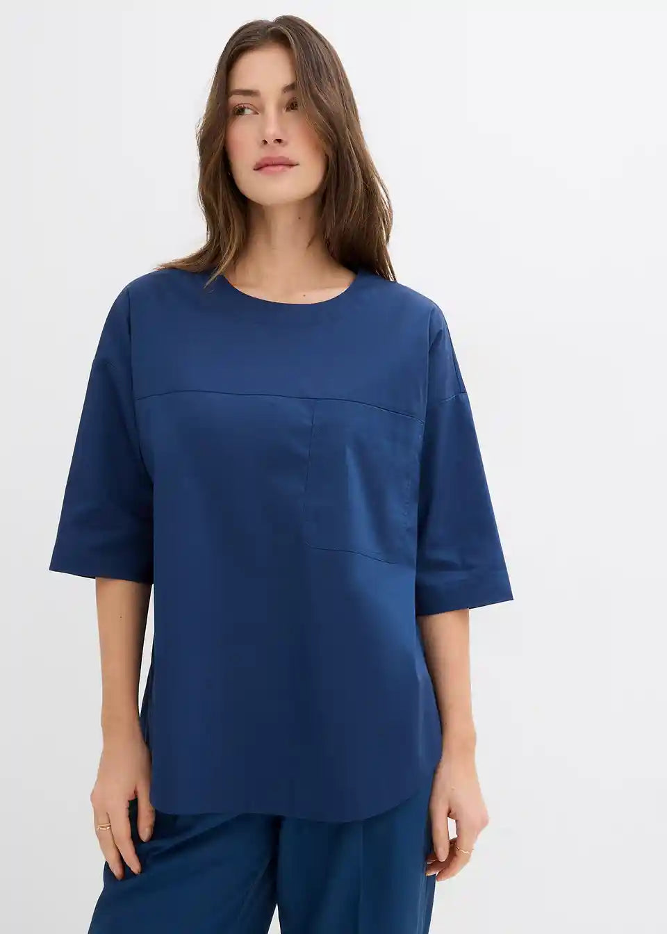 Majica v kroju Oversized z enim prsnim žepom in z zarezico z zapenjanjem na gumb na zatilju