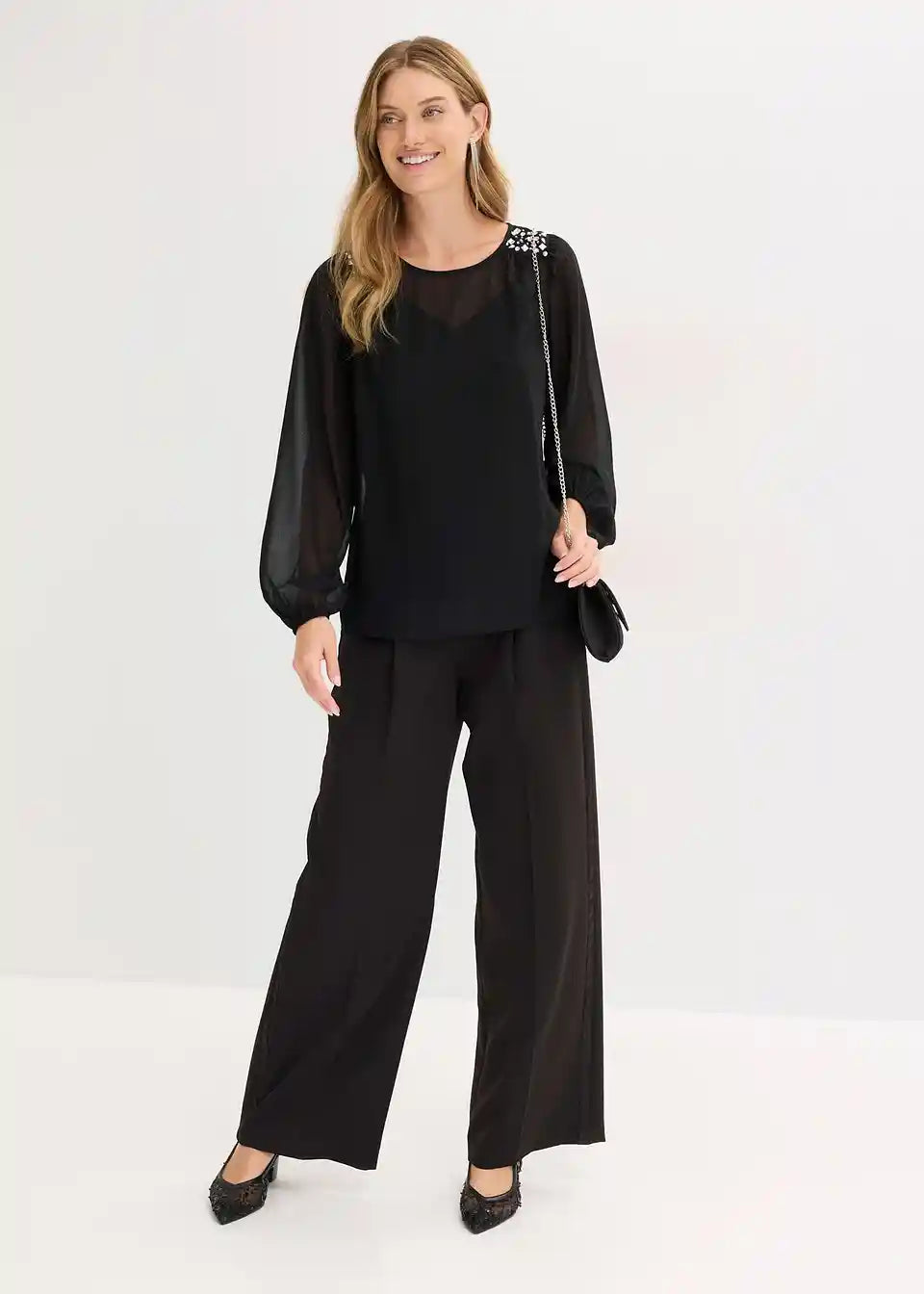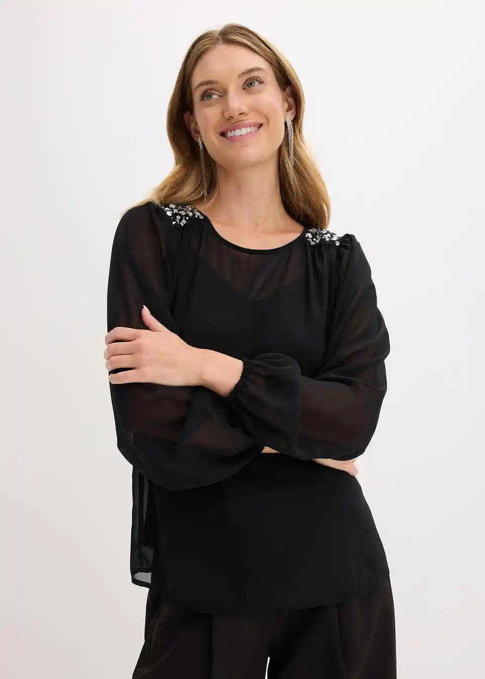 Bluza iz šifona z okrasnimi bleščečimi kamenčki
