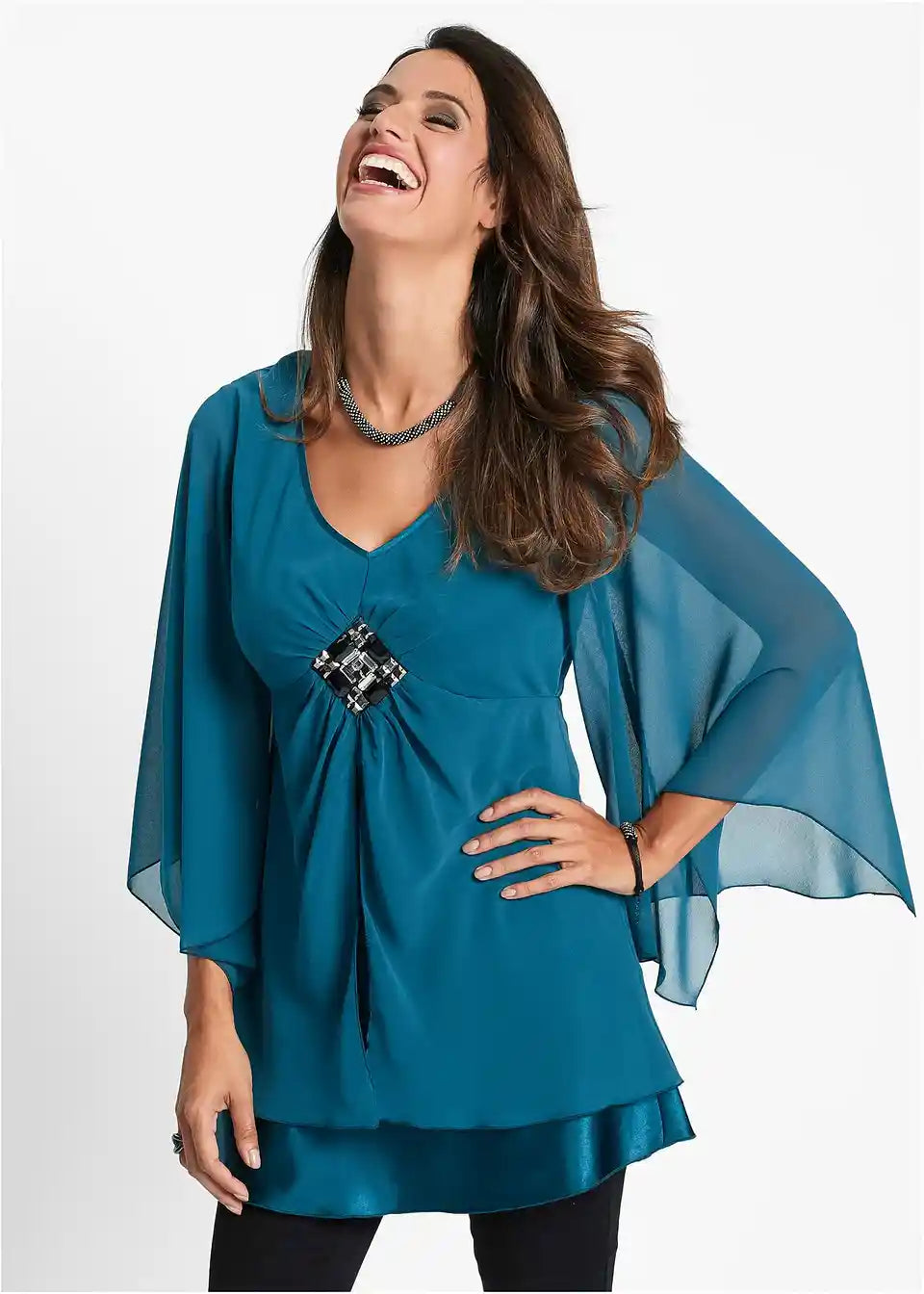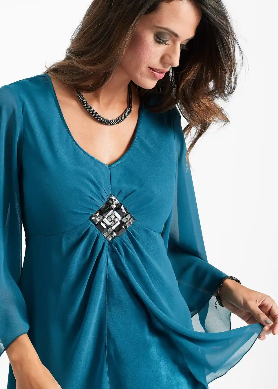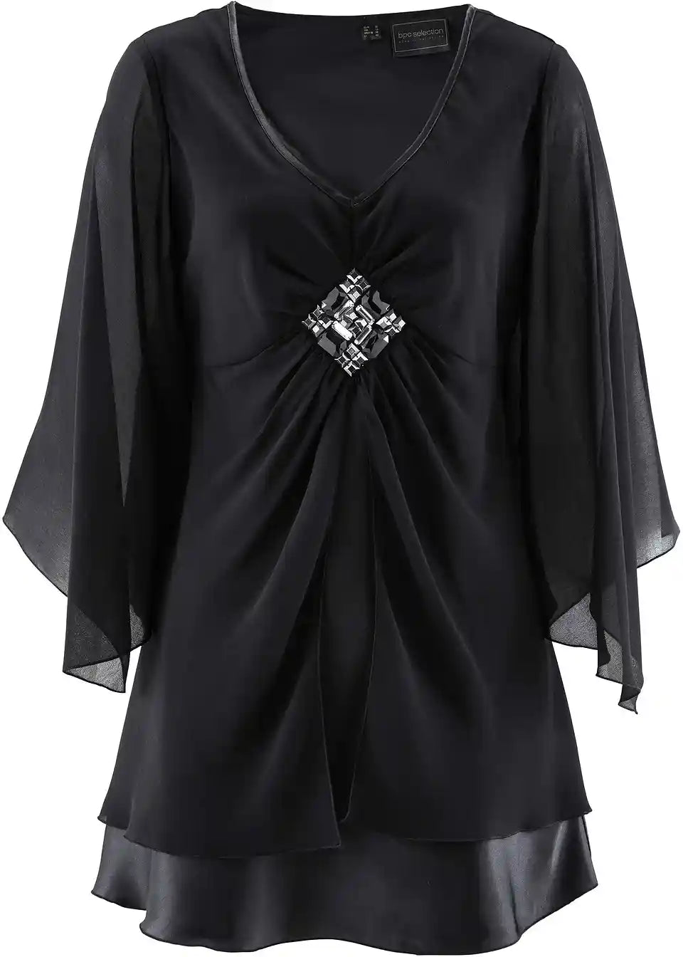 Ekstravagantna tunika z bleščečo aplikacijo spredaj