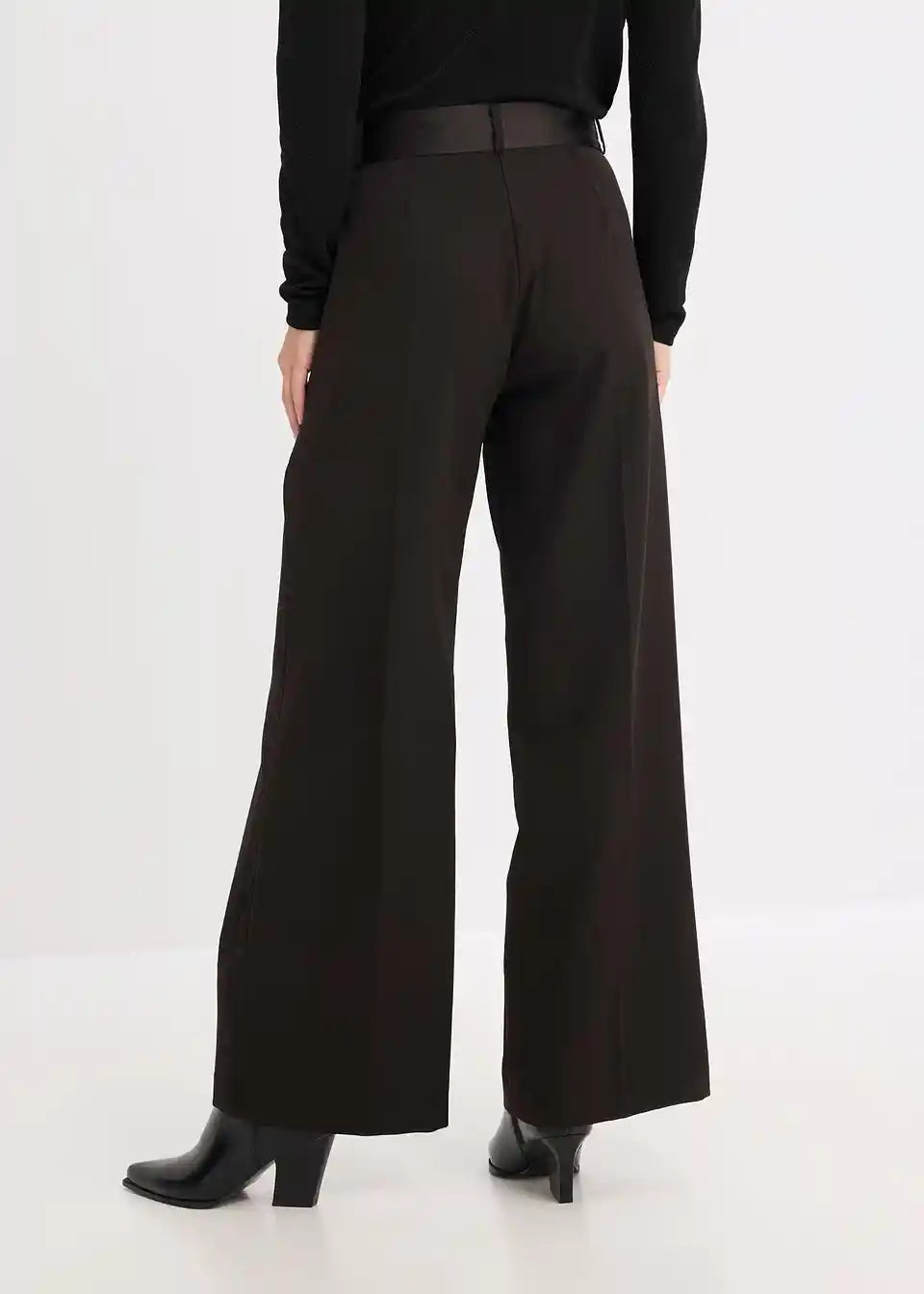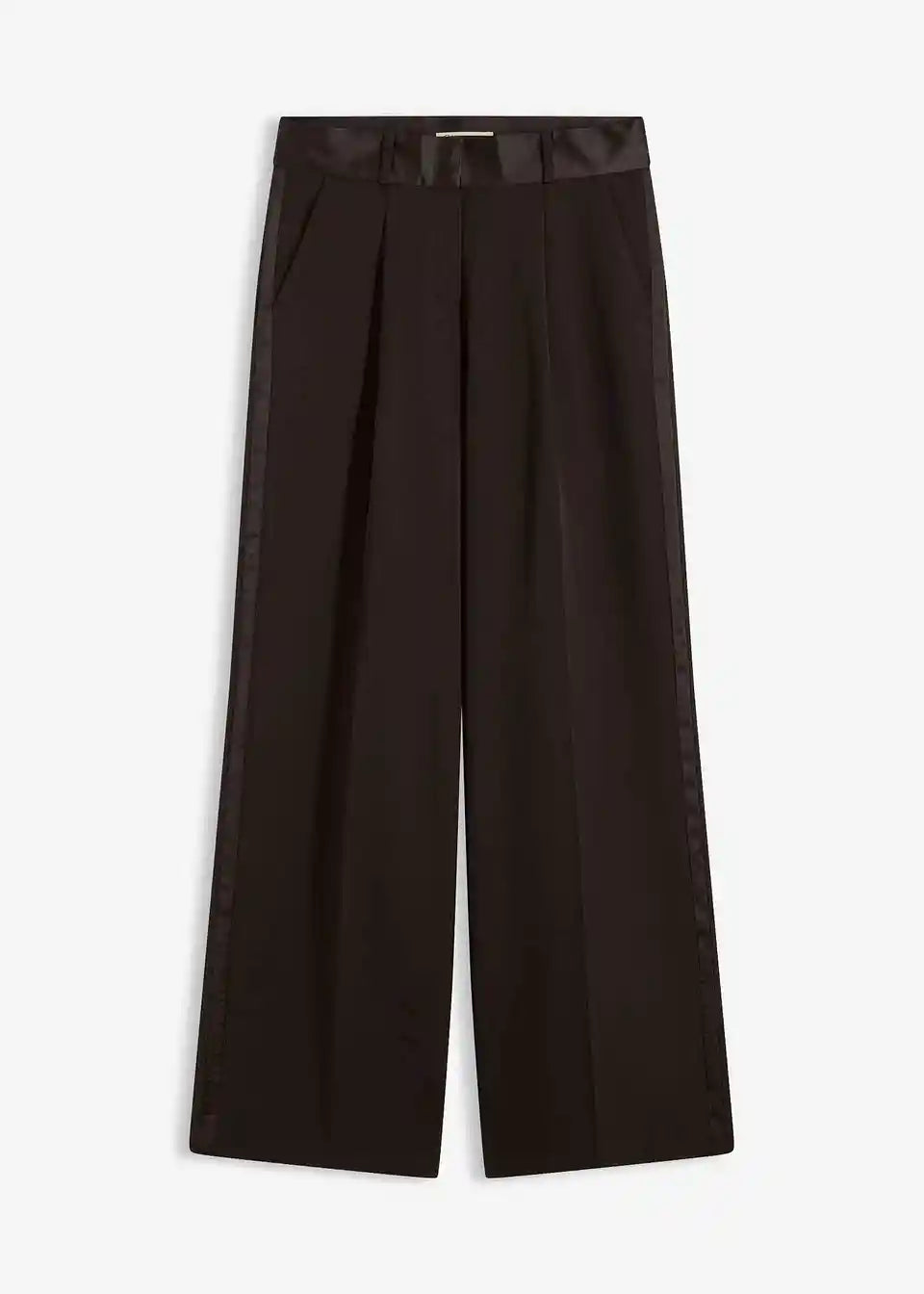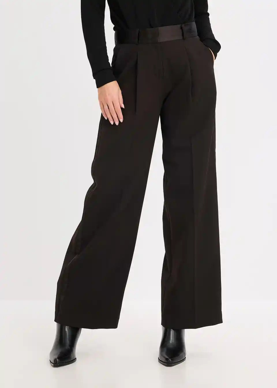 Marlene hlače z obrobo v pasu iz sijočega satena