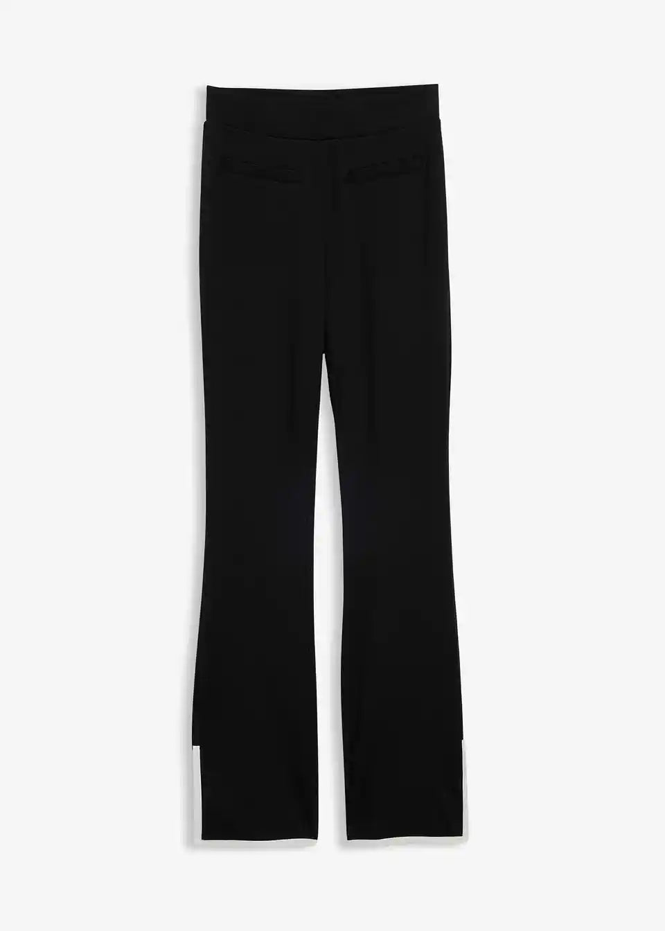 Hlače z razširjenim spodnjim robom s kontrastnimi stranskimi razporki in dvema žepoma s paspulo spredaj