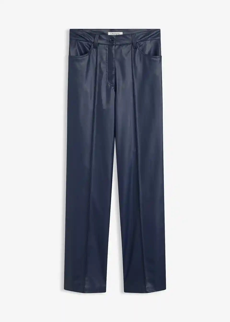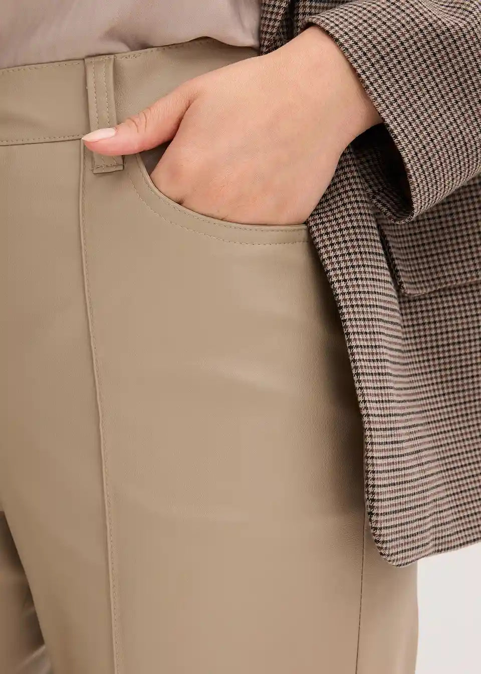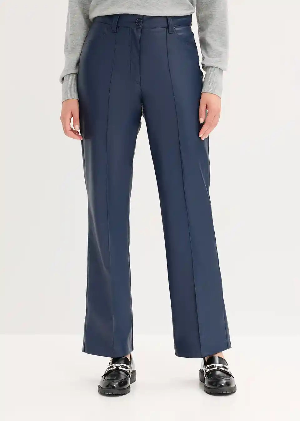 Hlače z ravnimi hlačnicami iz umetnega usnja s prešitimi črtami