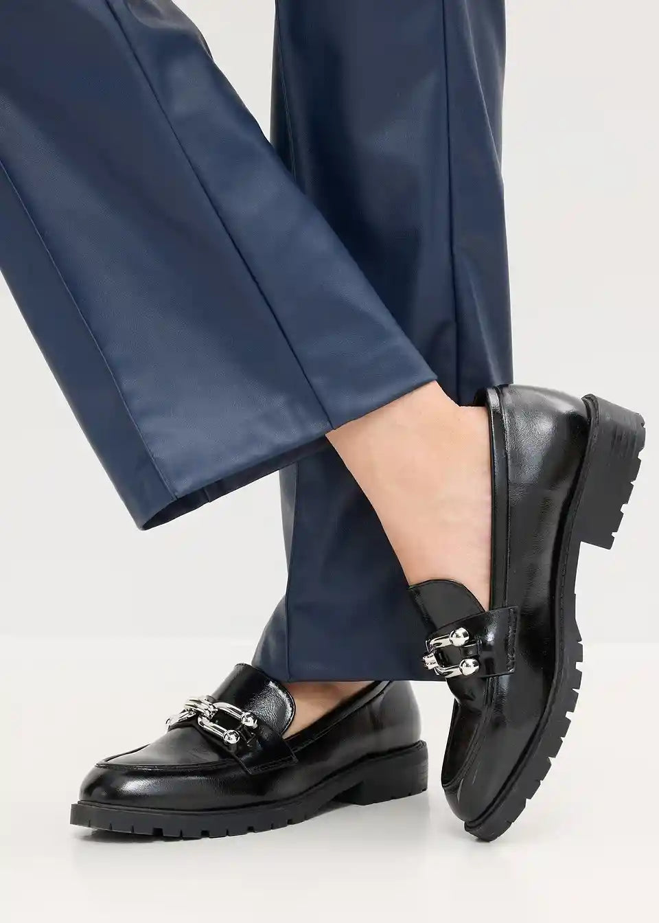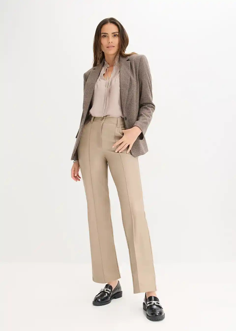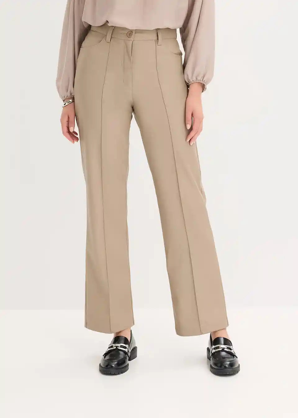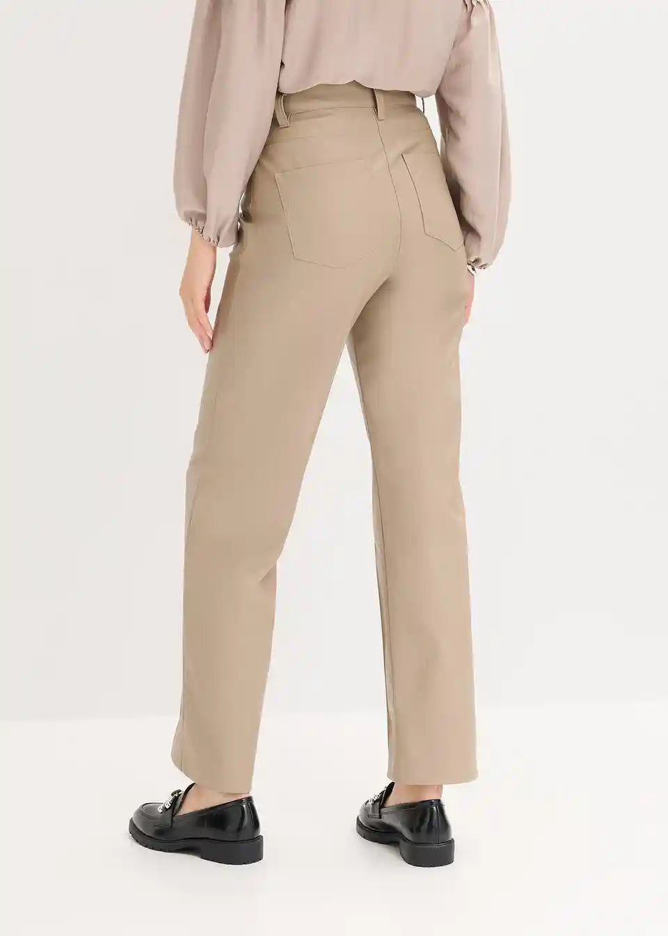 Hlače z ravnimi hlačnicami iz umetnega usnja s prešitimi črtami