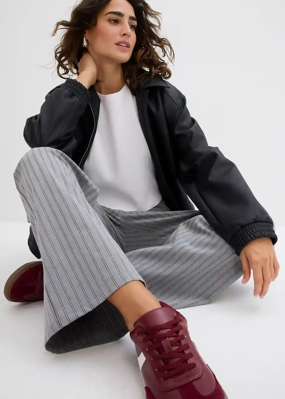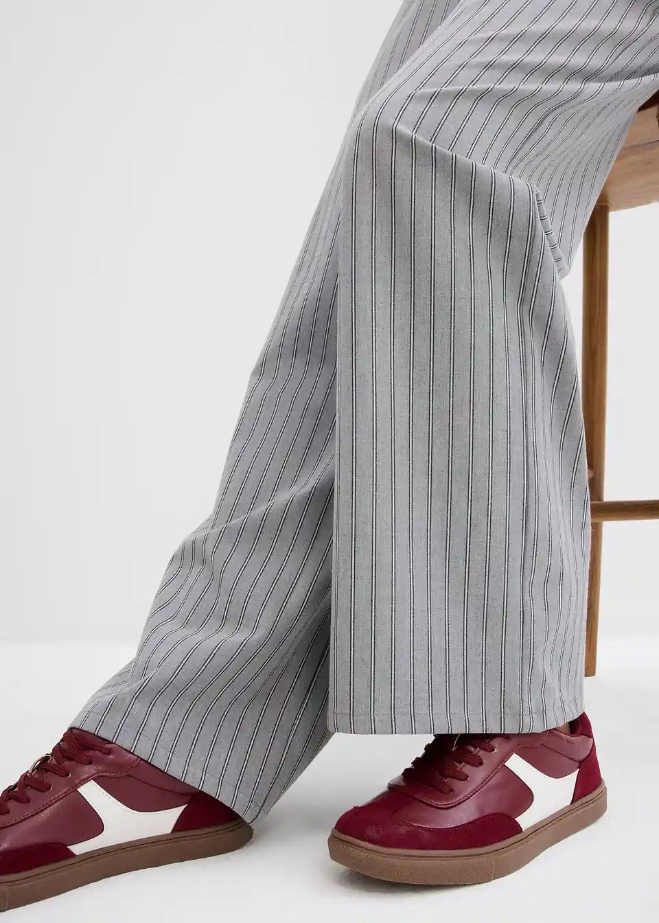Ležerne hlače na slip s širokimi hlačnicami, črtaste