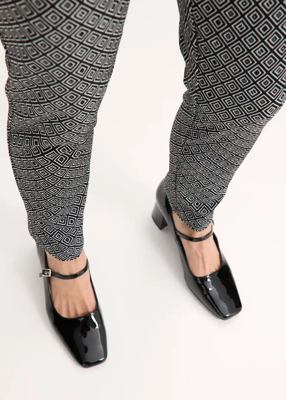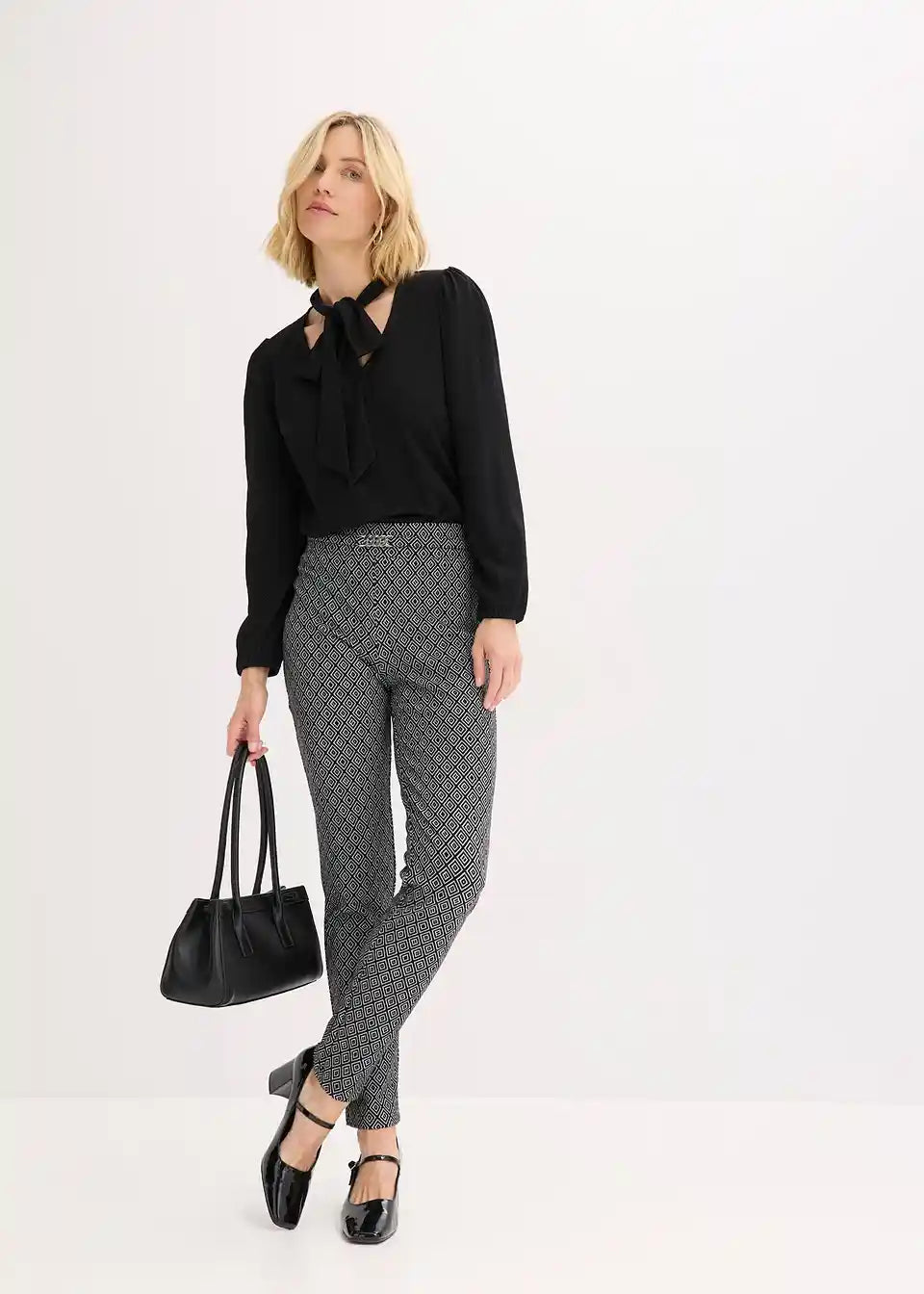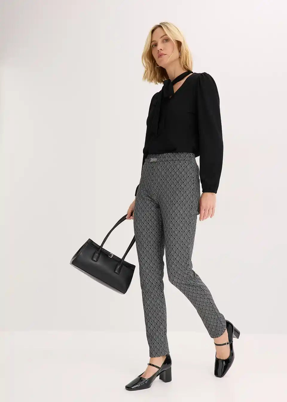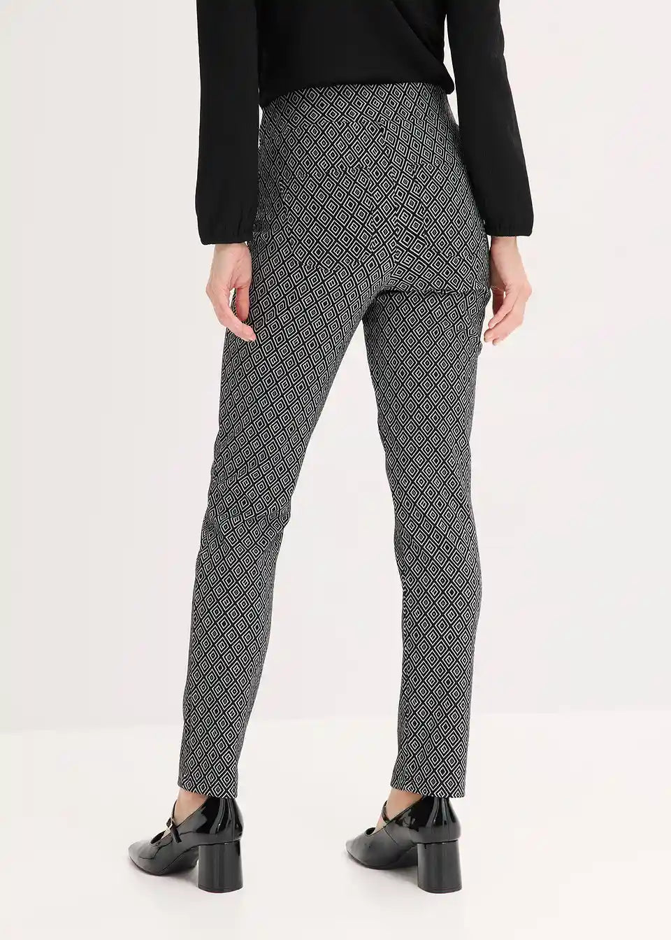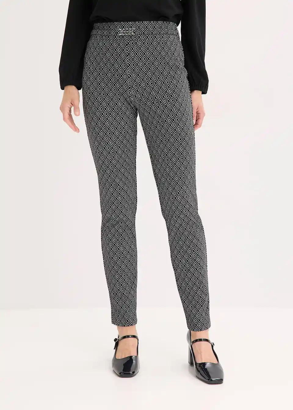 Elegantne žakarske hlače brez zapenjanja z okrasno zaponko