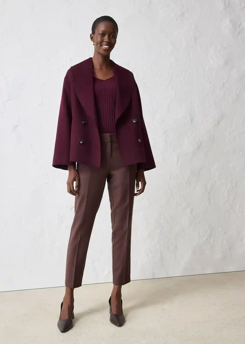 Material:zgornji material: 53% volna, 25% poliester, 20% viskoza, 2% elastan, podloga: 55% poliester (recikliran), 45% viskoza