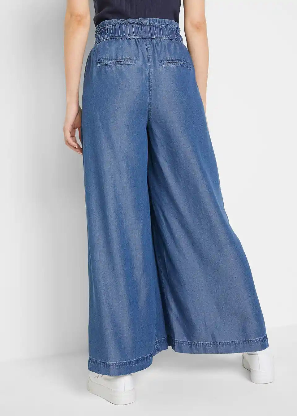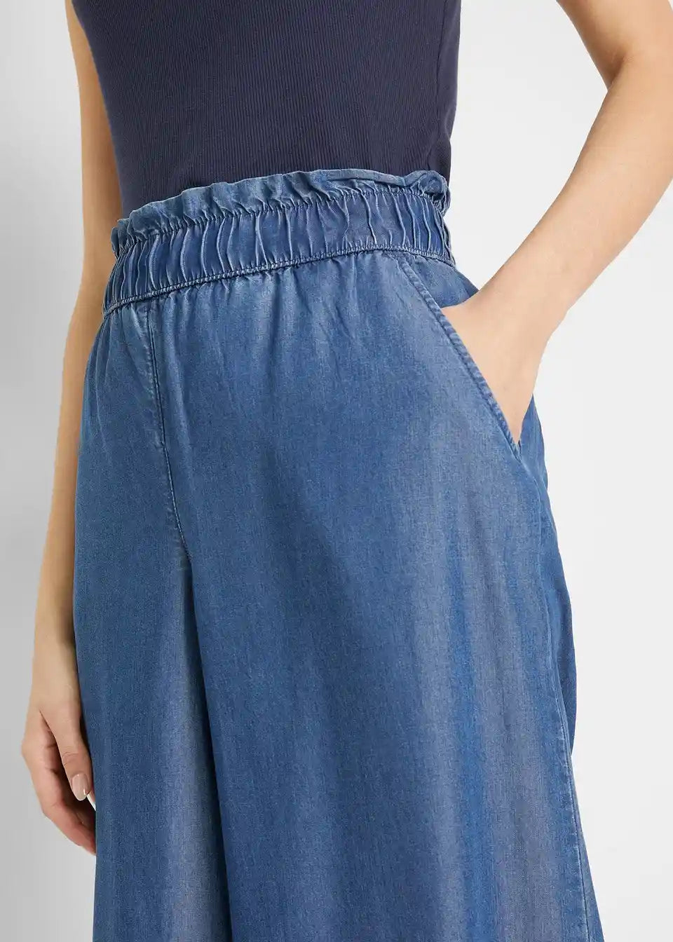 lahke hlače v jeans videzu iz hladnega lyocella z udobnim pasom