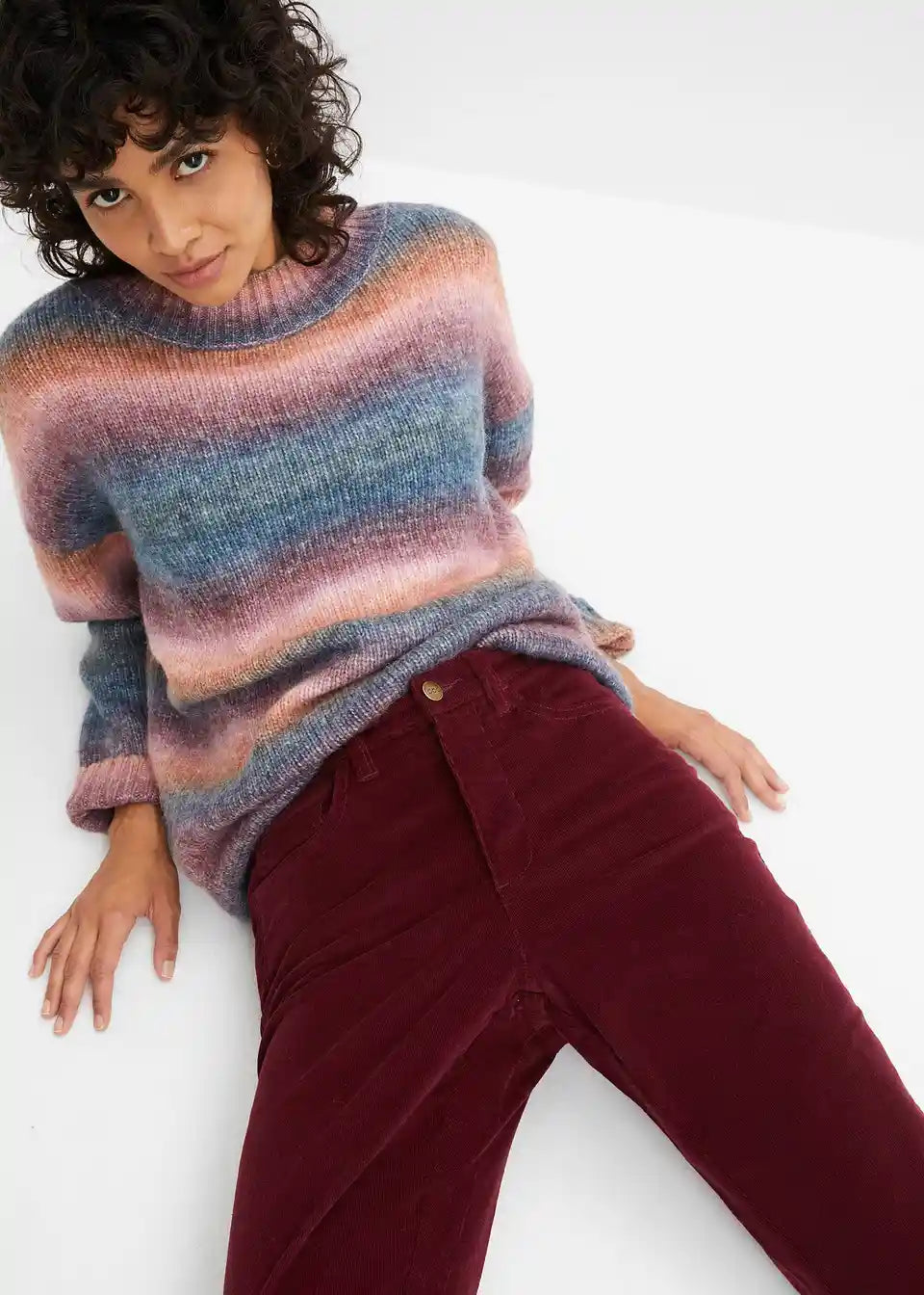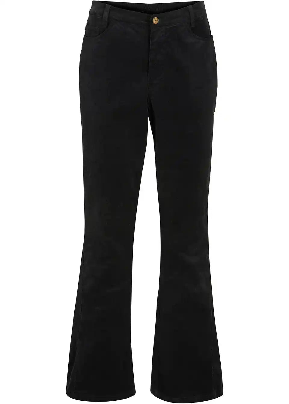 Stilske kordnaste hlače na zvon, izdelane iz elastičnega materiala.