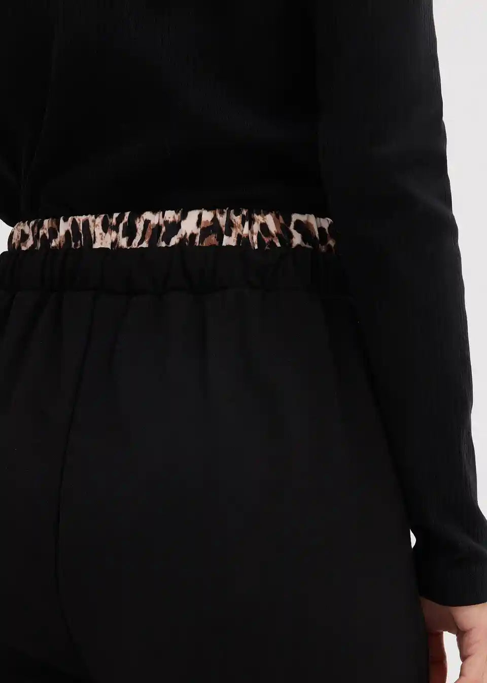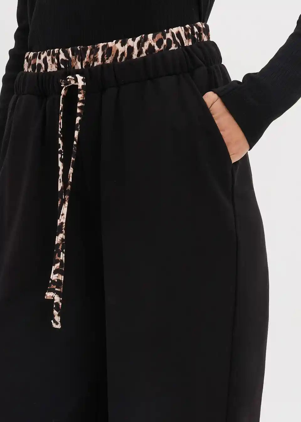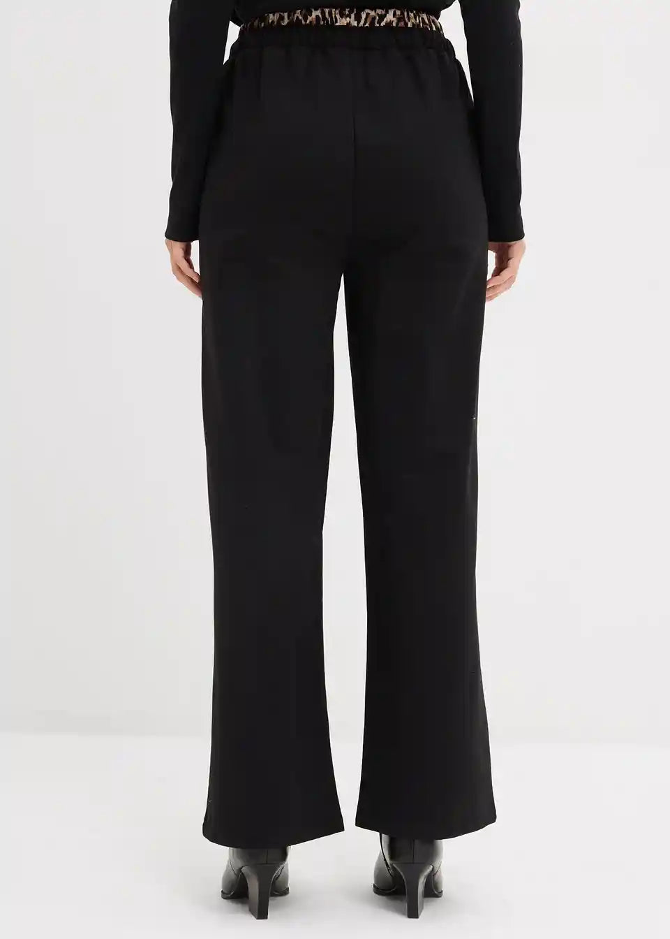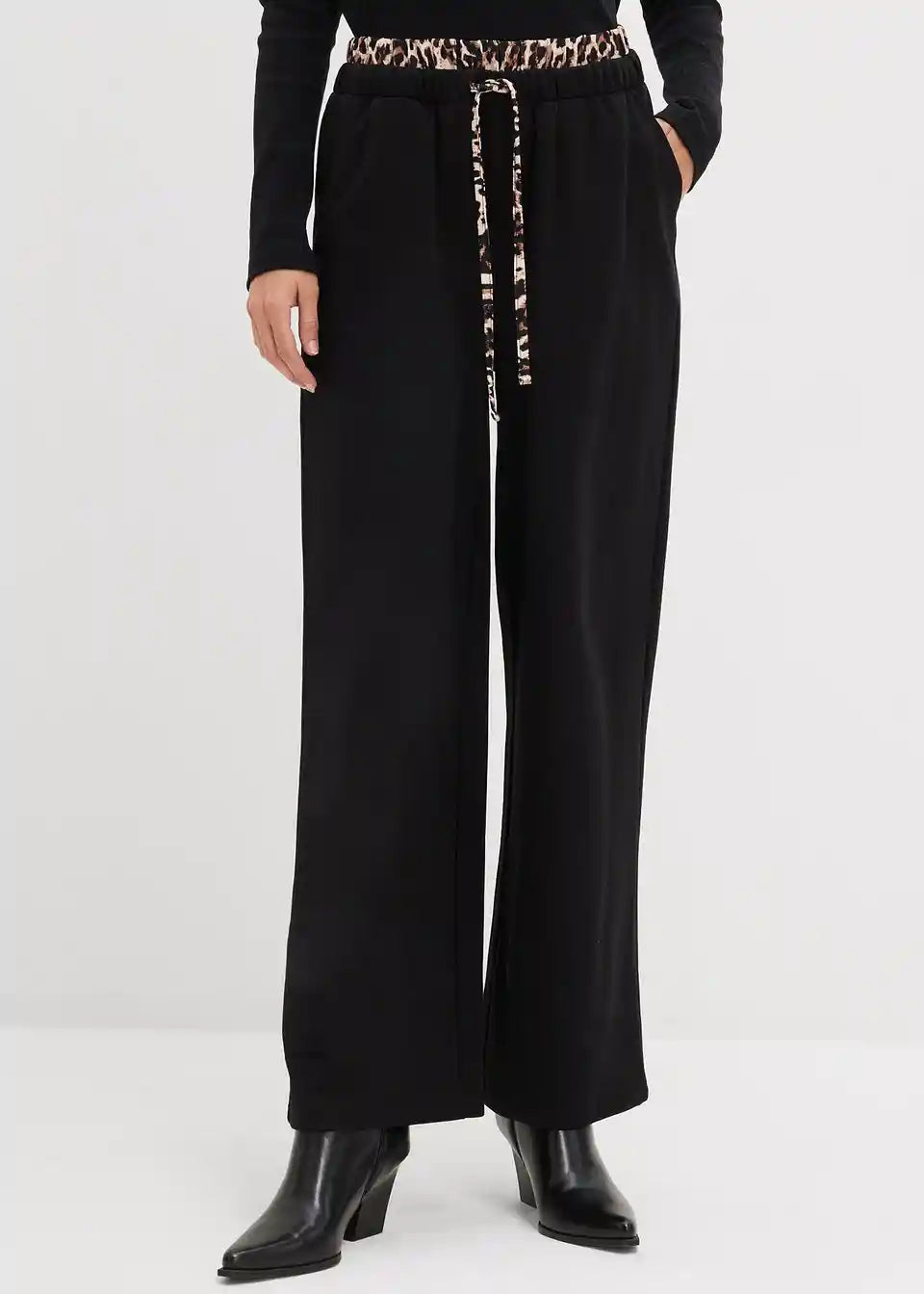Široke hlače iz trikoja s kontrastnim pasom in detajli vezalk