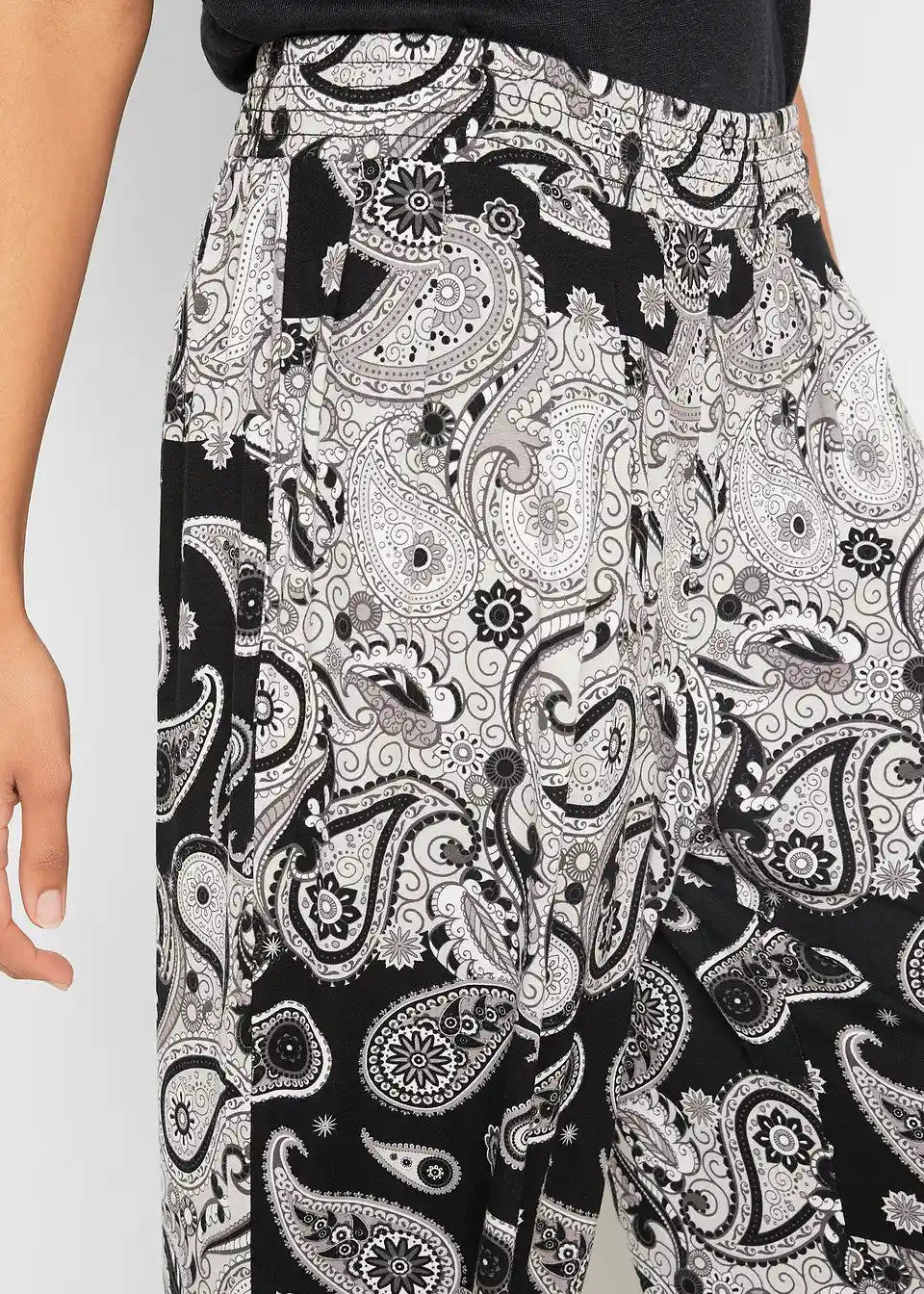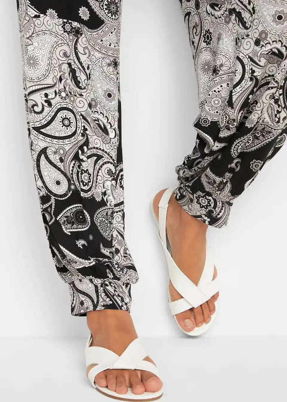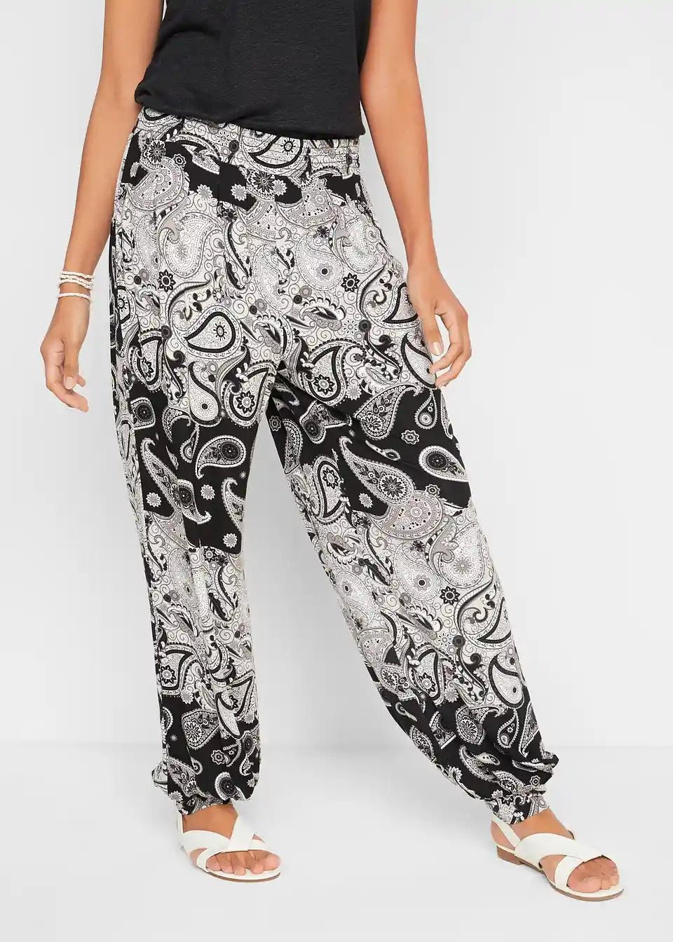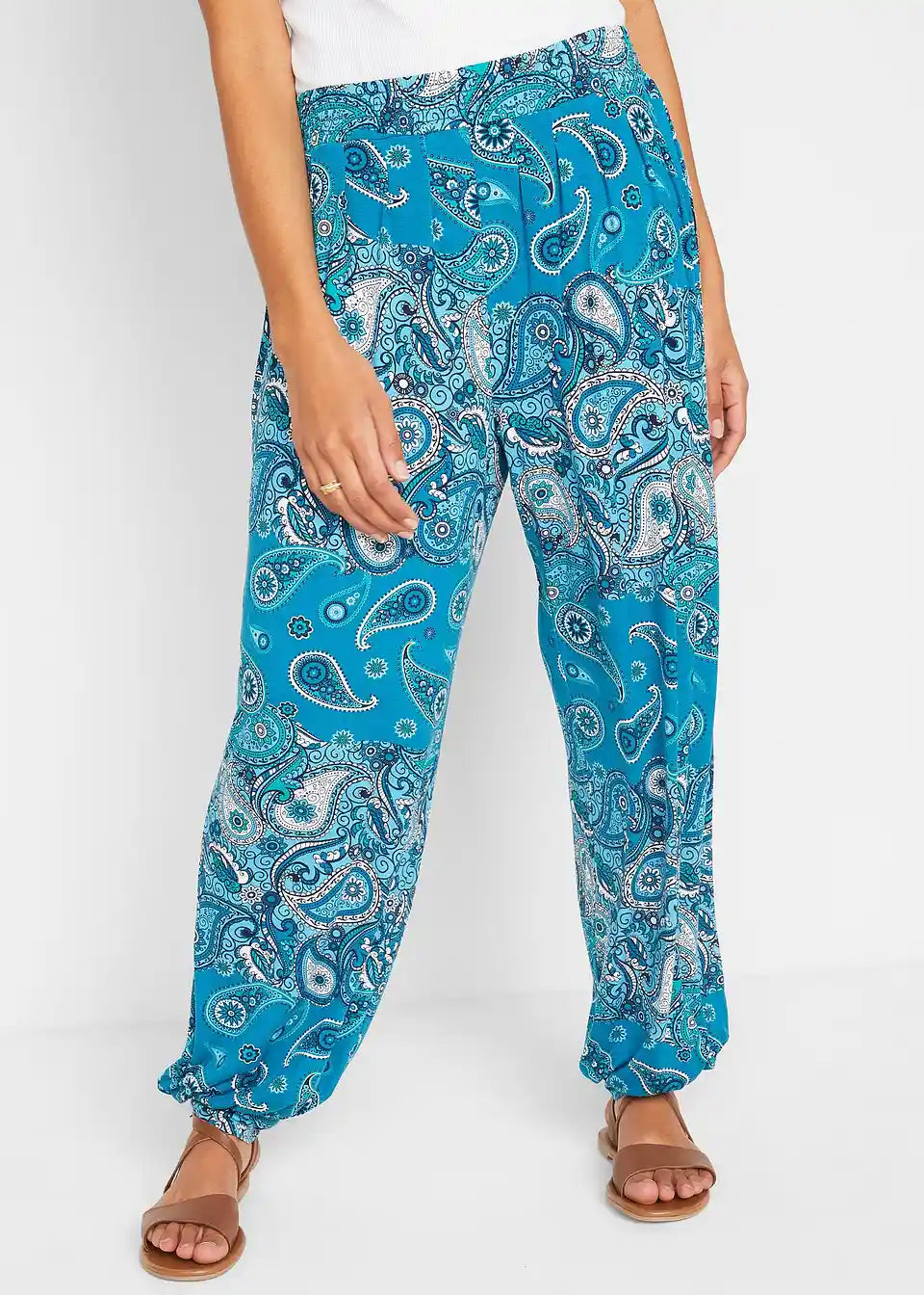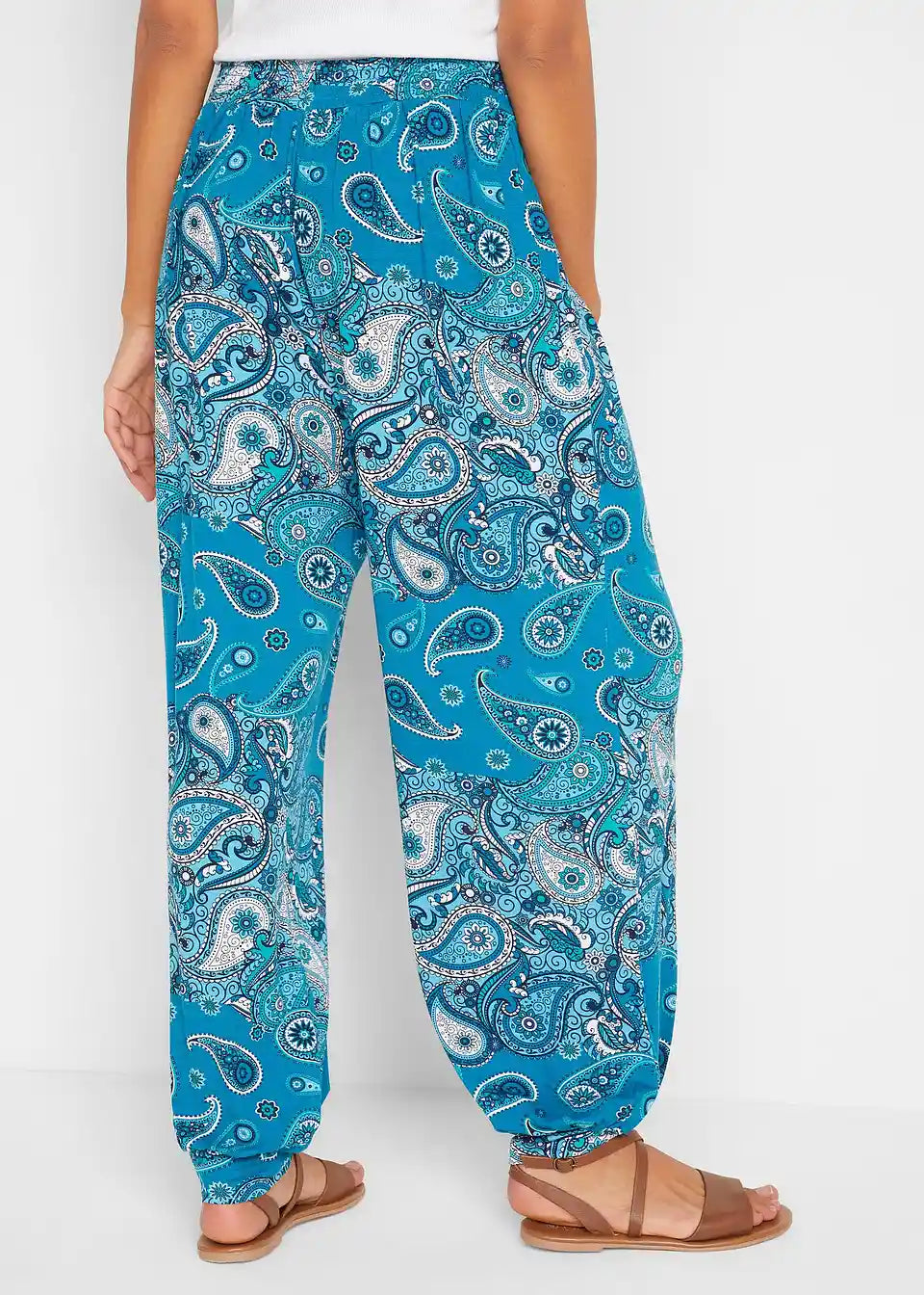 Udobne jersey harem hlače s čudovitim paisley potiskom in udobnim shiranim pasom