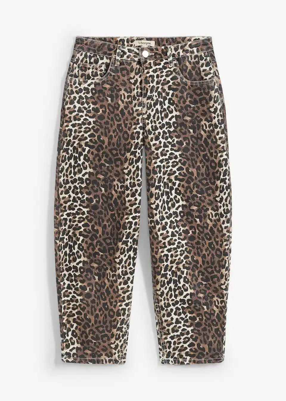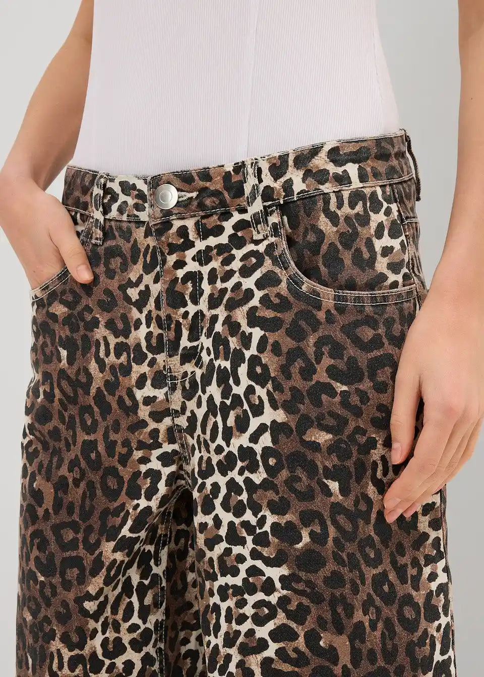 Široke Barrel-jeans hlače z leopardjim vzorcem, srednja višina pasu