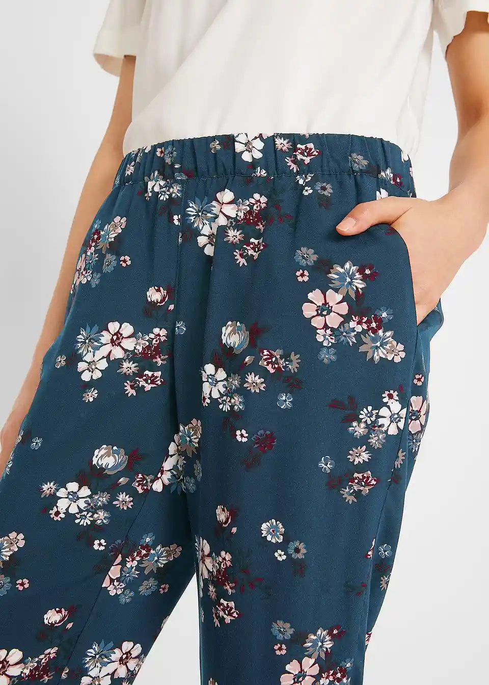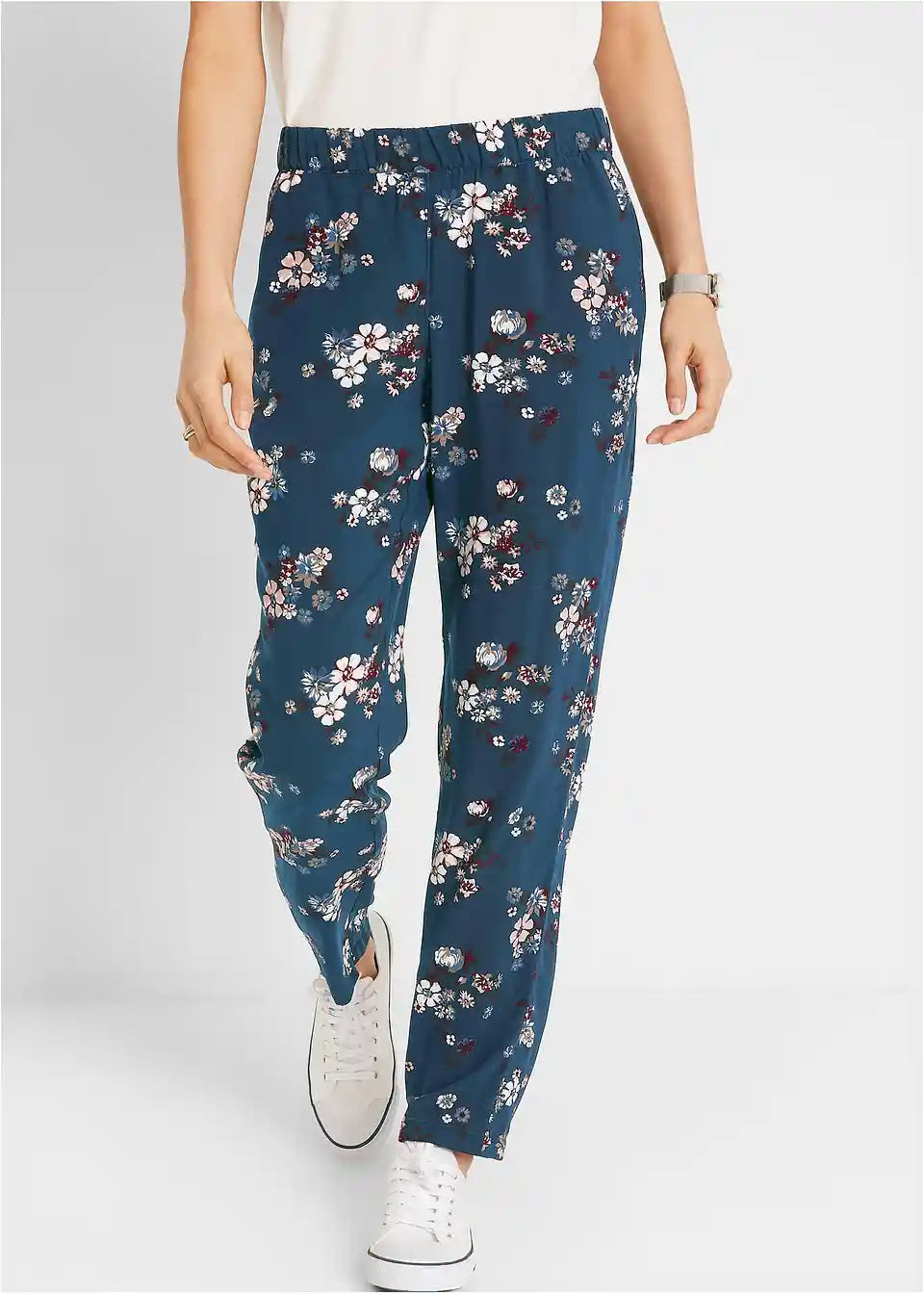 Hlače iz viskoze brez zapenjanja z udobno širino na stegnih in udobnim pasom