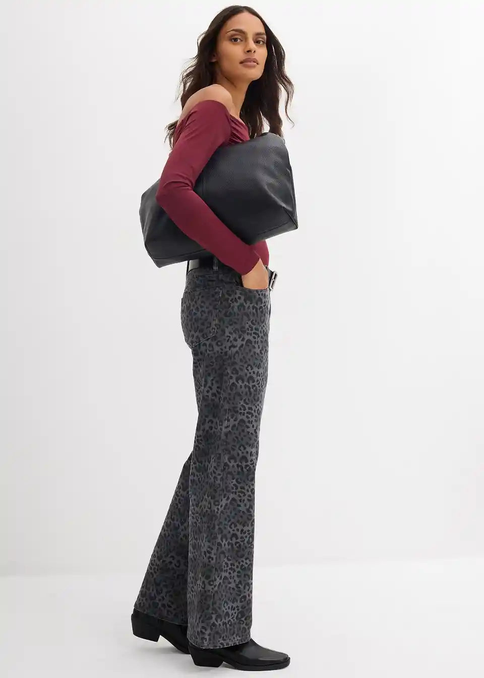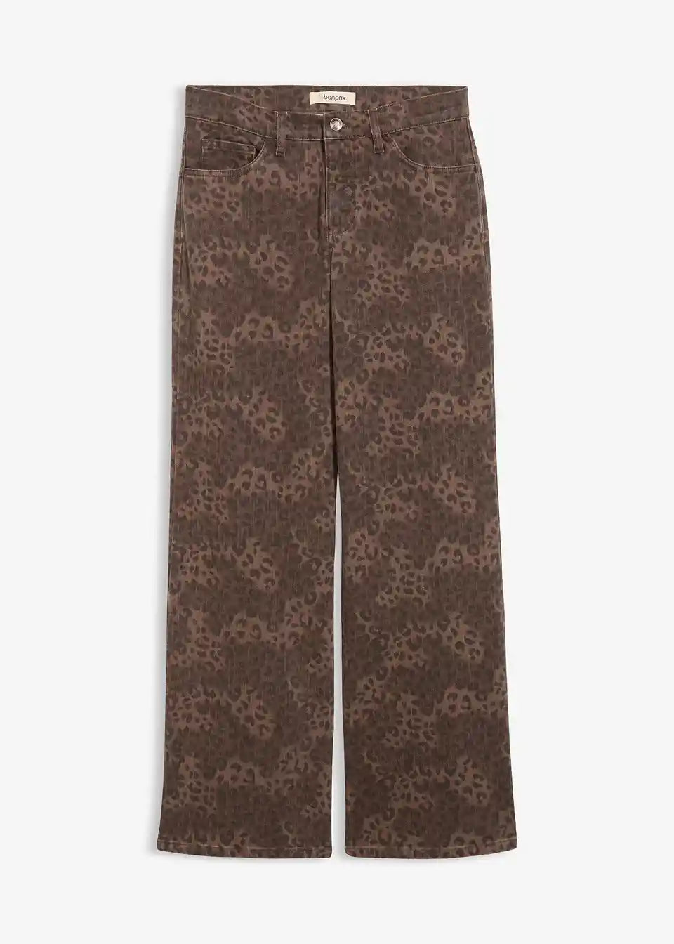 Modne hlače iz kepra z leopardjim potiskom in širokimi hlačnicami
