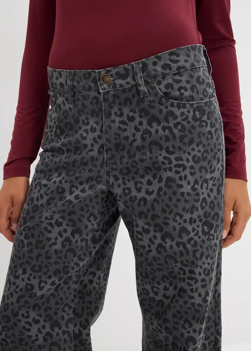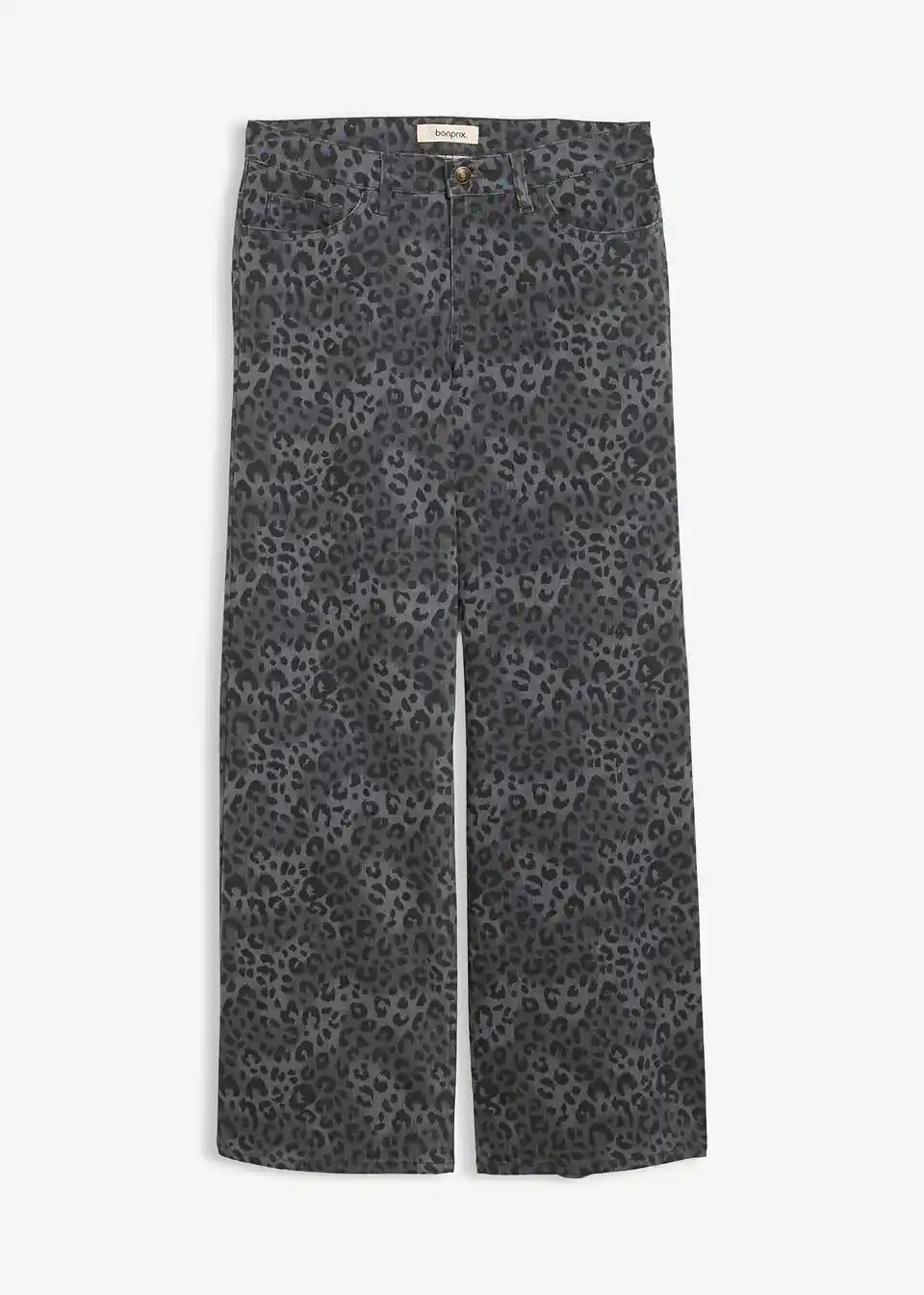 Hlače iz kepra s širokimi hlačnicami z leopardjim potiskom
