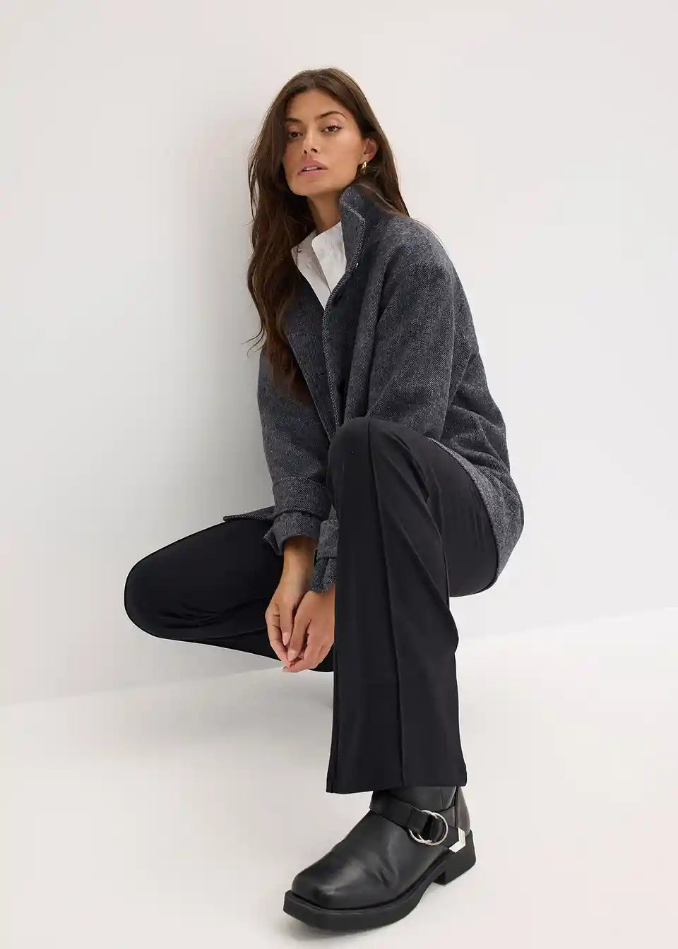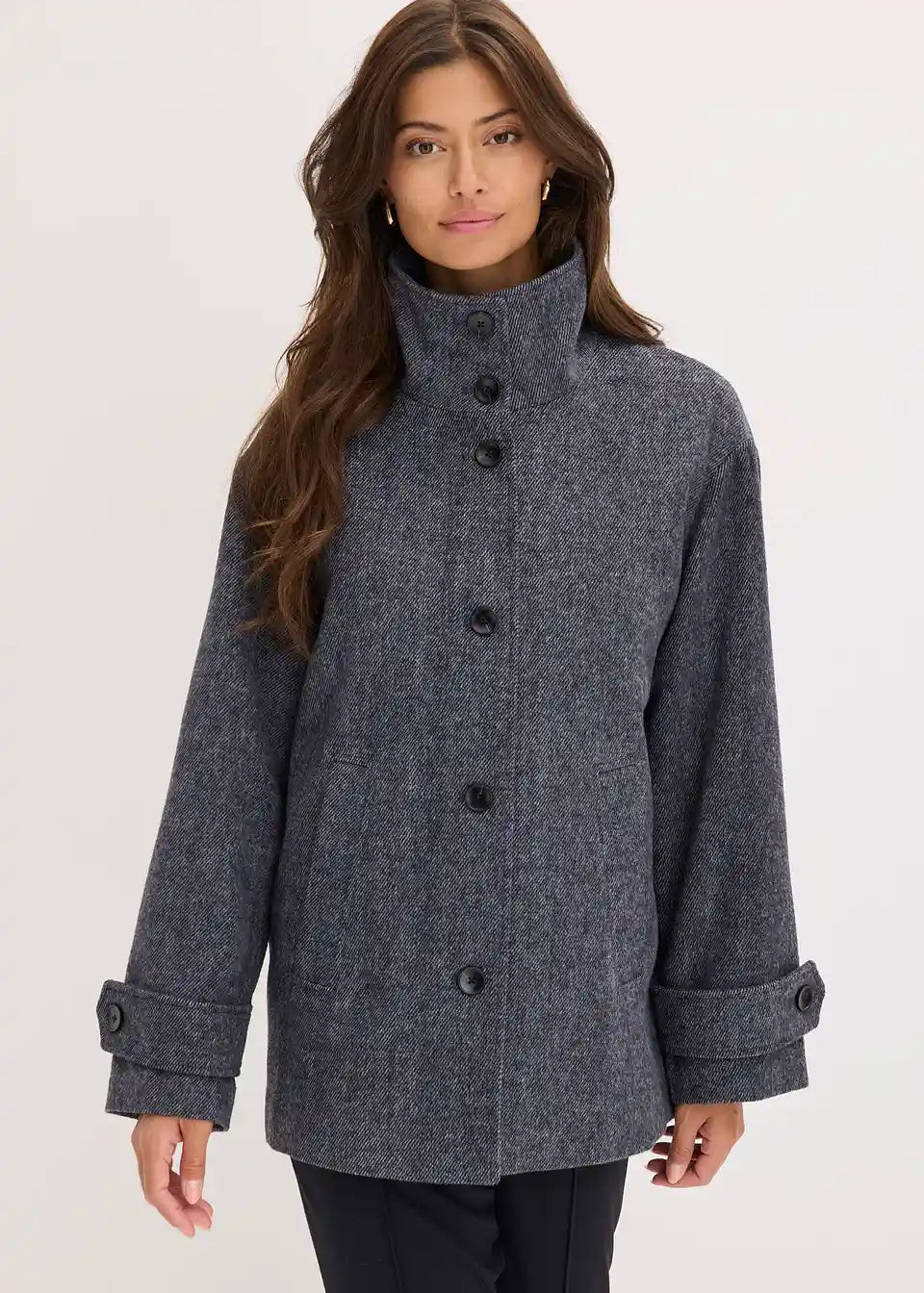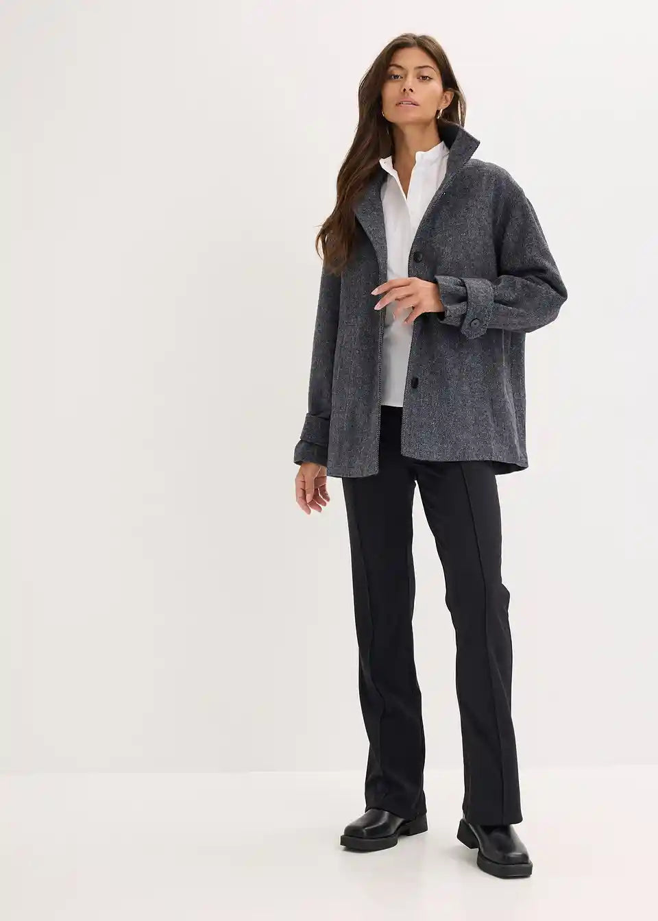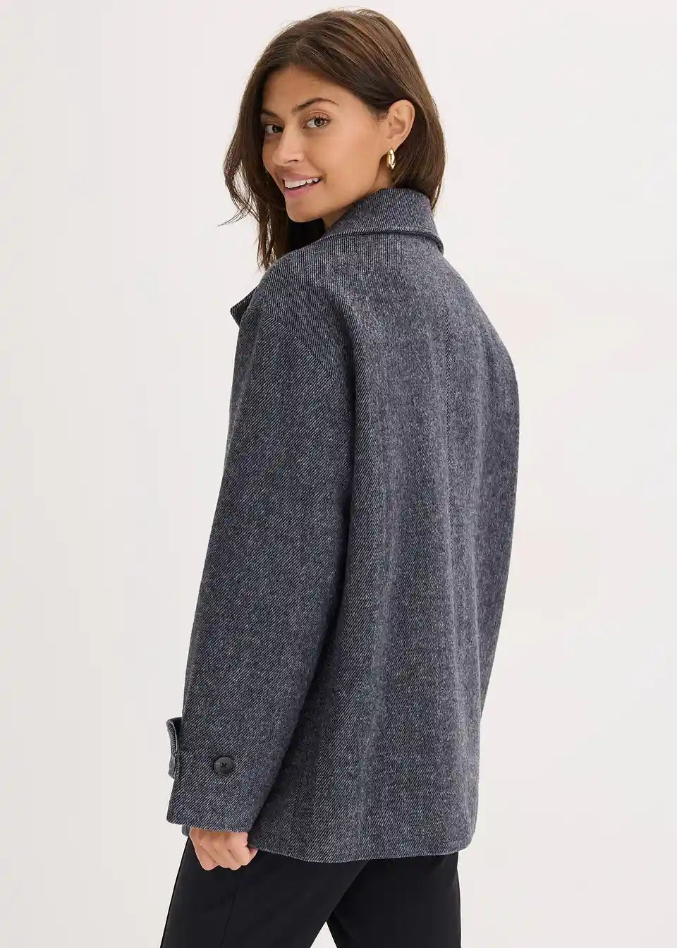 Dolga mornarska jakna v volnenem videzu