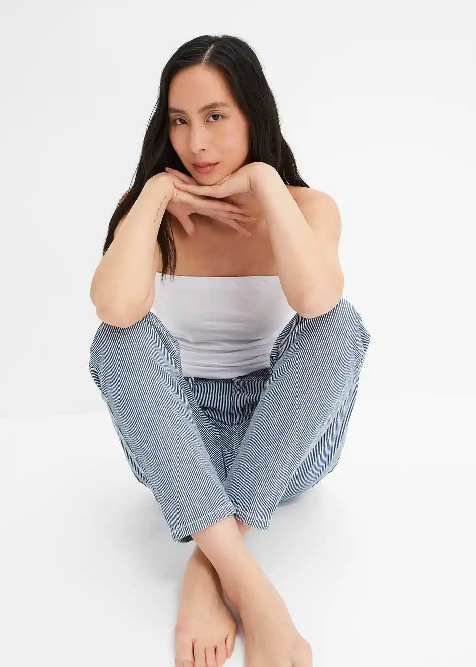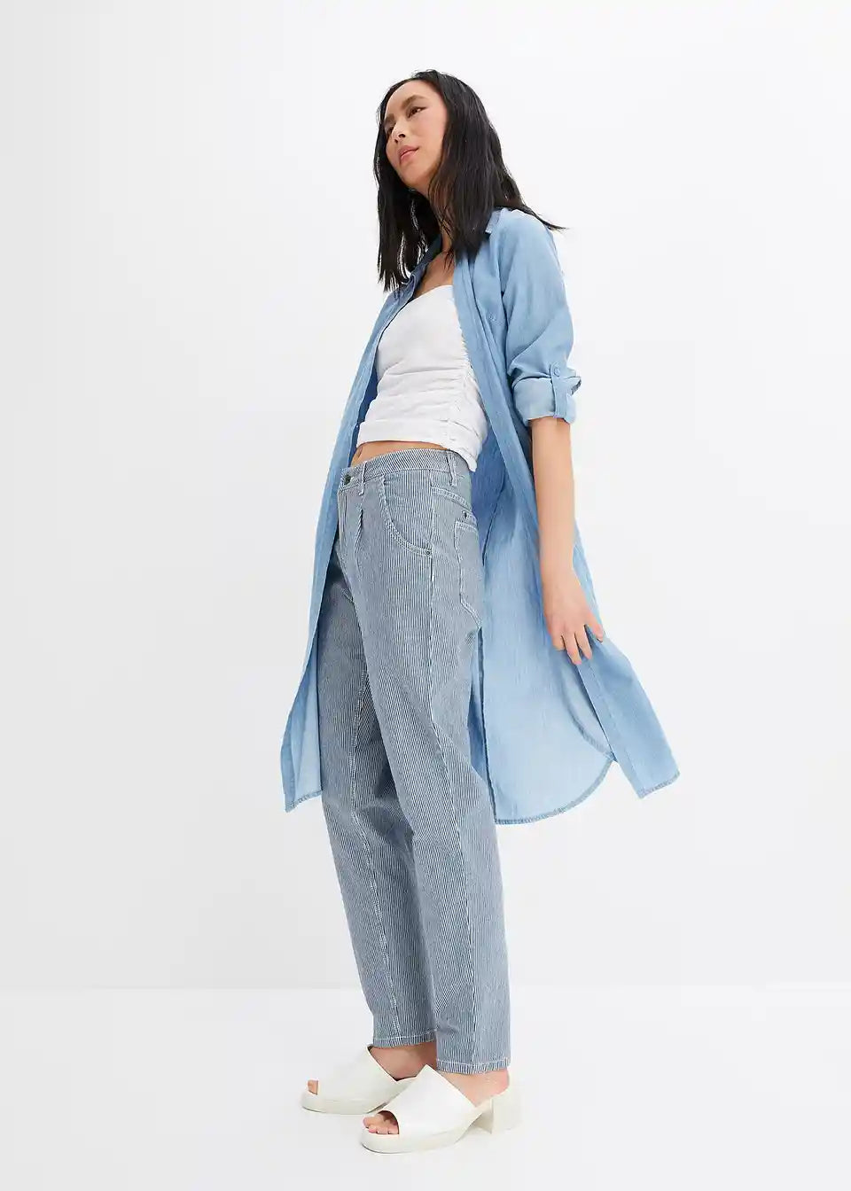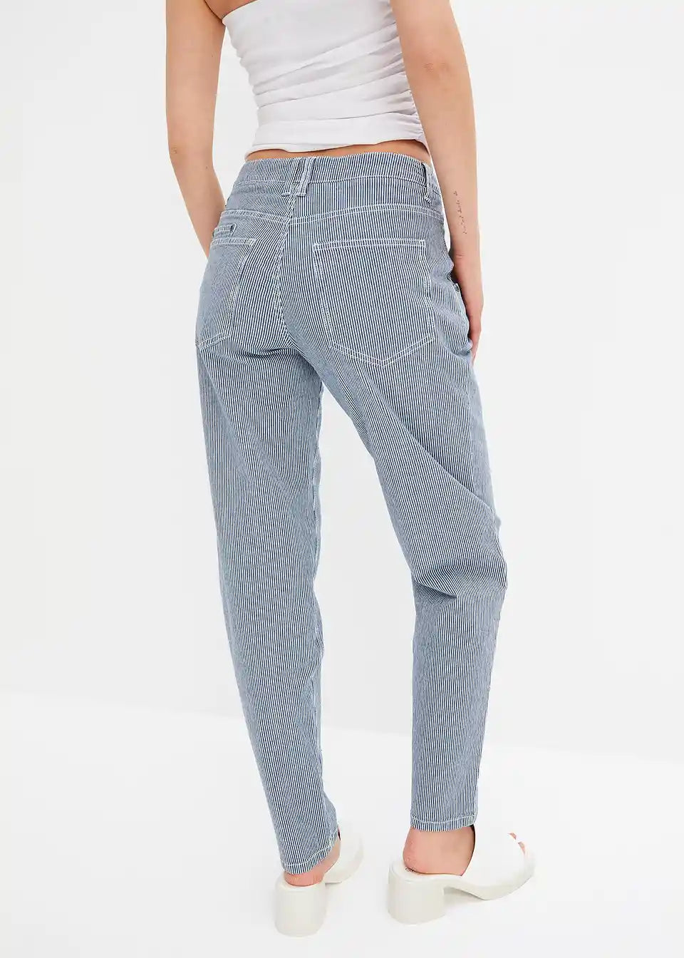Balonaste kavbojke s srednje visokim pasom s črtami