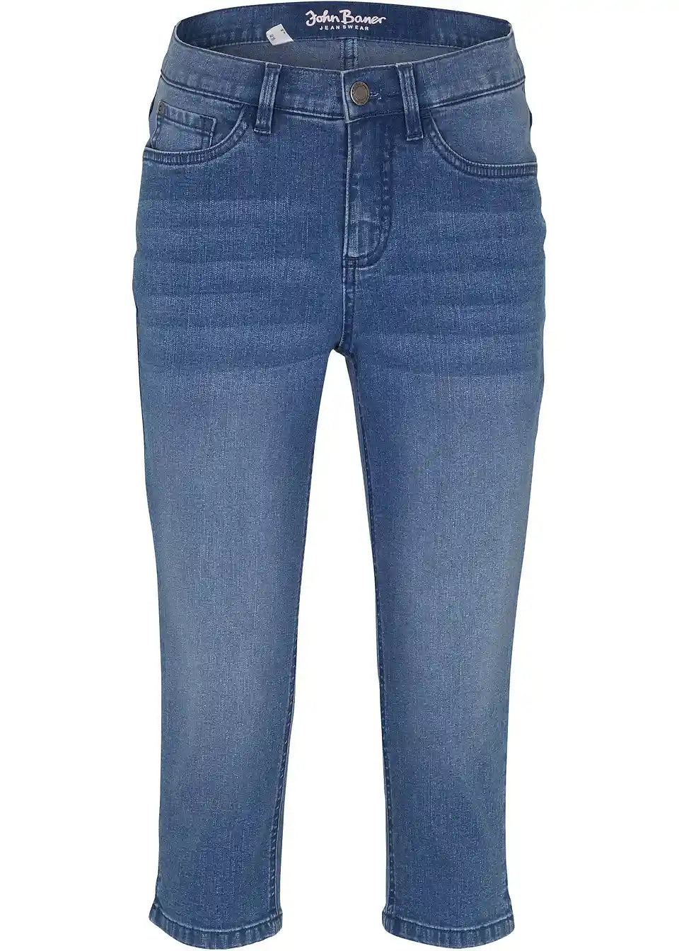 Udobne raztegljive Capri-jeans hlače, primerne za delo od doma
