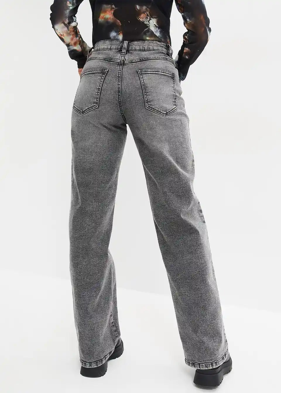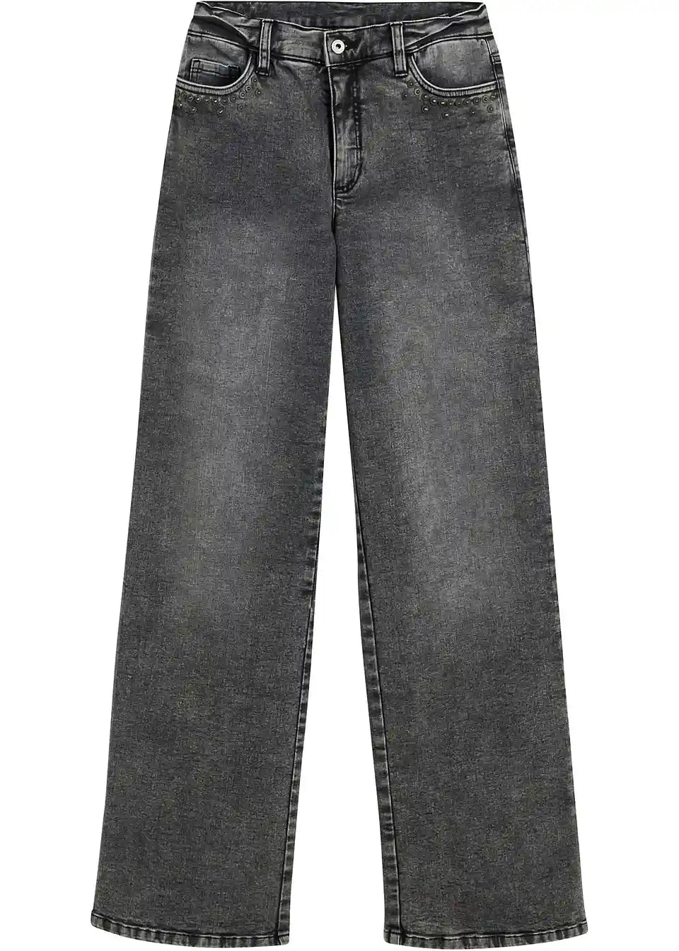 Kavbojke z visokim pasom, širokimi hlačnicami in okrasnimi kovicami