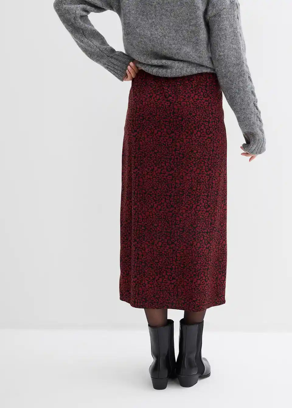 Modno midi krilo iz padajoče viskoze s stranskim razporkom