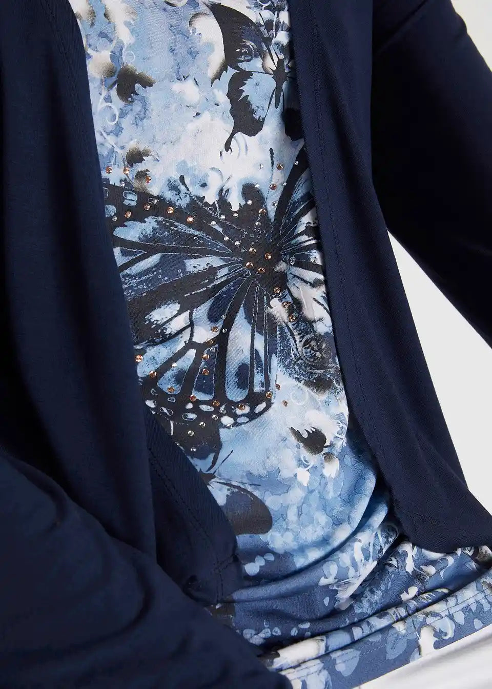 Majica, ki poudarja postavo, z metuljevim potiskom