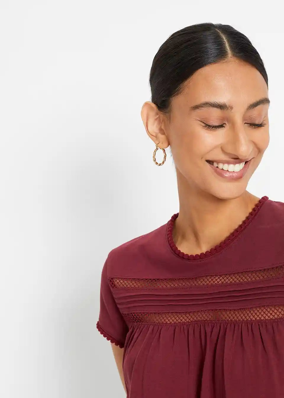 Bombažna majica s čipko v A-kroju
