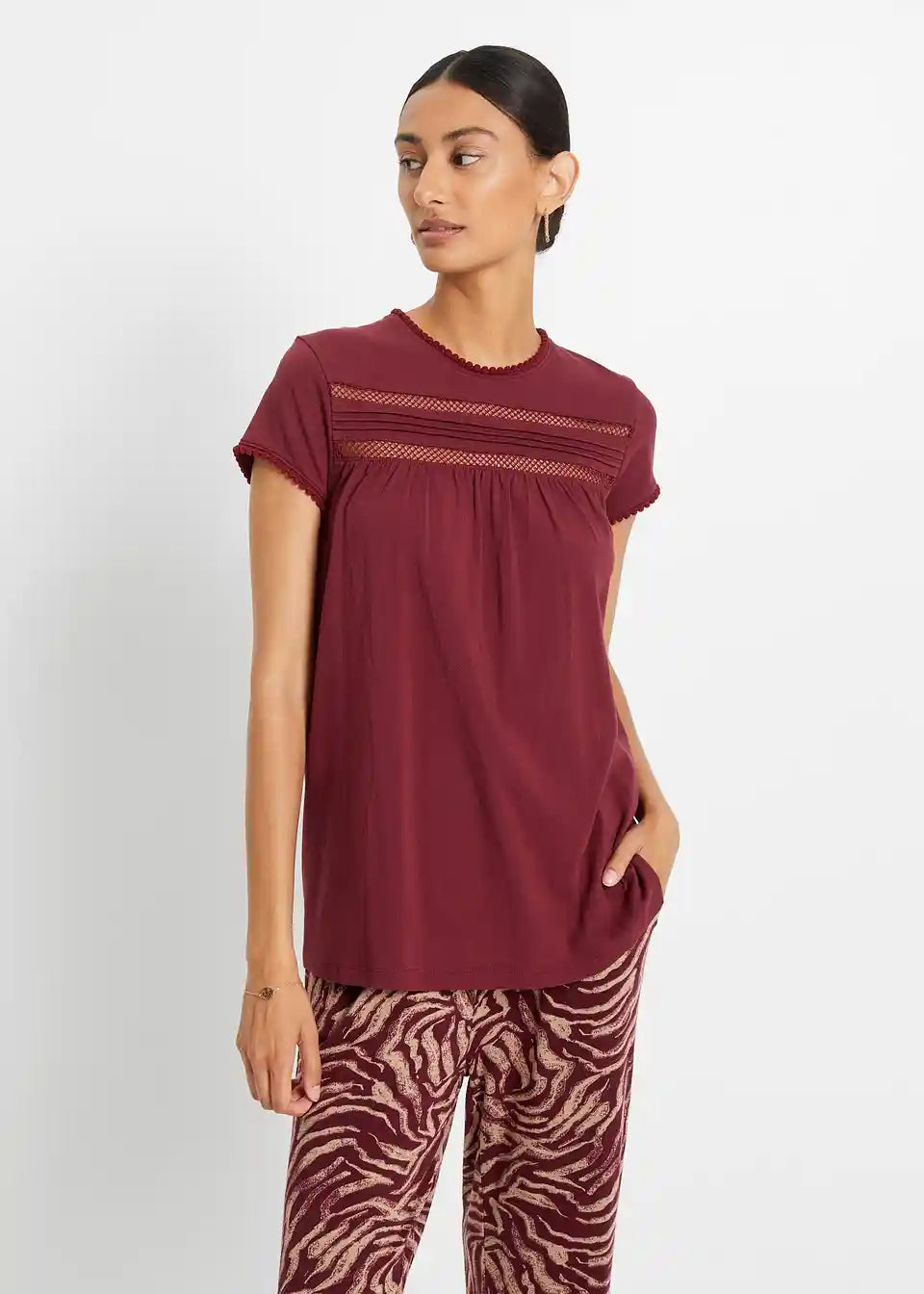 Moderna bombažna majica z detajli čipke in kratkimi rokavi