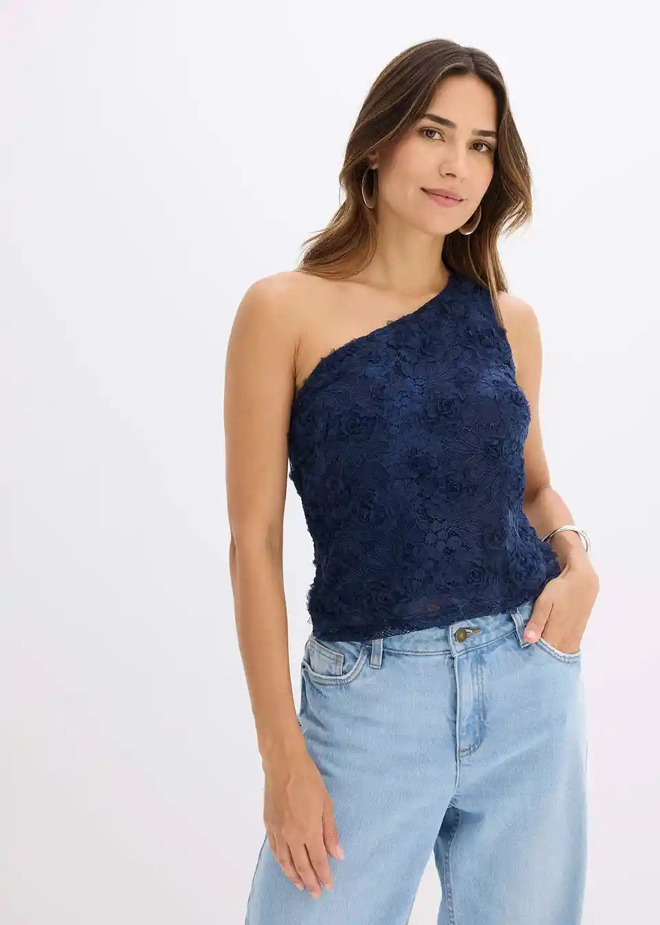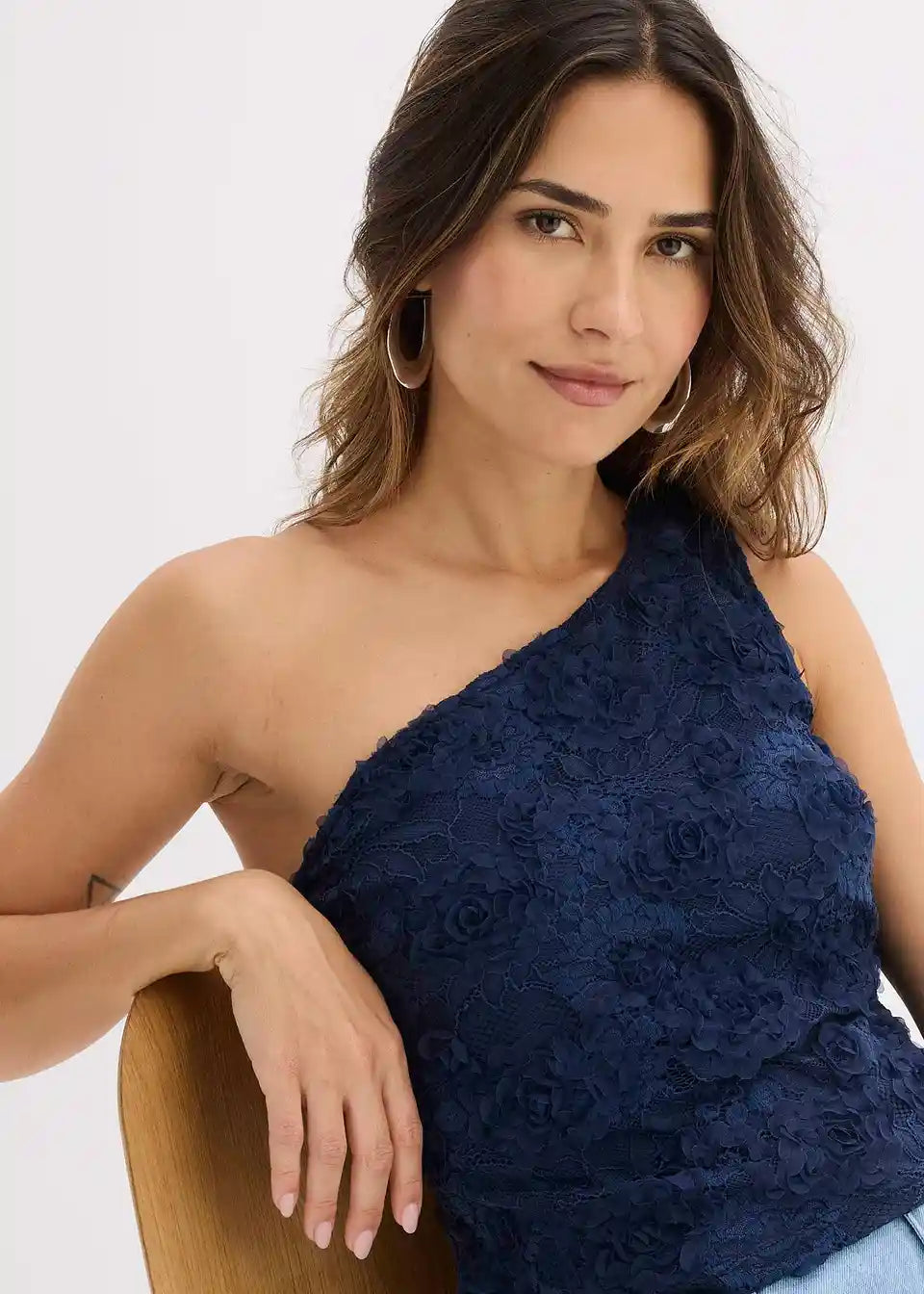 Top z odkrito ramo z vezenino
