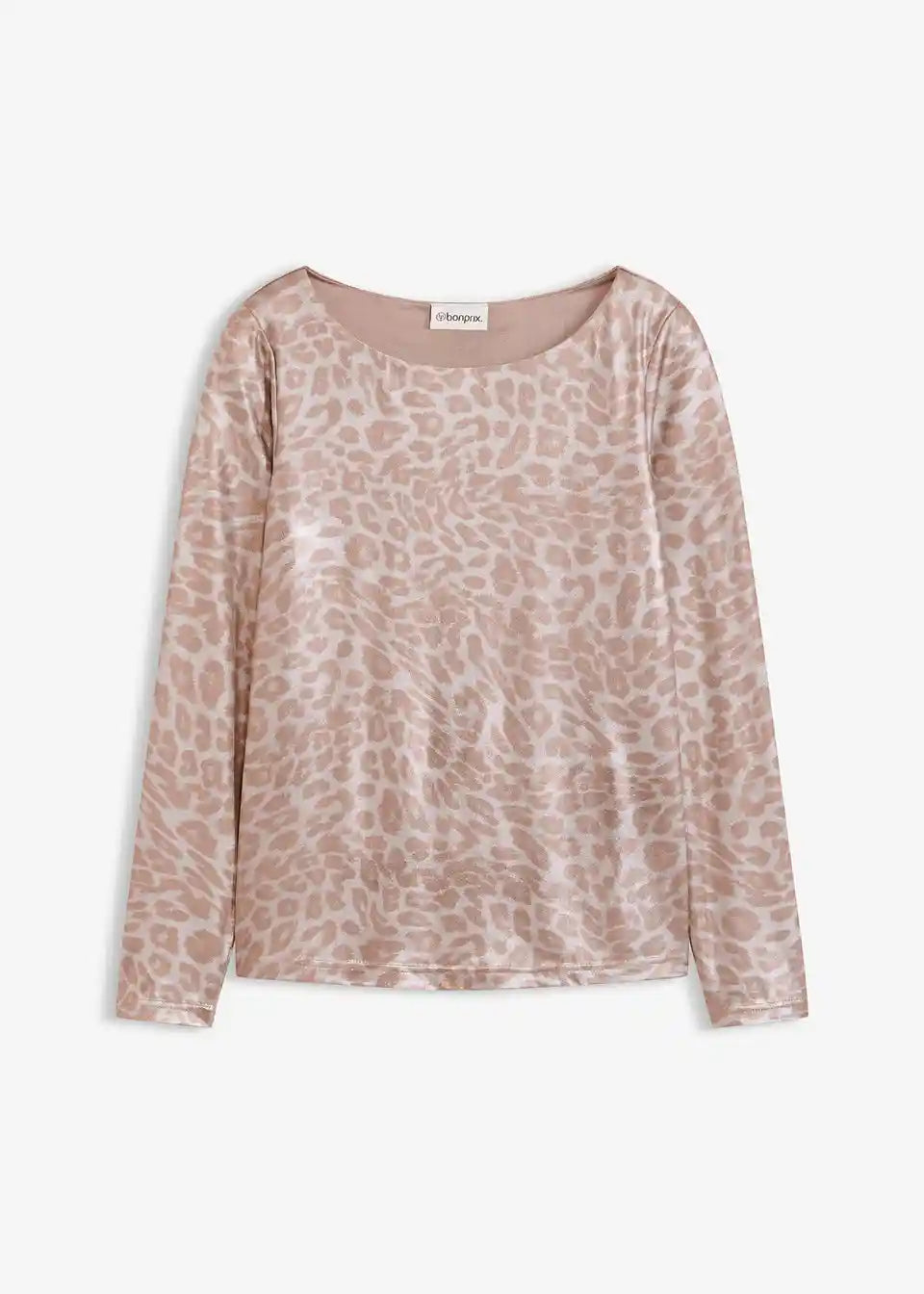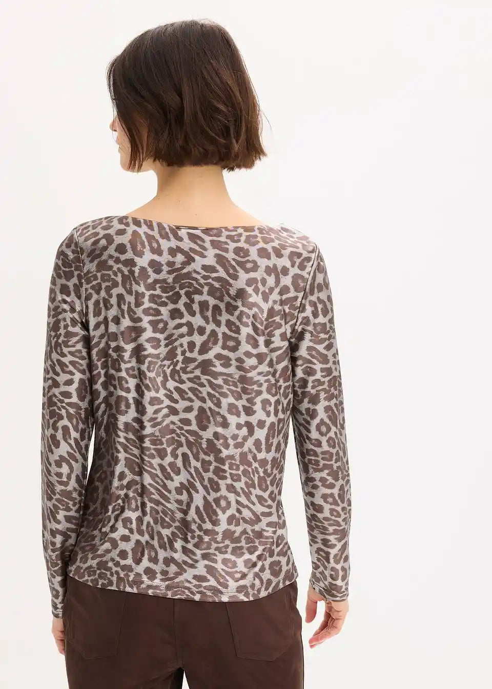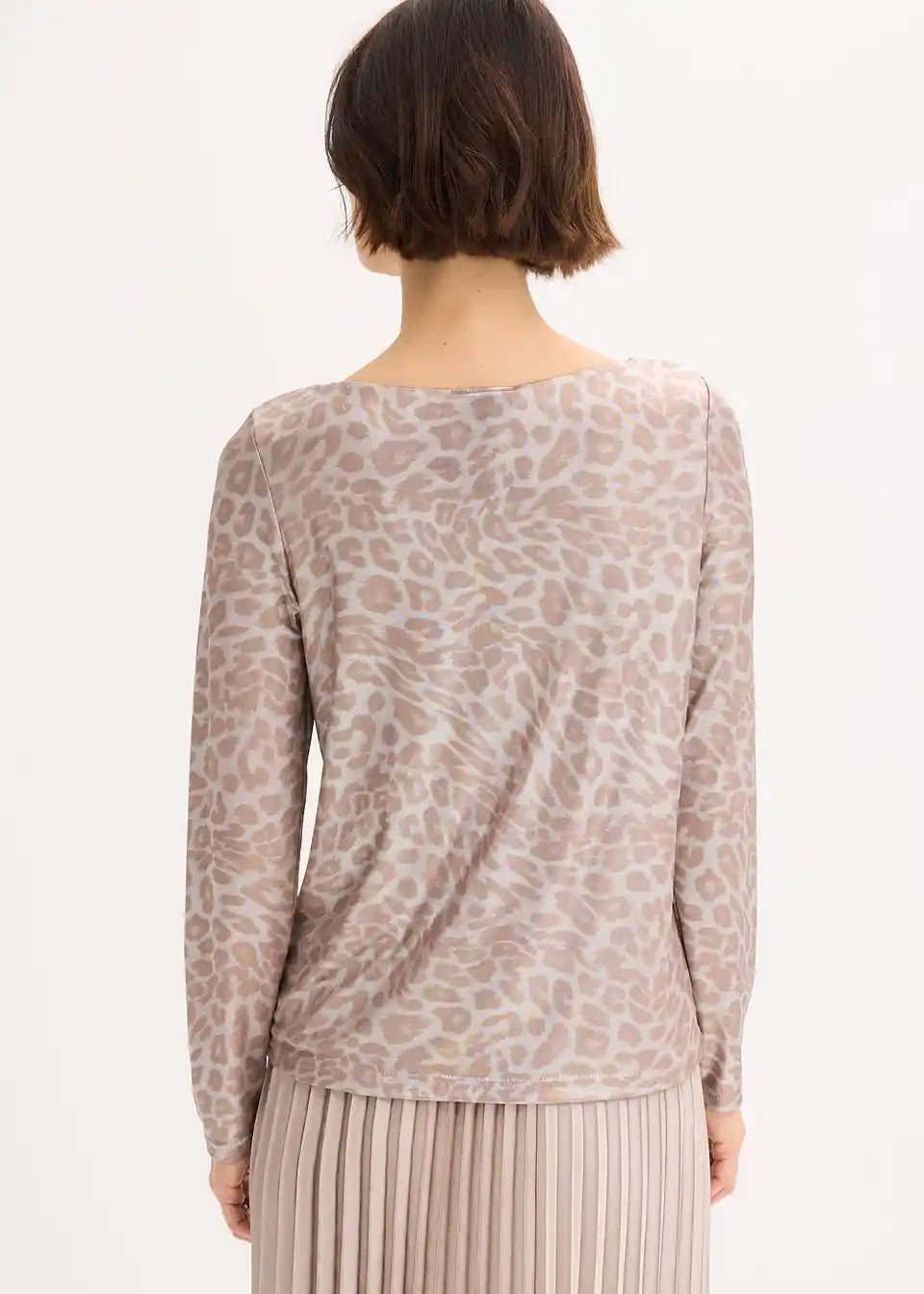 Elegantna majica z leopardjim vzorcem s sijočim potiskom
