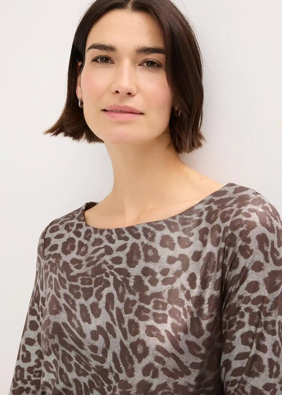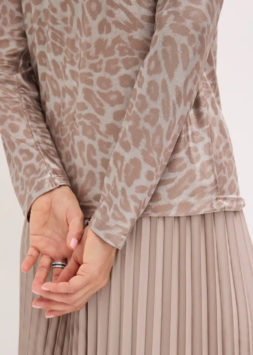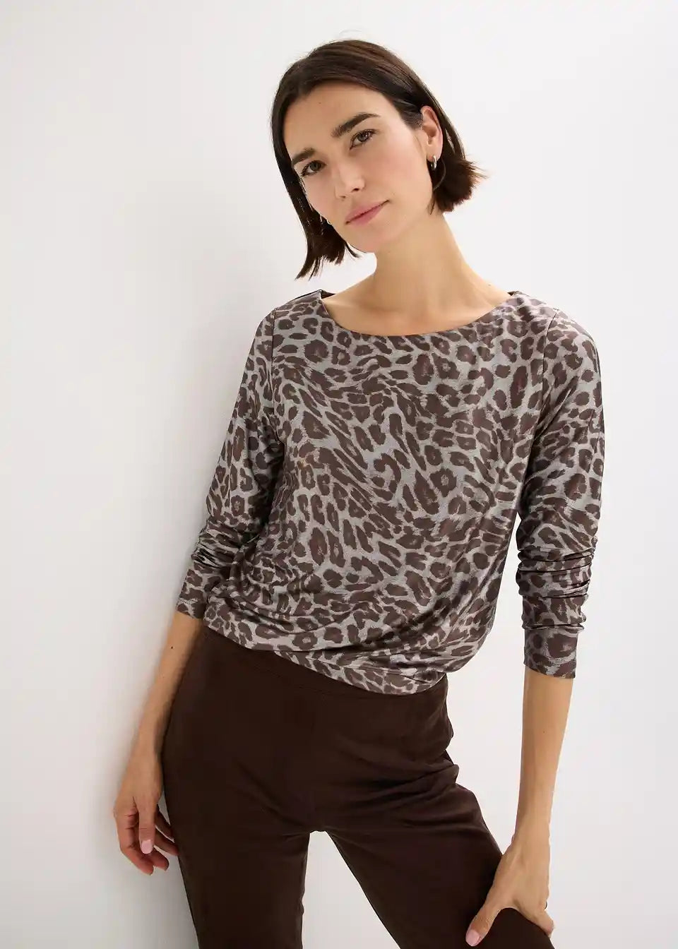 Elegantna majica z leopardjim vzorcem s sijočim potiskom