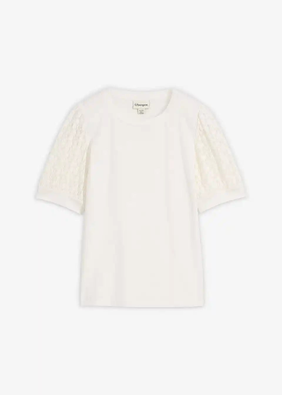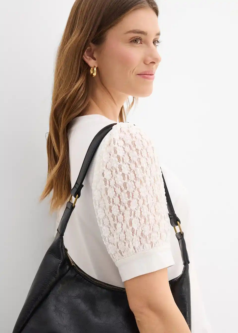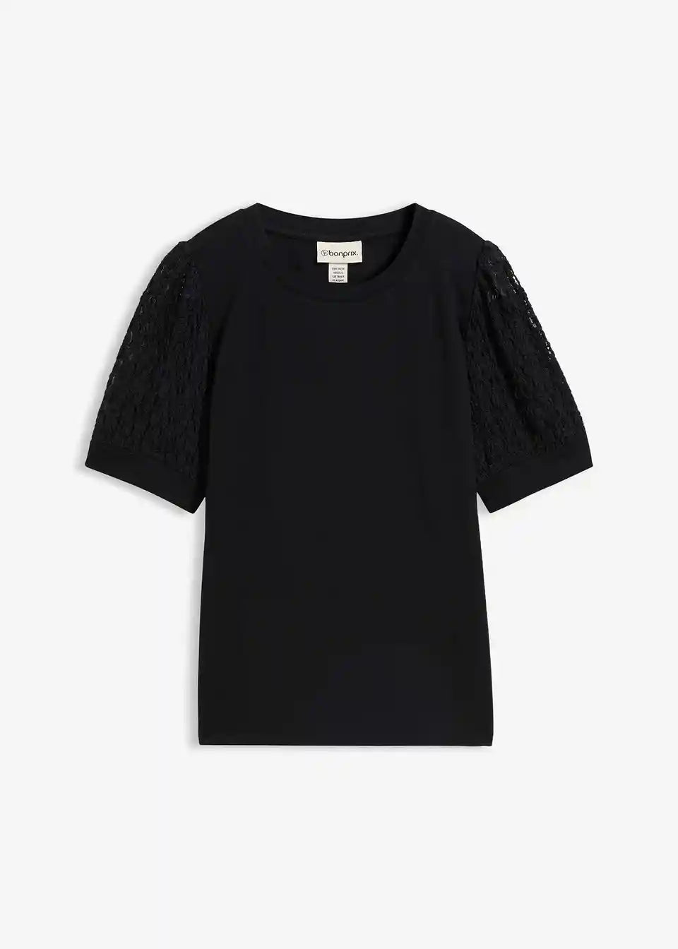 Moderna majica z balonastimi rokavi iz kakovostne čipke