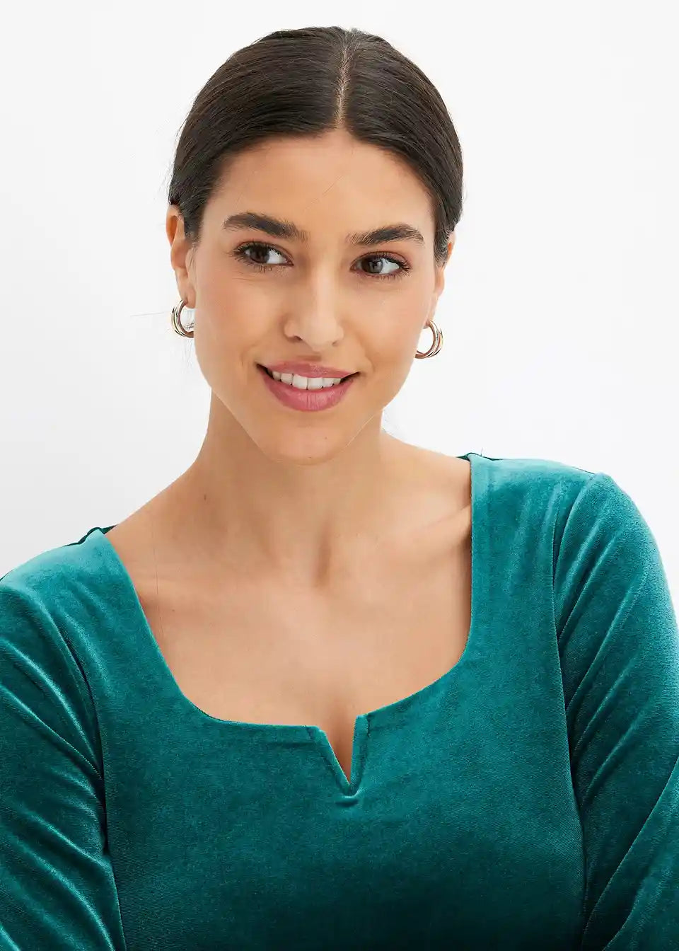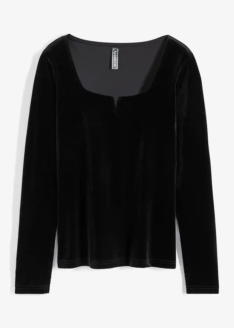 Ženska majica z žametnim videzom, globokim karo izrezom in razporkom