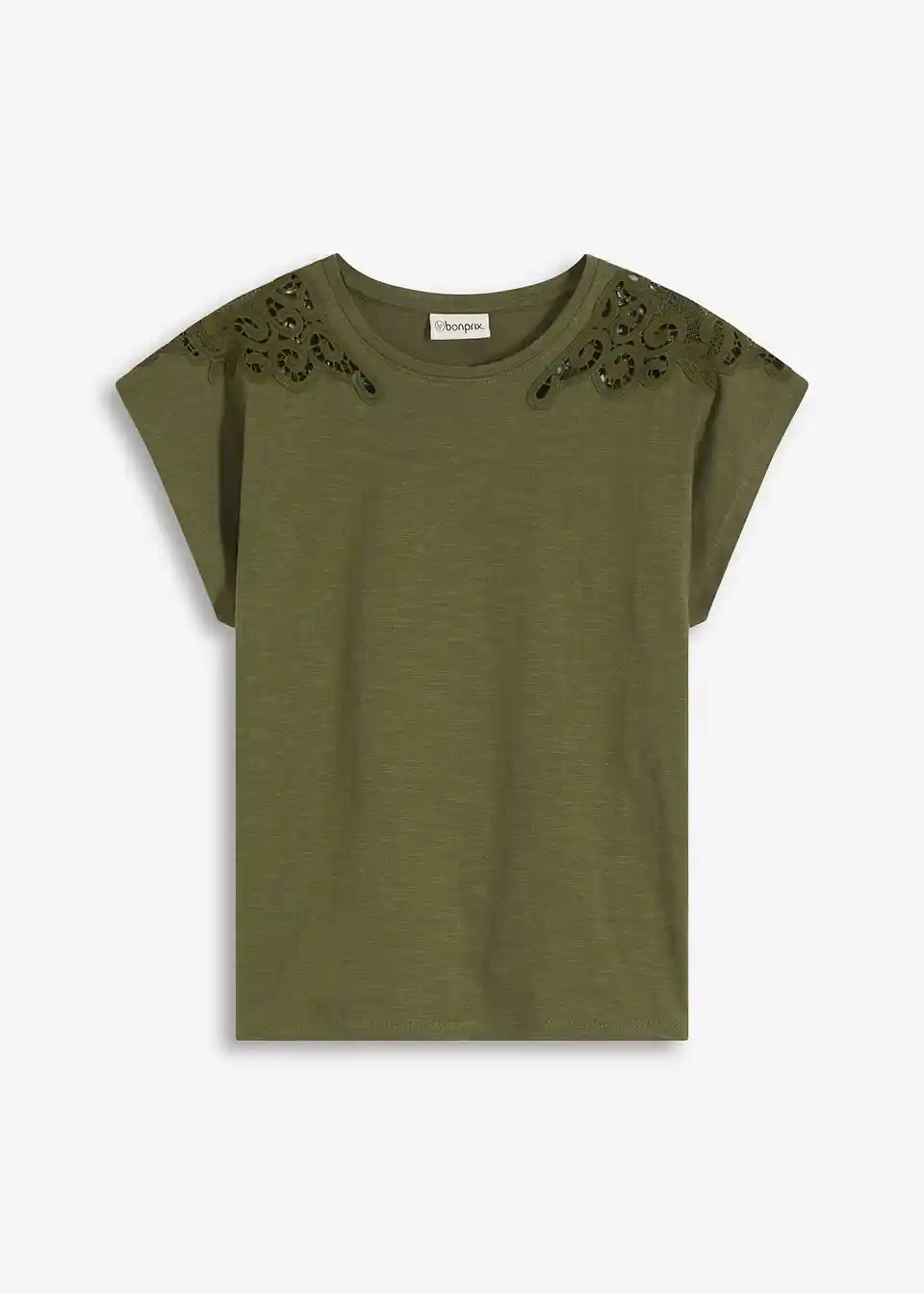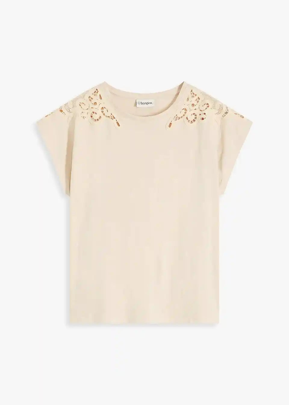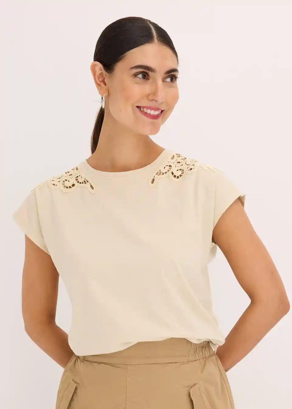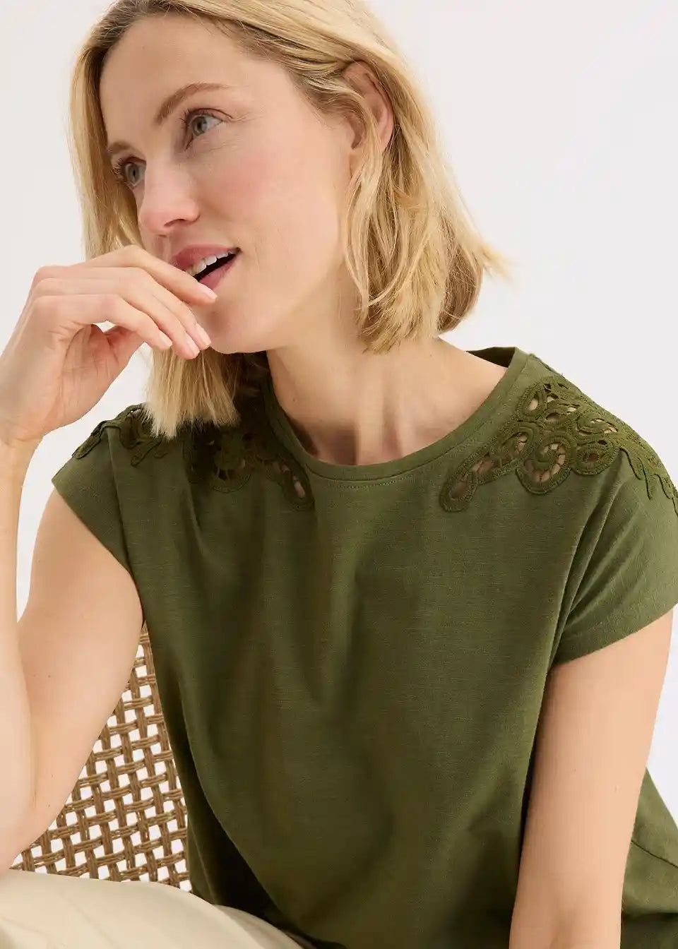 majica, primerna za dojenje, z elegantnim čipkastim detajlom