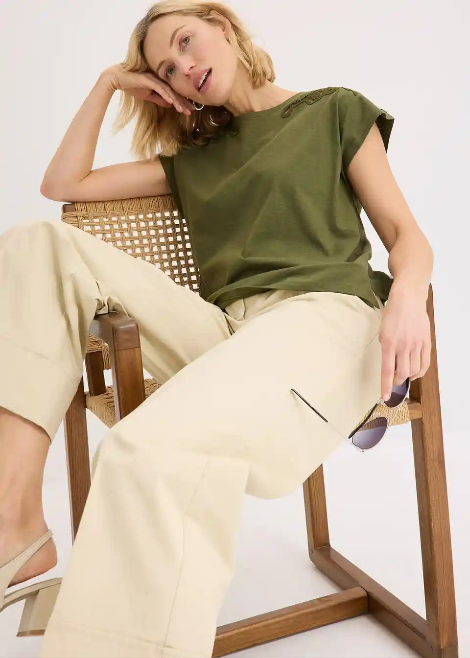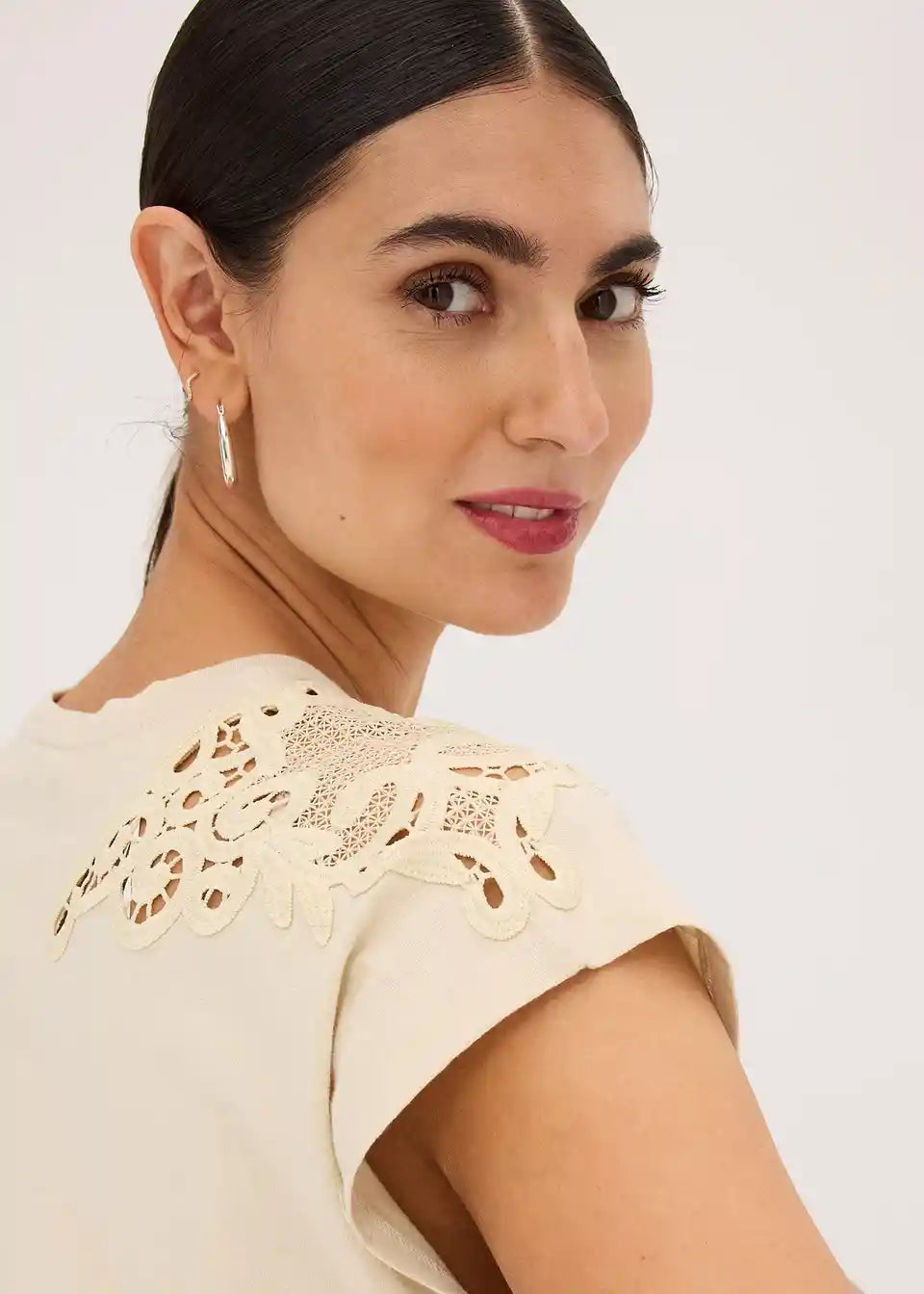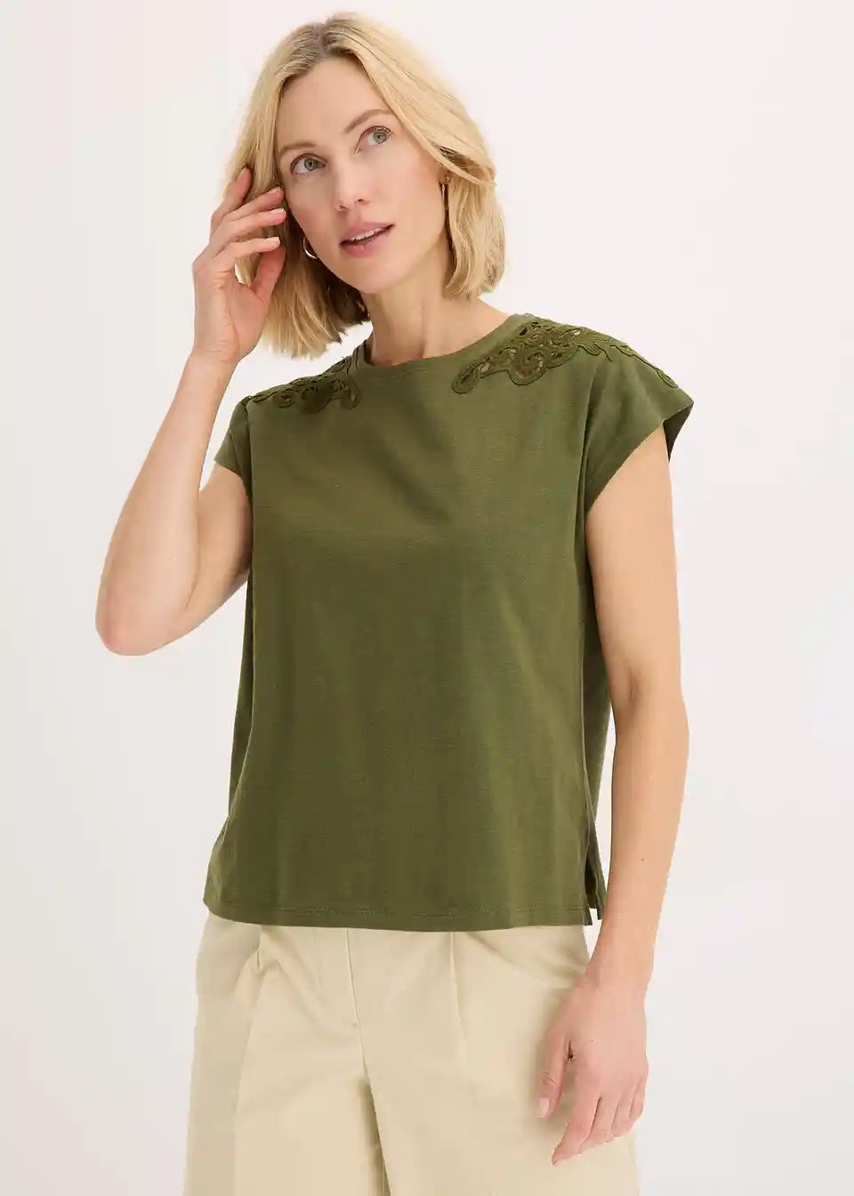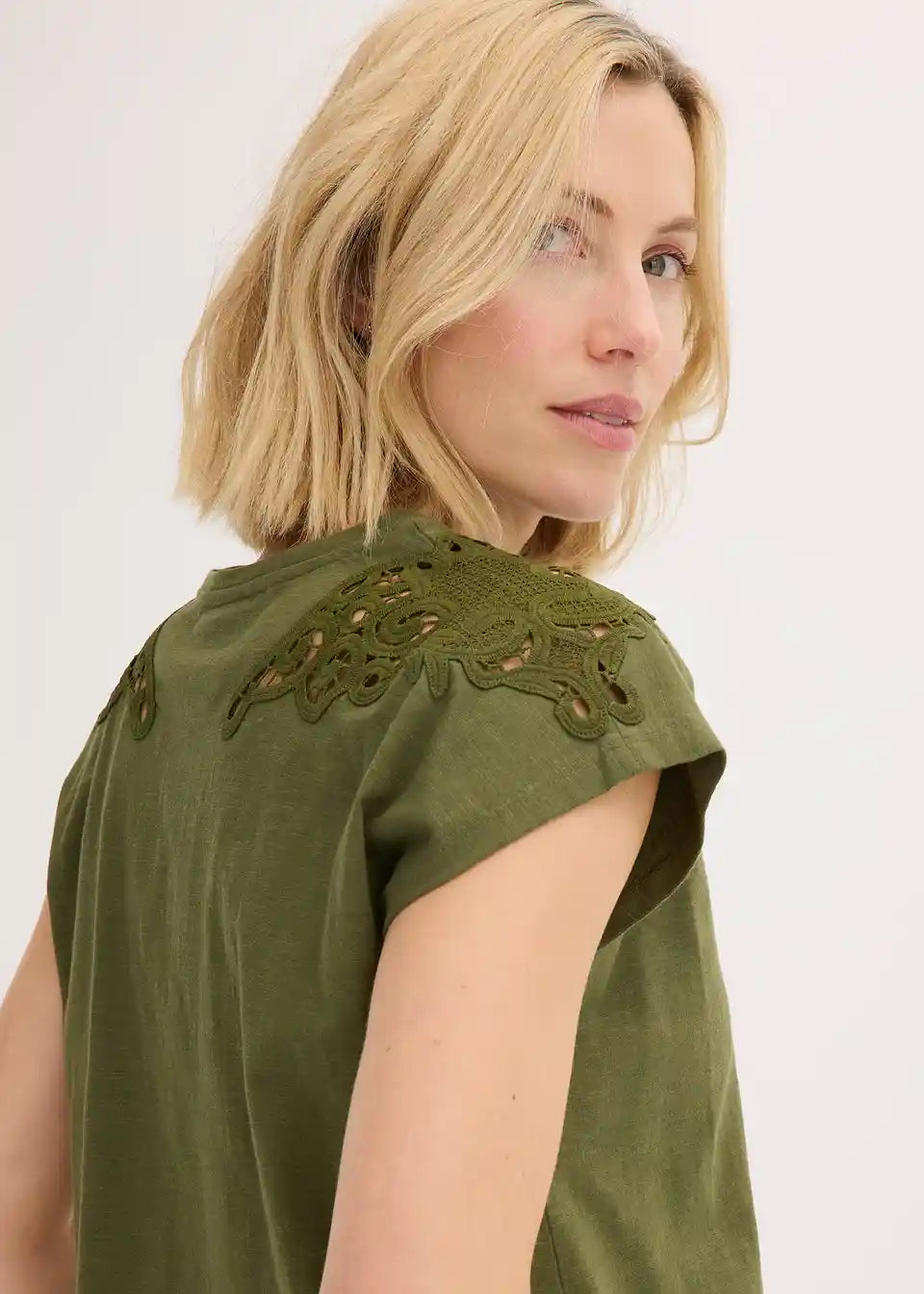 majica, primerna za dojenje, z elegantnim čipkastim detajlom