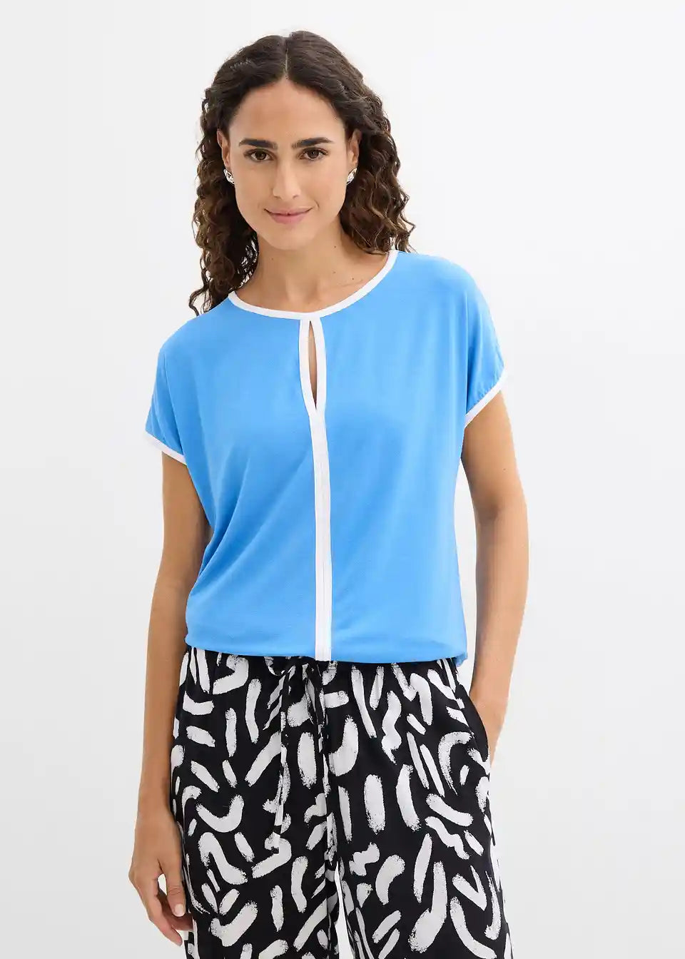 Elegantna bluza iz trikoja z obrobo