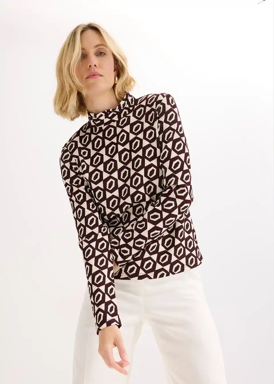 Elegantna majica s pokončnim ovratnikom s strukturo