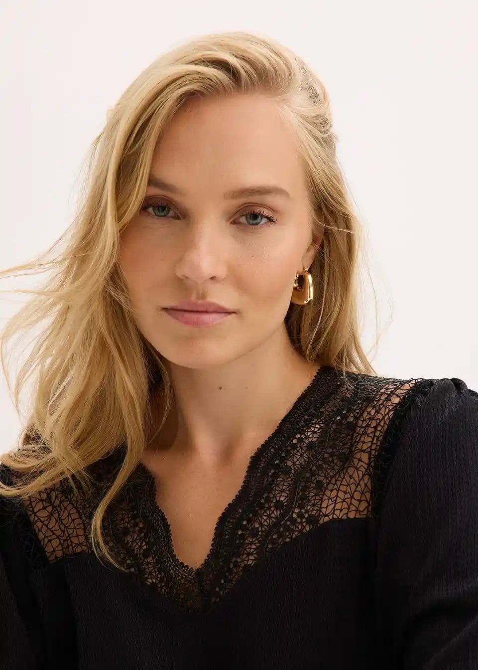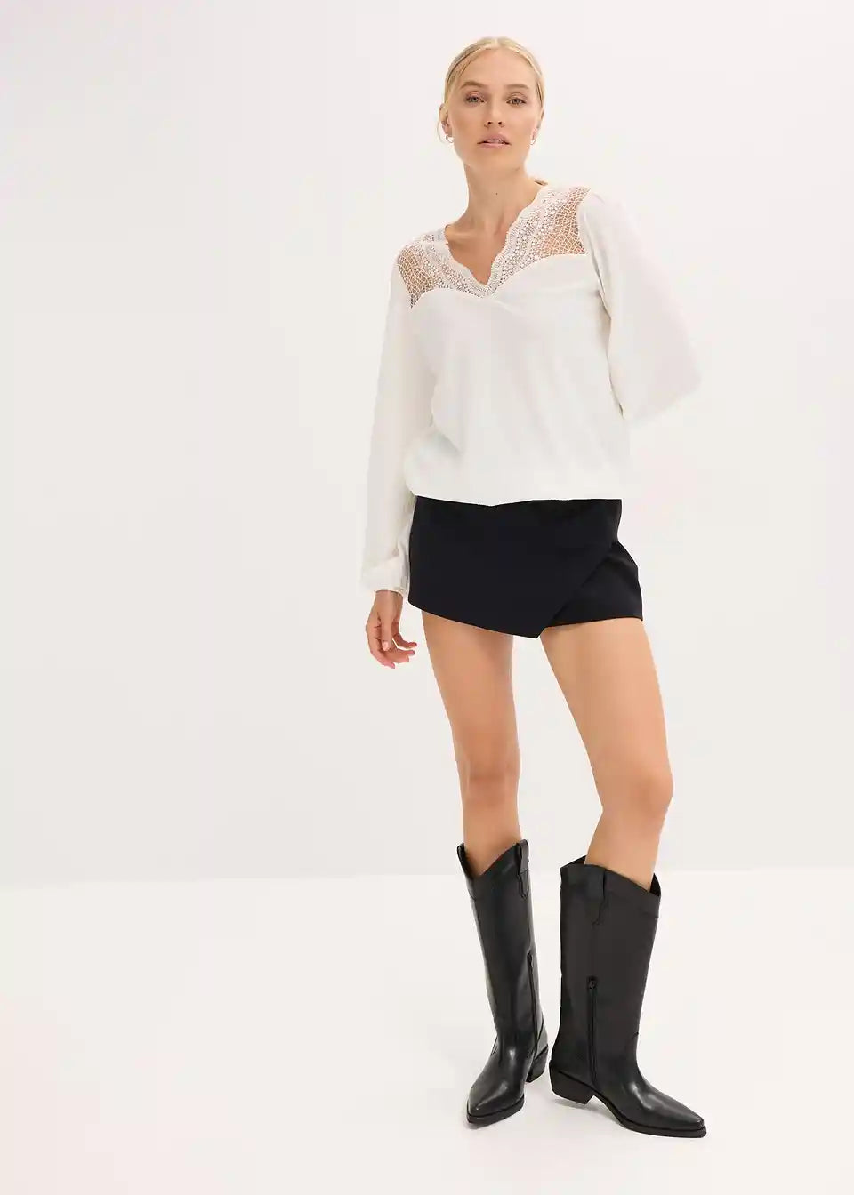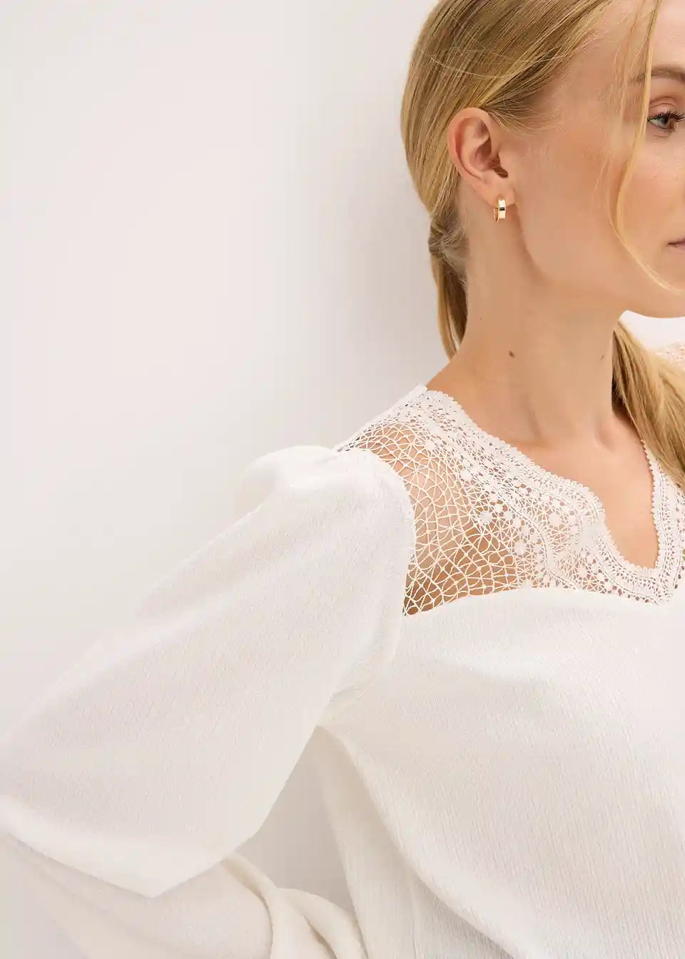 Moderna majica s kakovostno čipko in zapovedanimi balonastimi rokavi