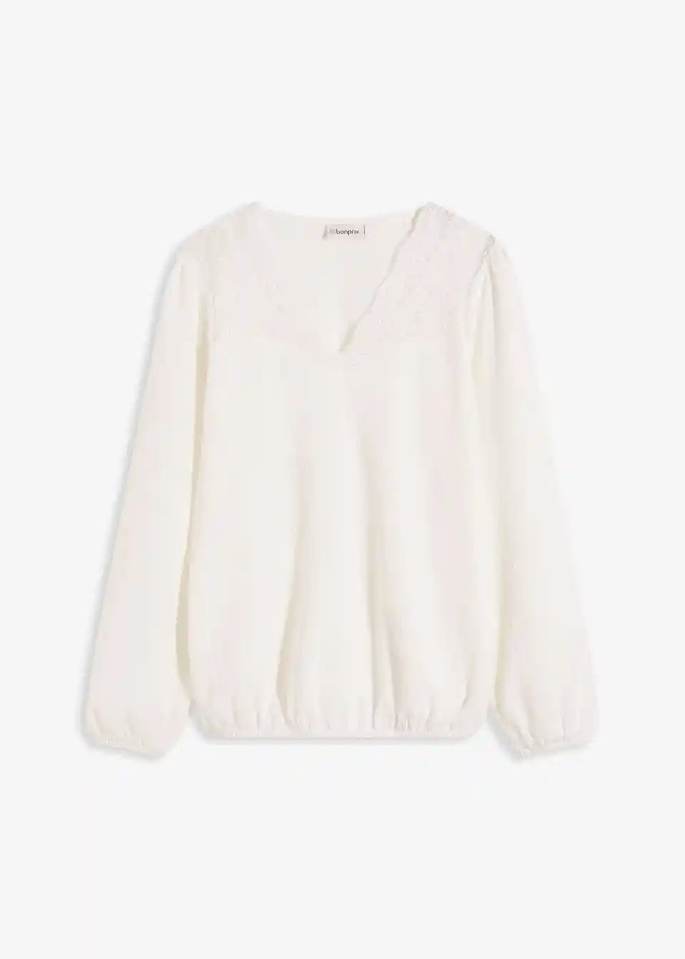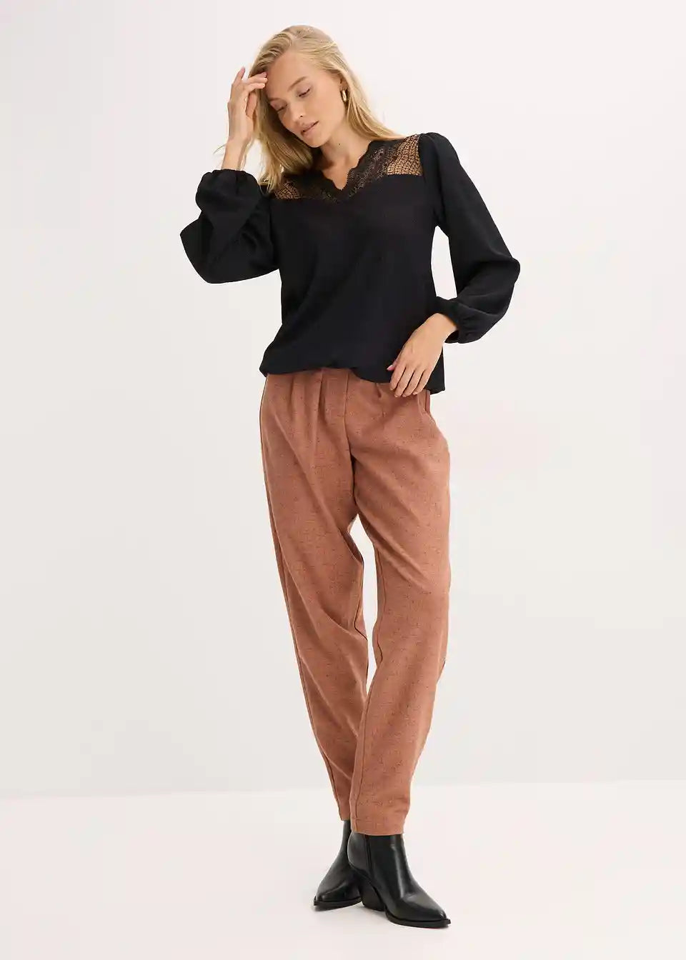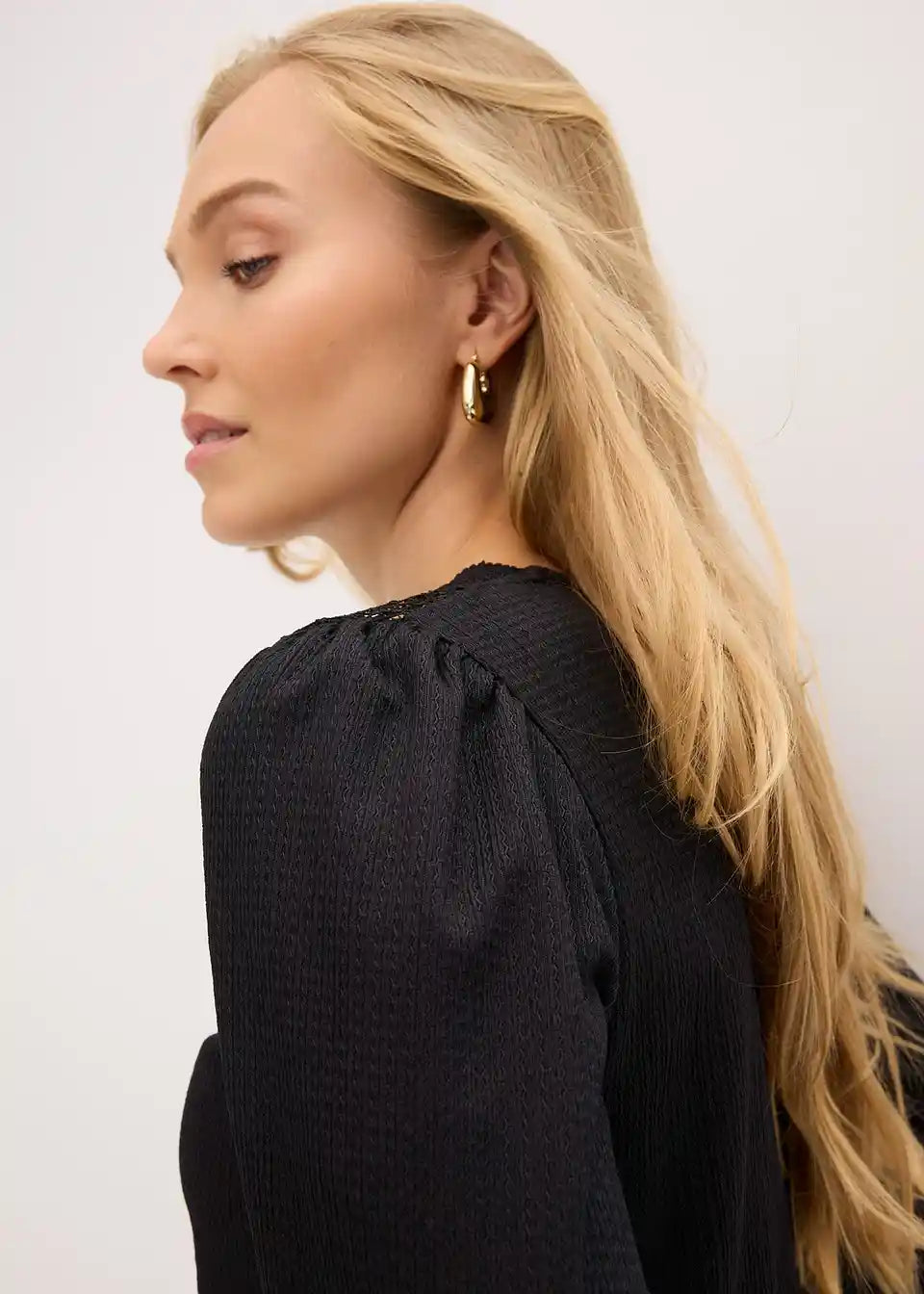 Moderna majica s kakovostno čipko in zapovedanimi balonastimi rokavi