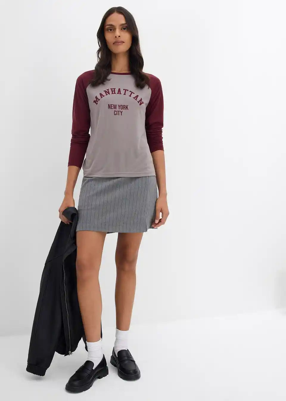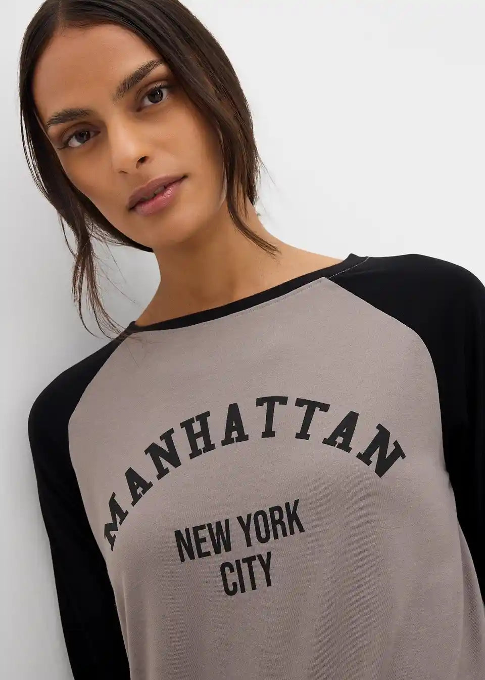 Udobna majica z dolgimi rokavi iz jerseyja s potiskom