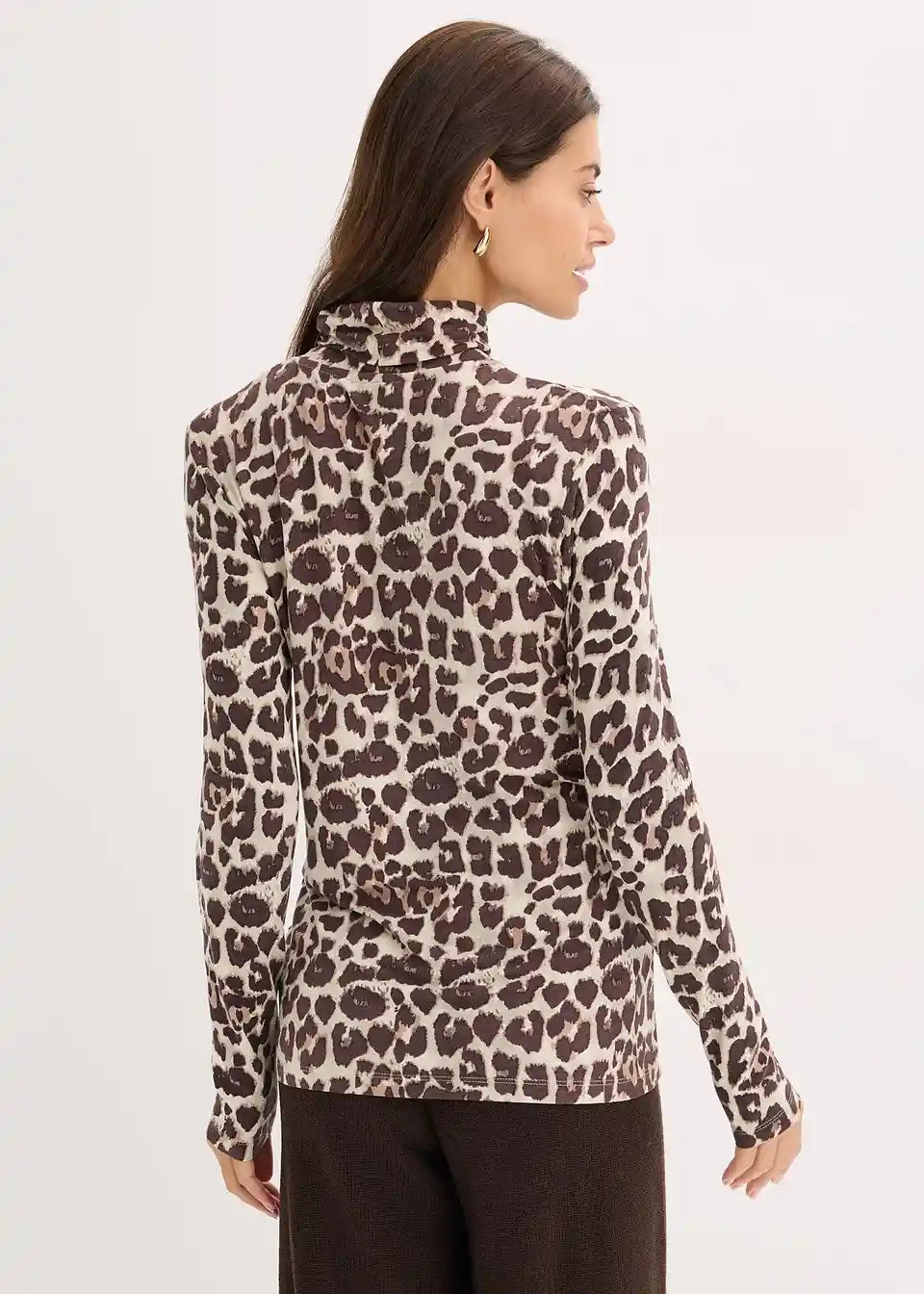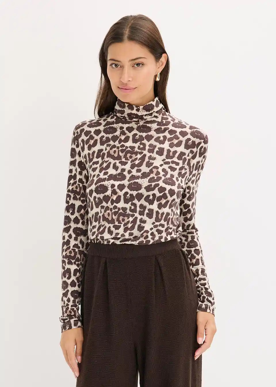 Modna majica z dolgimi rokavi s potiskom. Iz mehke viskozne mešanice s pokončnim ovratnikom