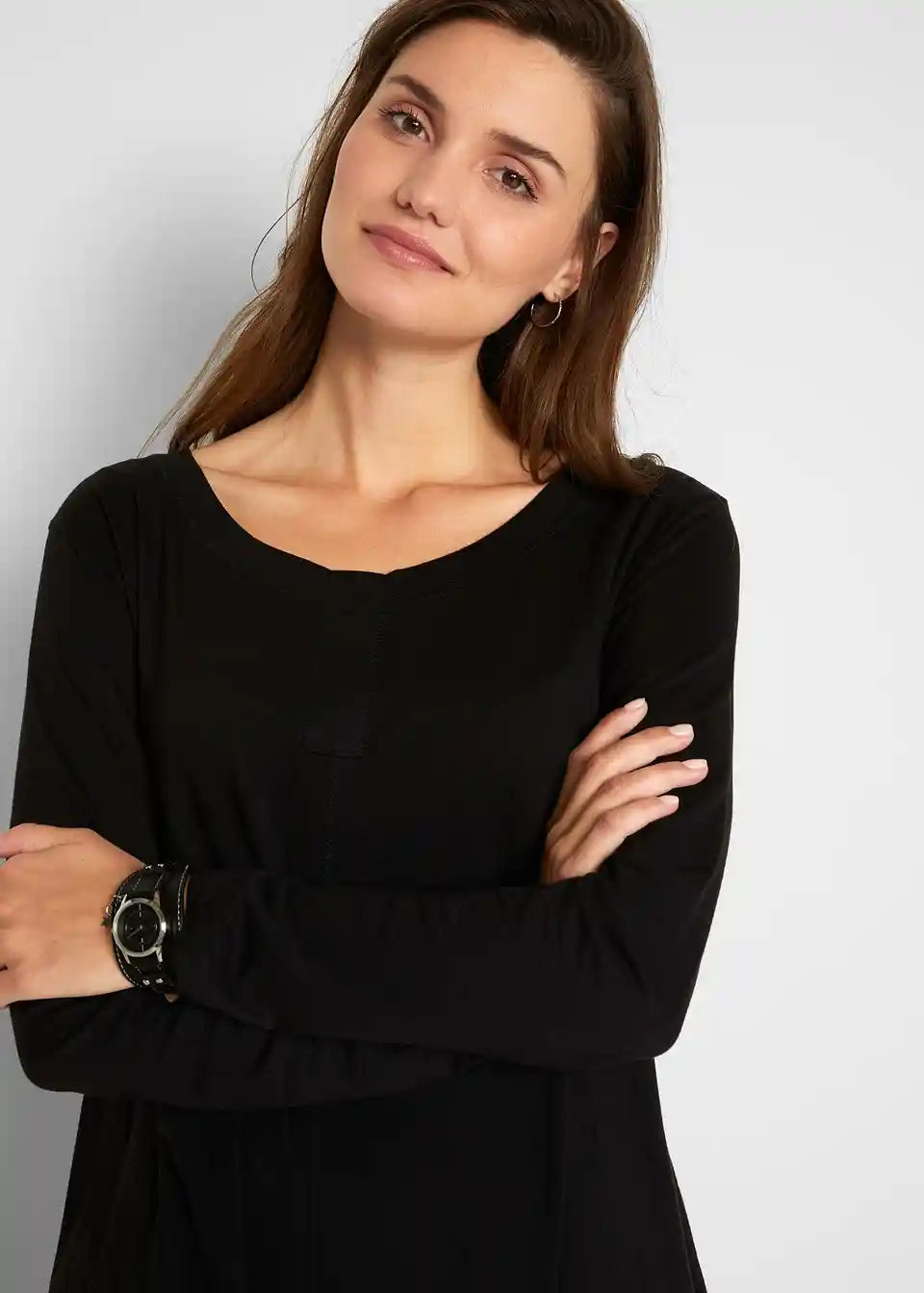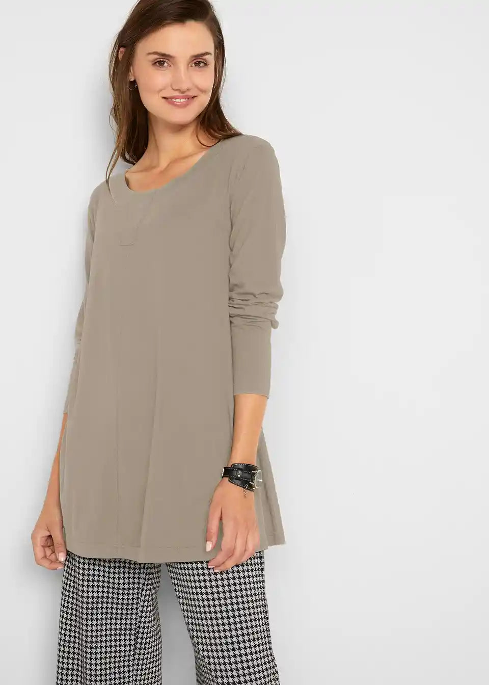 Majica z dolgimi rokavi v široki A-liniji iz mehkega materiala