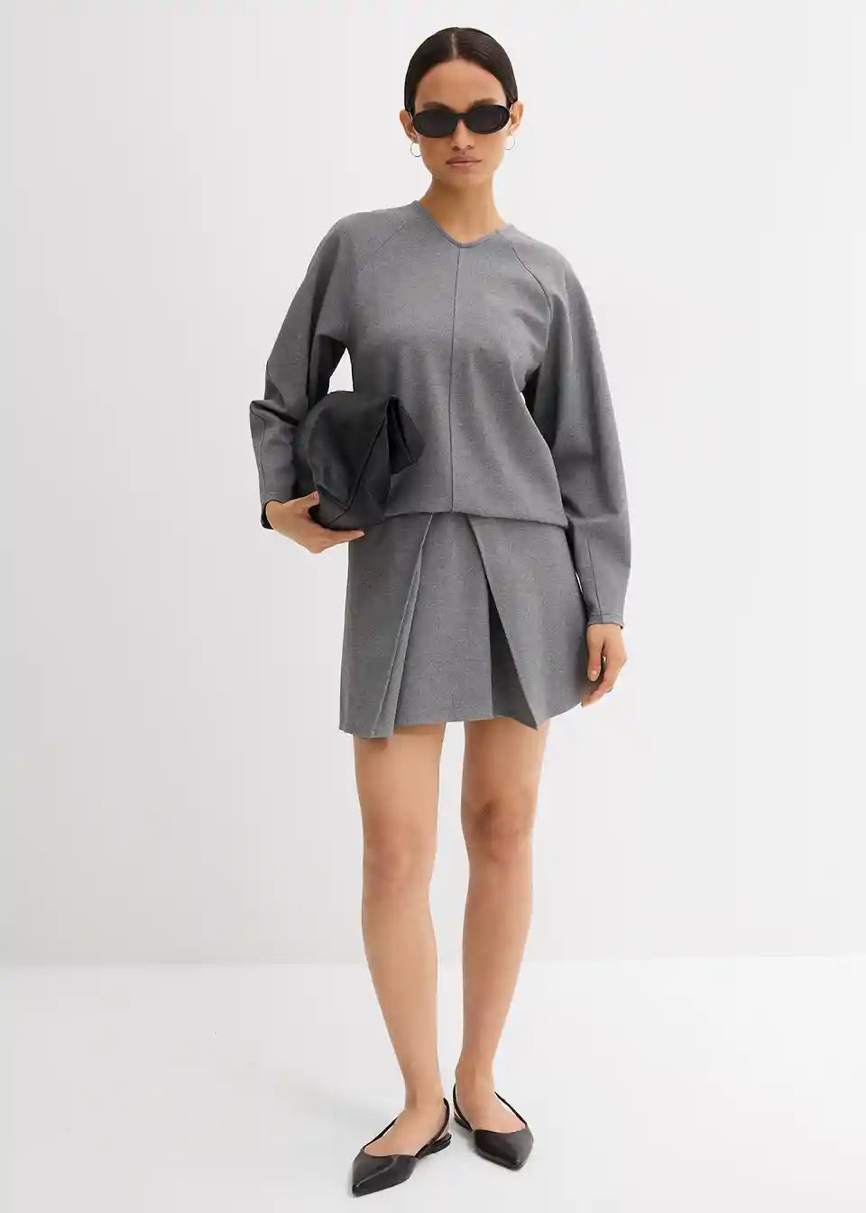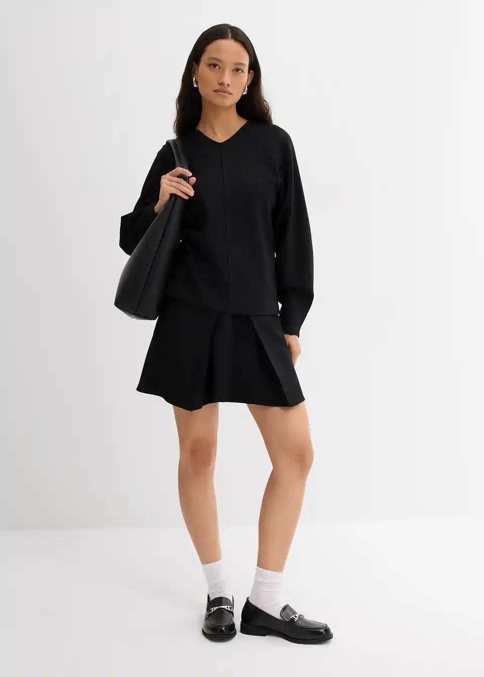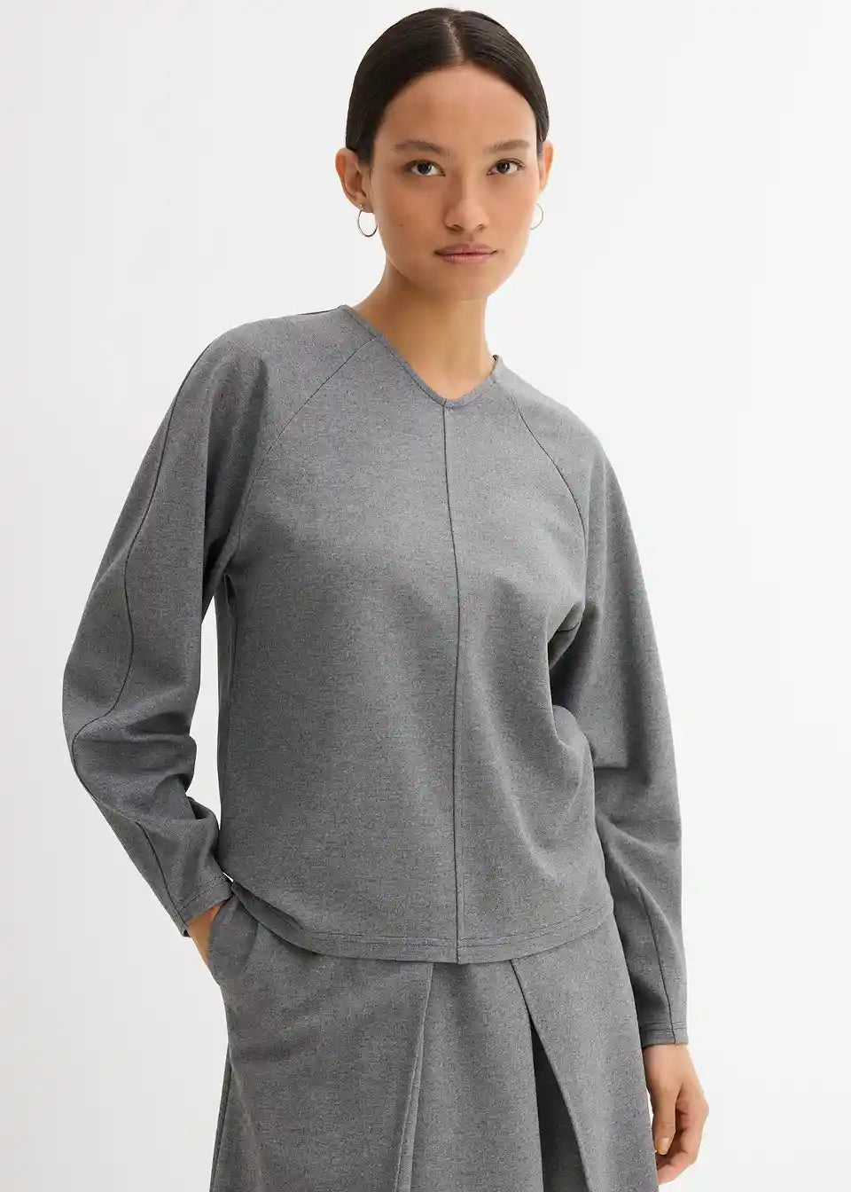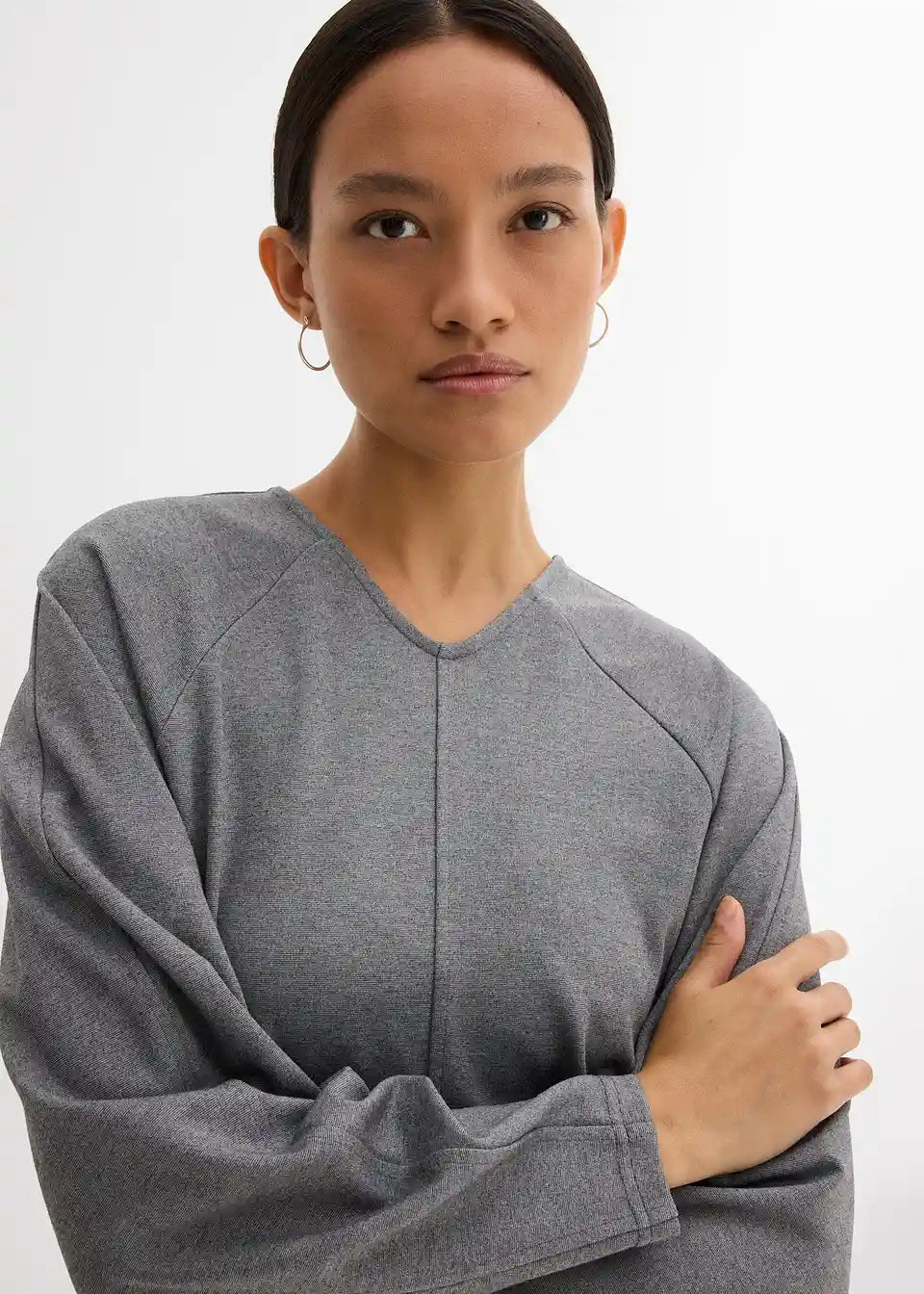 Ravna majica z dolgimi rokavi, obrobljenim V-izrezom ter oblikovalnim prešivom spredaj in zadaj