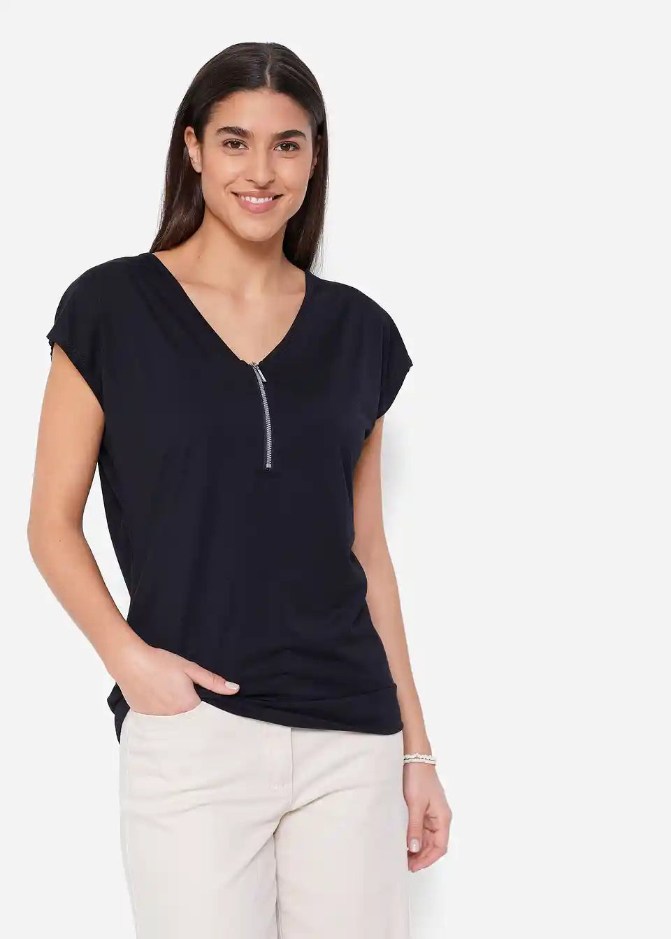 Ohlapno prilegajoča majica z zadrgo na izrezu