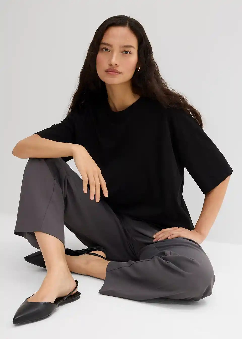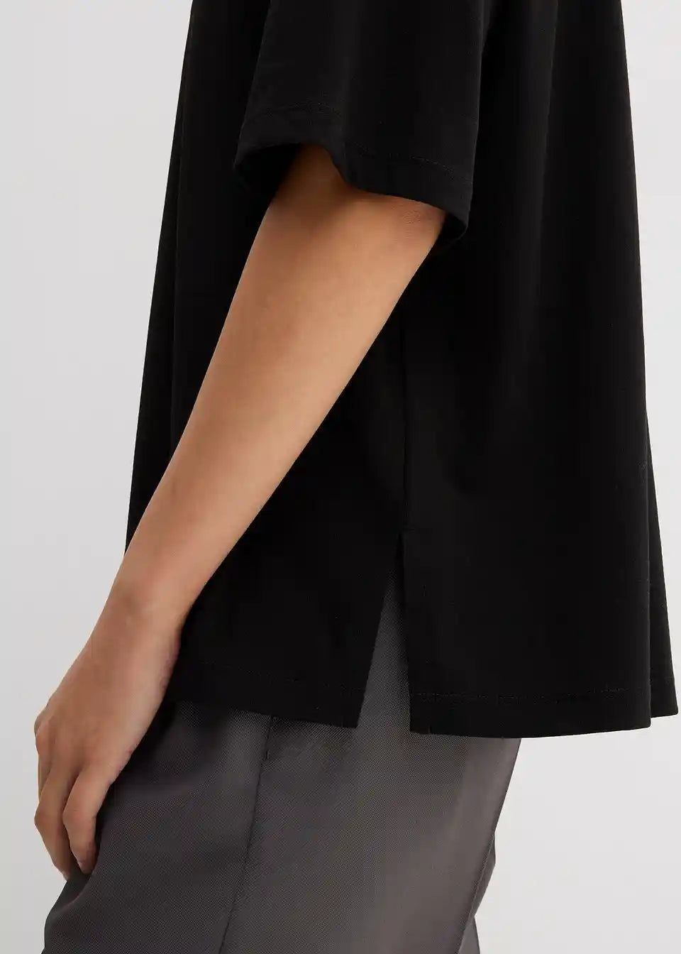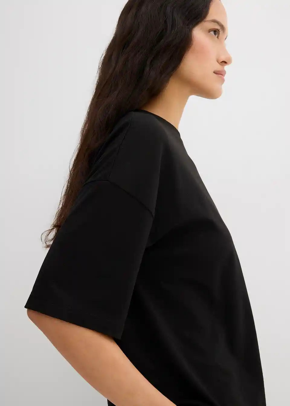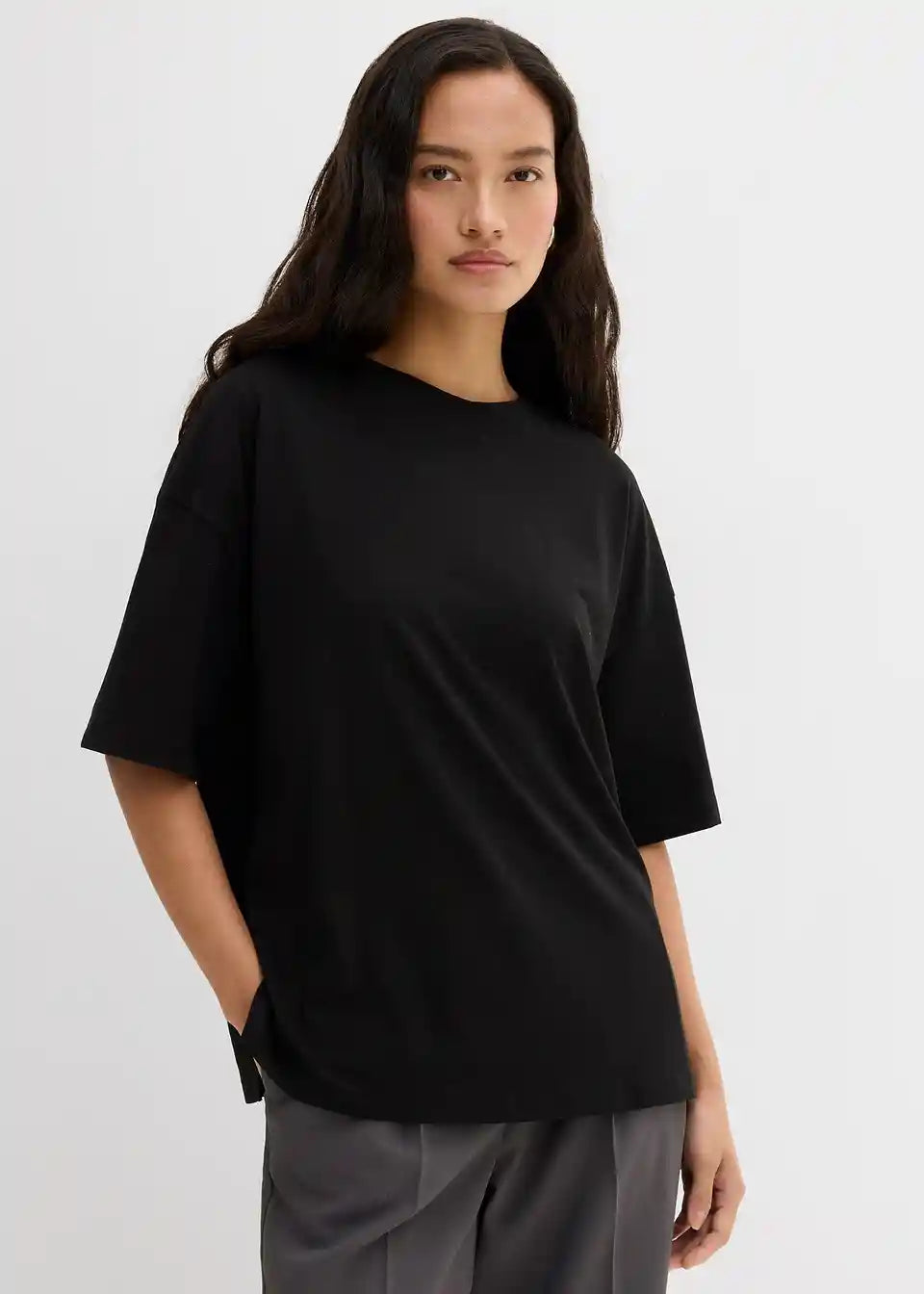 T-Shirt majica v ohlapnem kroju z rebrastim okroglim izrezom ter podaljšanimi kratkimi rokavi