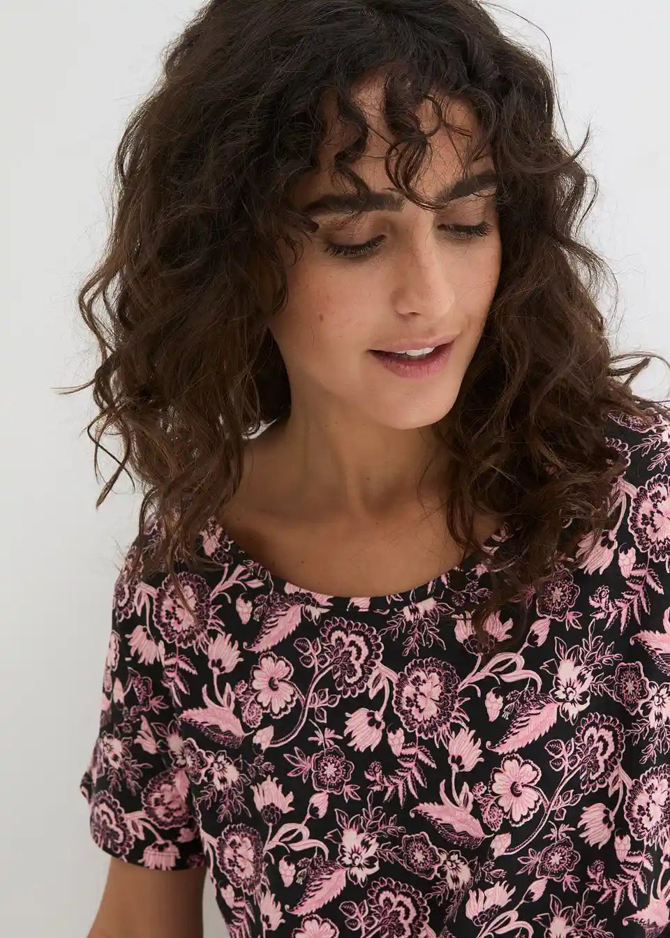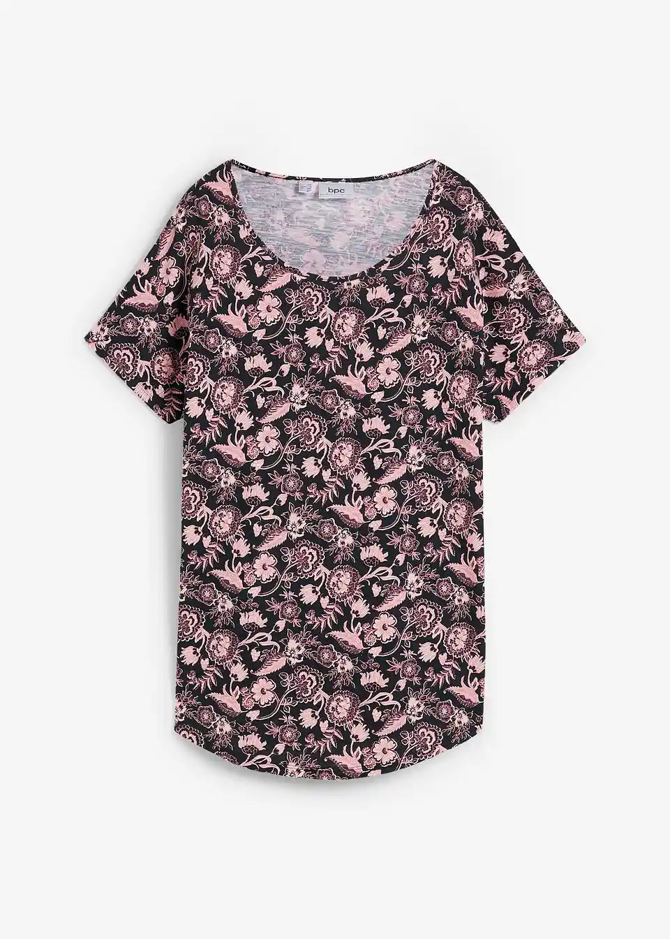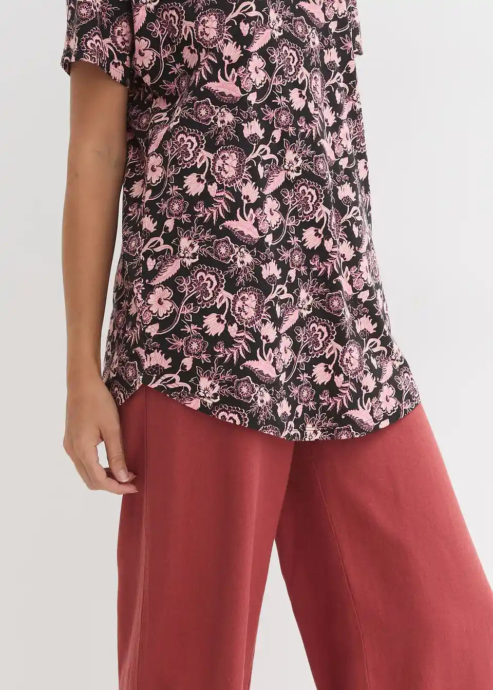 Ohlapno krojena majica iz flammeja z zaokroženim spodnjim robom z ekološkim bombažem