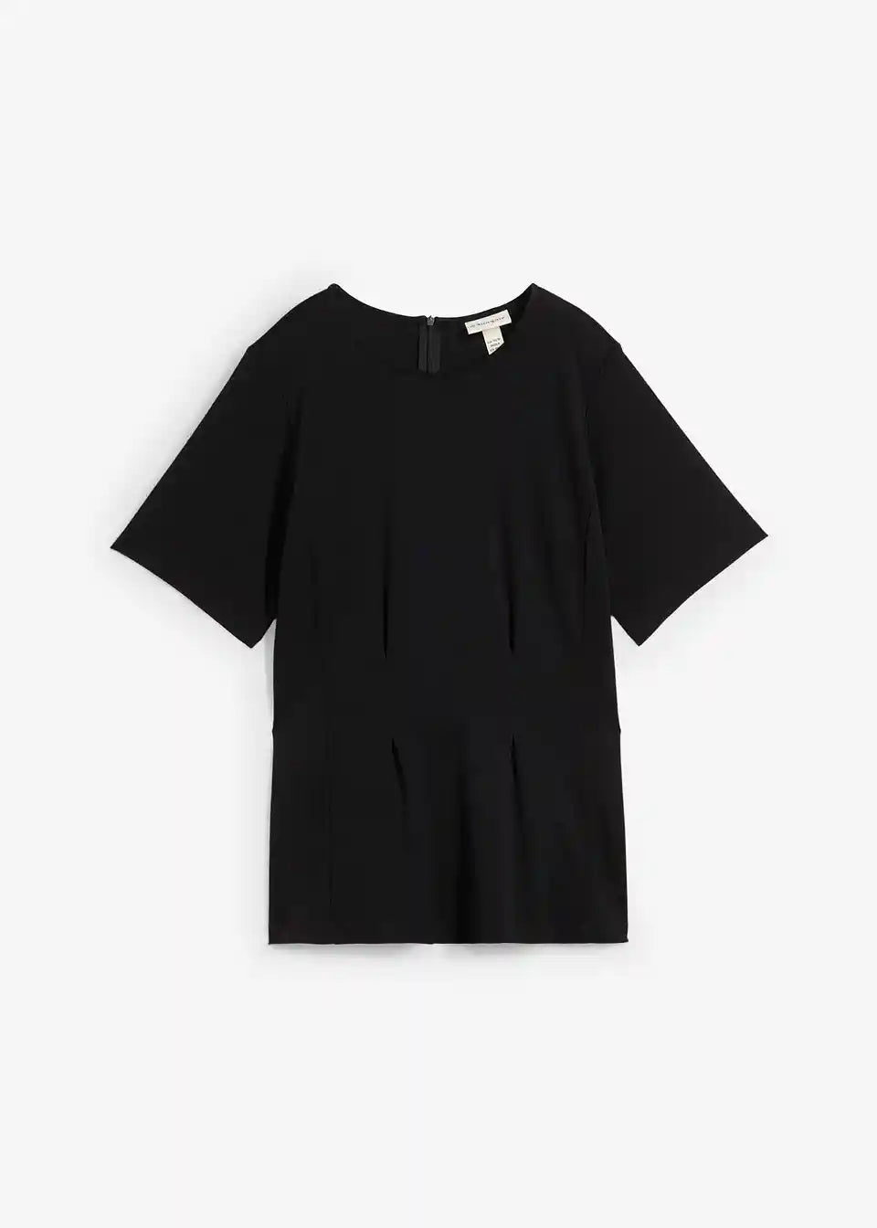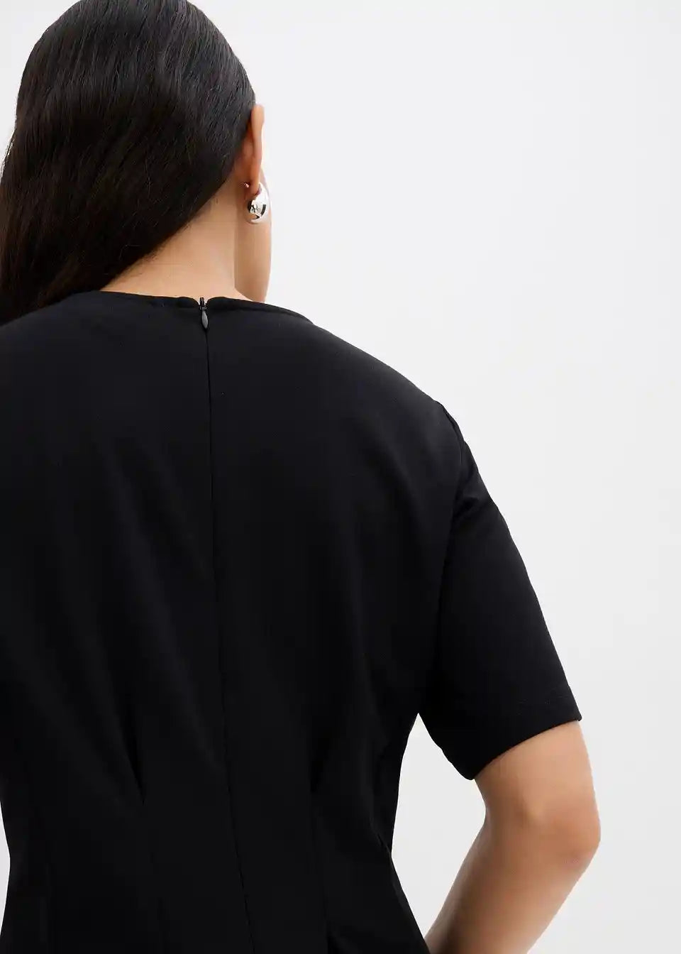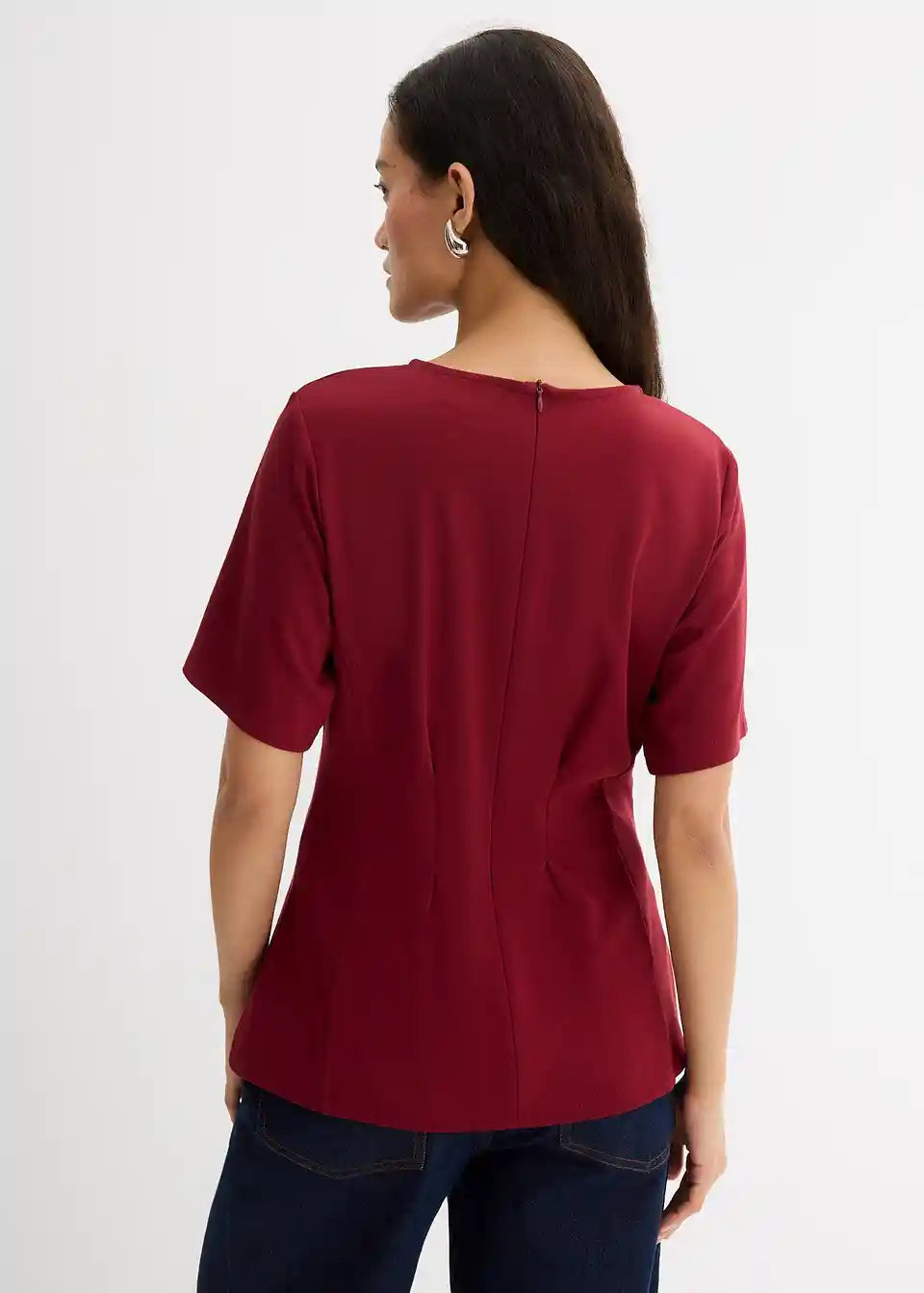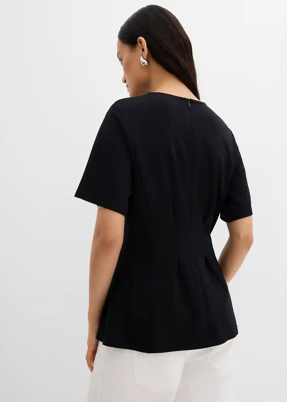 Oprijeta majica s peplum zaključkom na robu in skritim zadrgo na hrbtni strani.