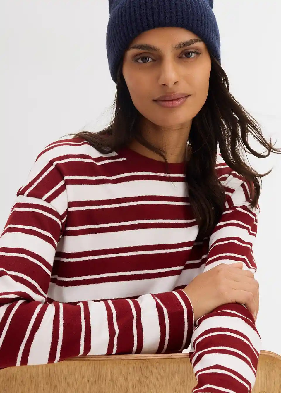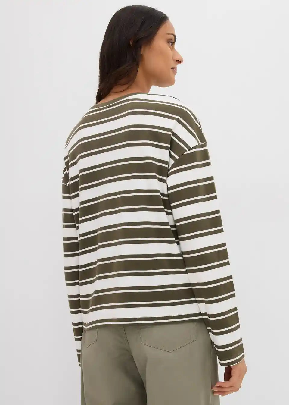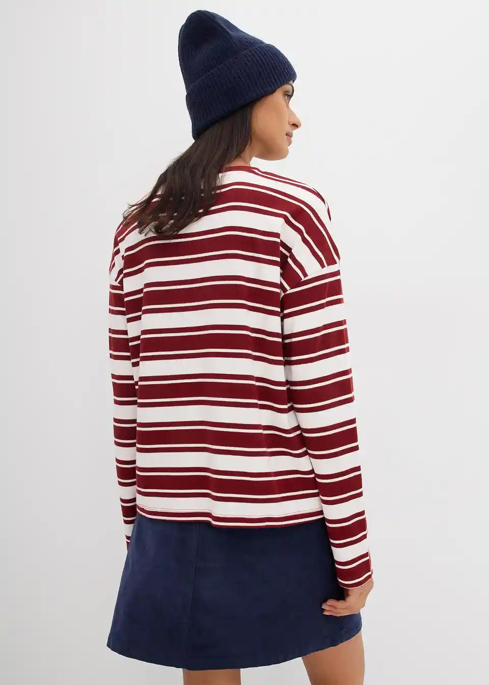 Udobna ohlapna majica iz čistega bombaža z dolgimi rokavi s črtami