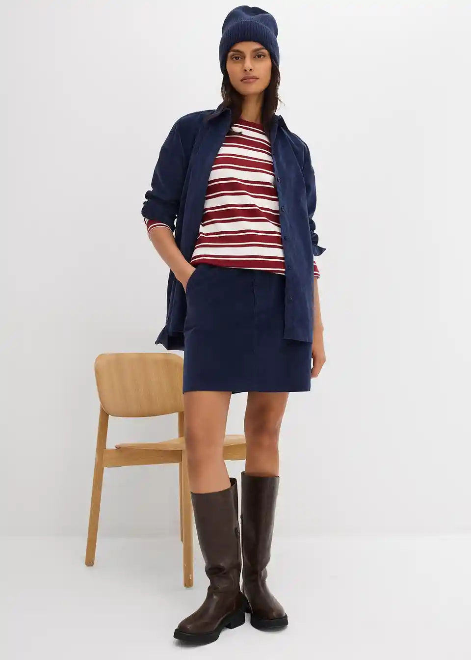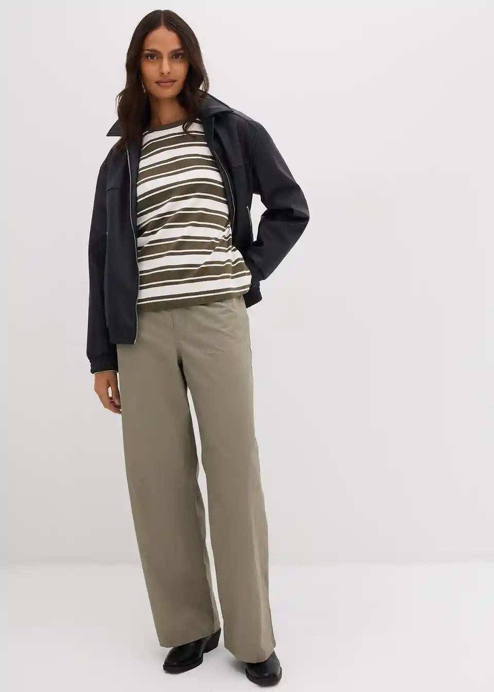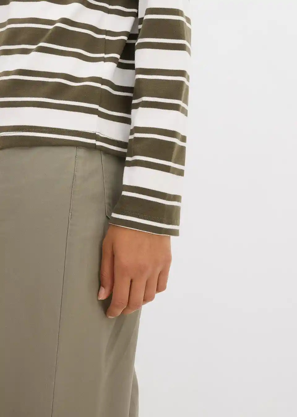 Udobna ohlapna majica iz čistega bombaža z dolgimi rokavi s črtami