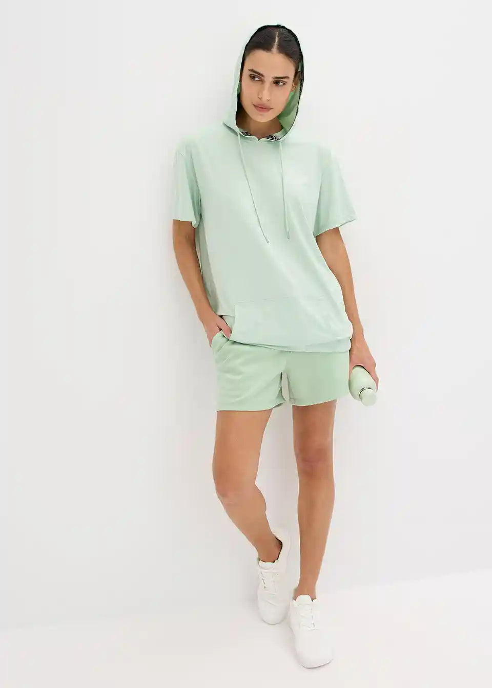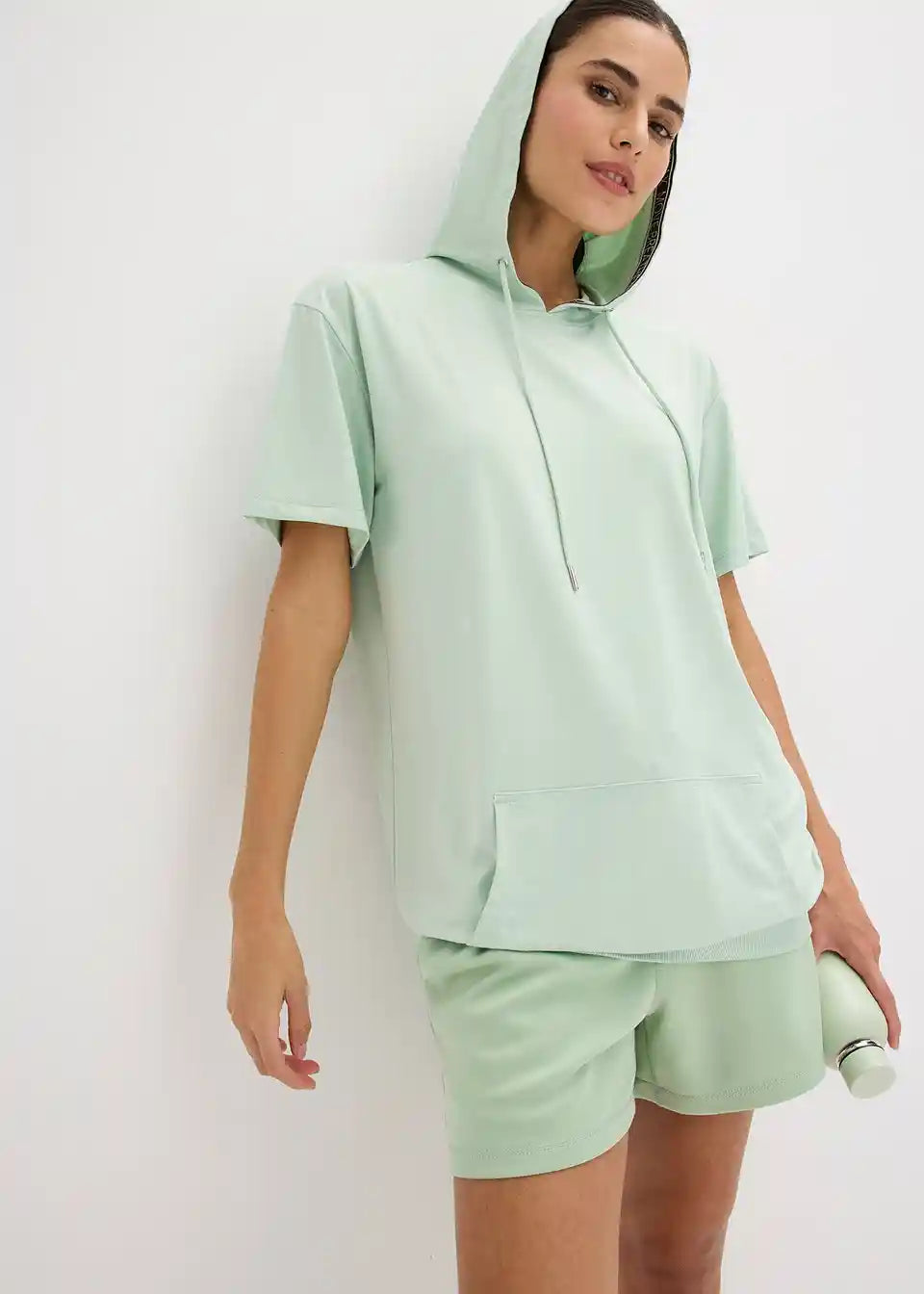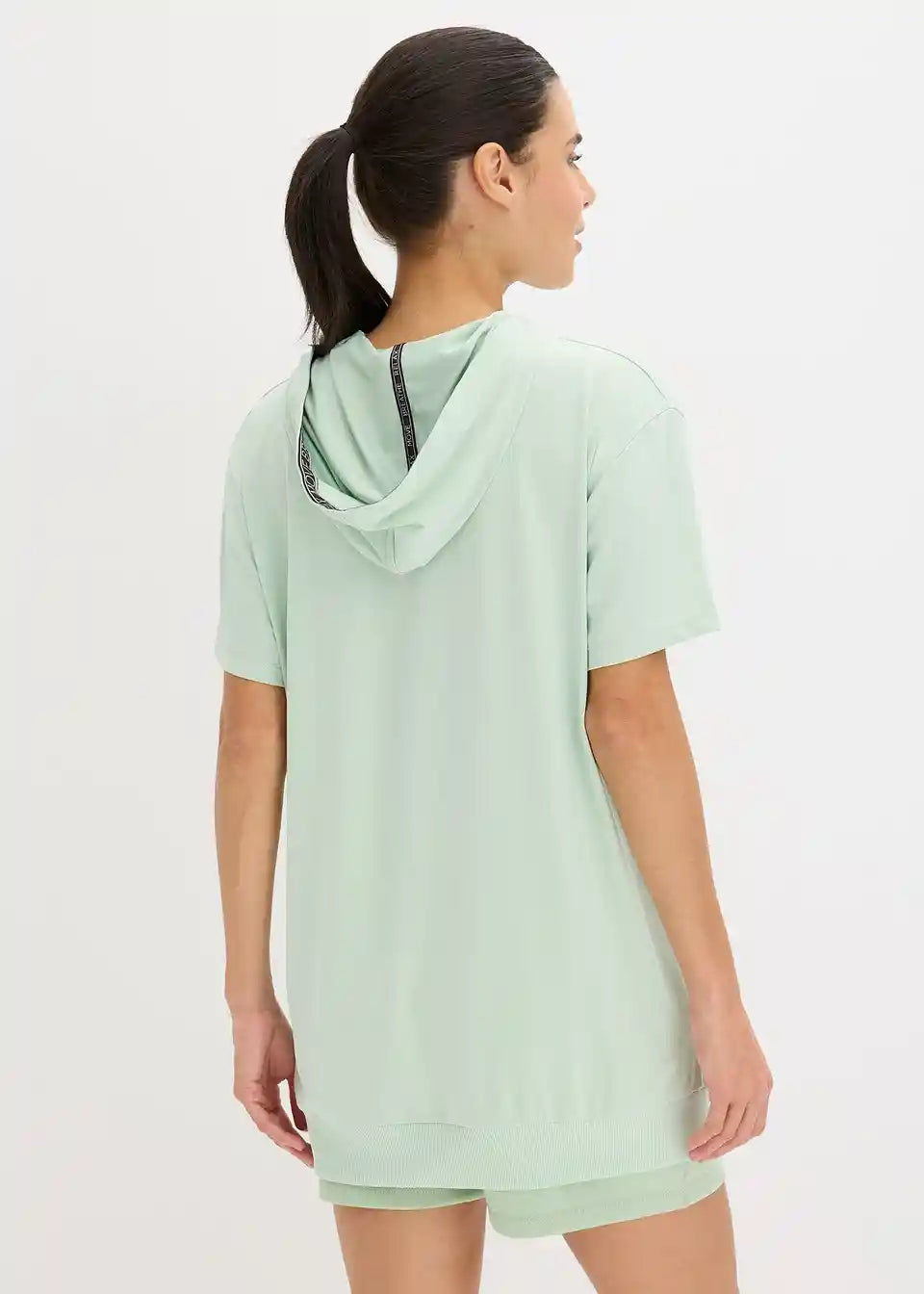 Ohlapna športna majica s kapuco iz hitro sušečega materiala