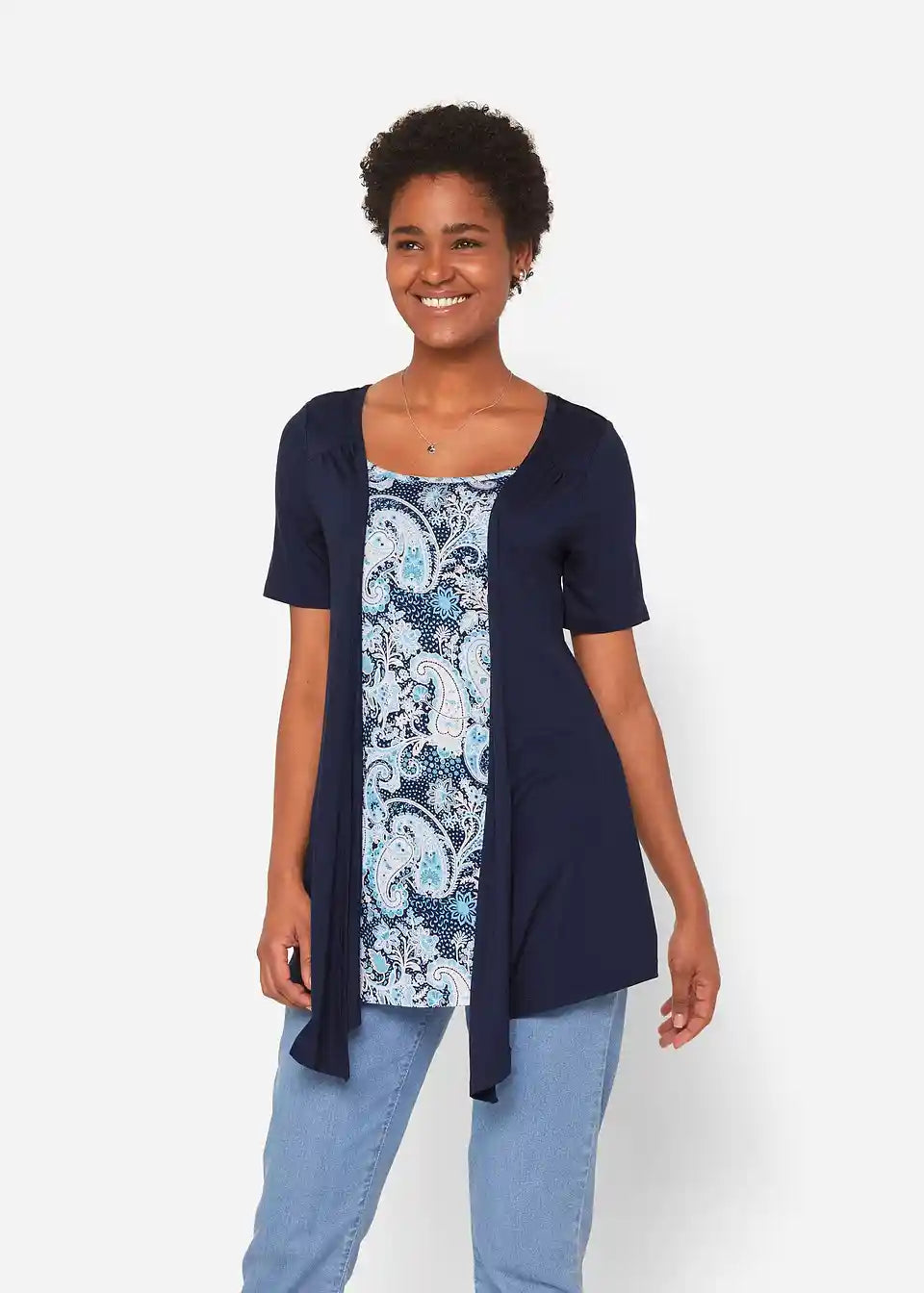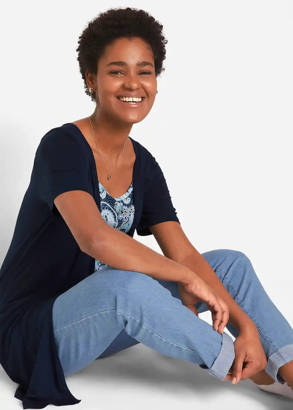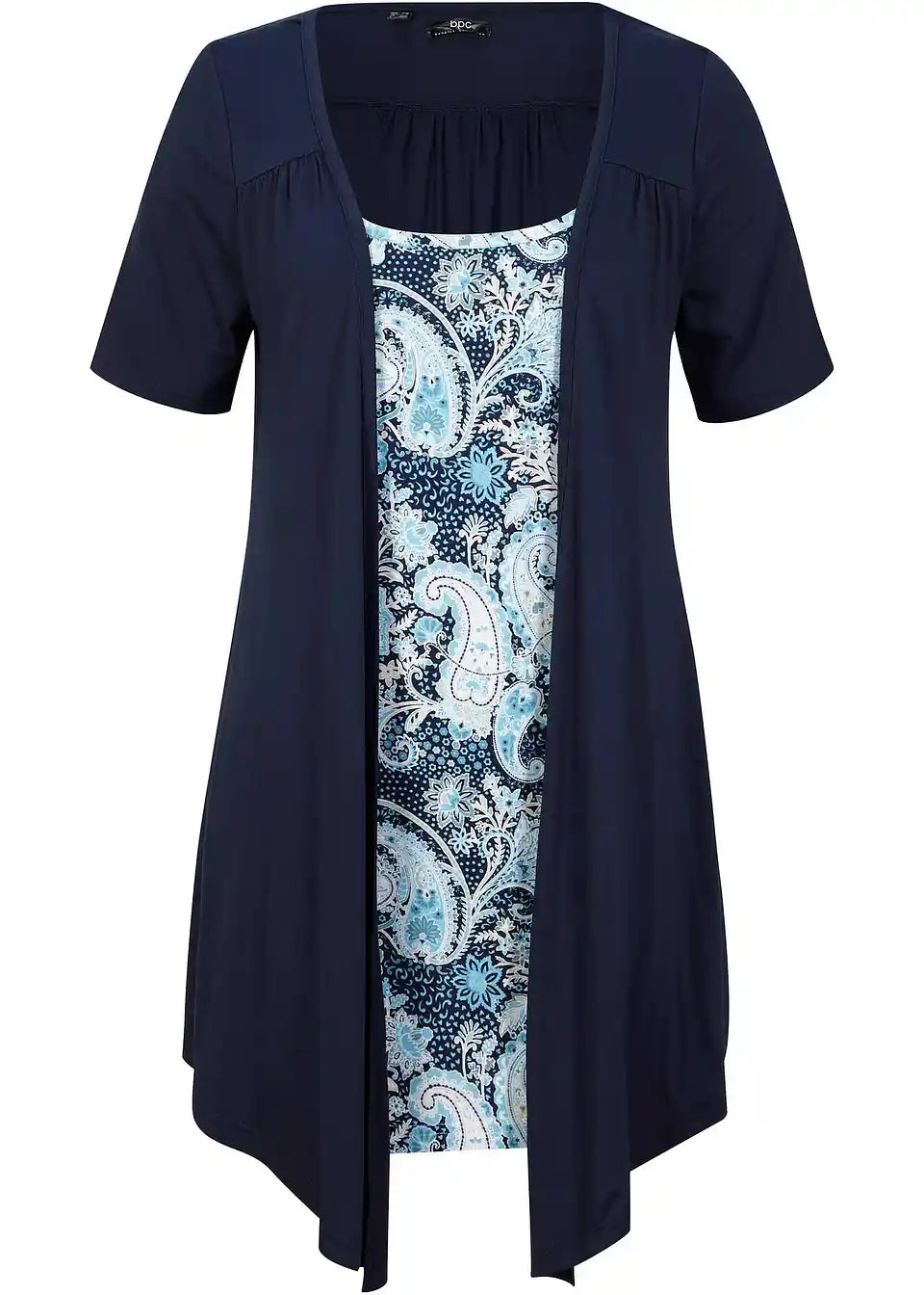 Elegantna 2v1 majica s čudovitim potiskom in okroglim izrezom, kratki rokavi