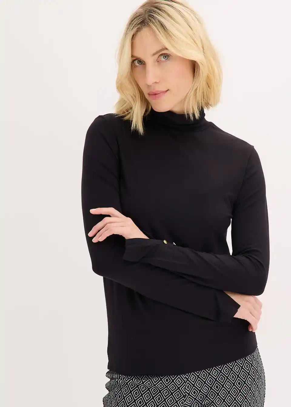 Brezčasna majica s pokončnim ovratnikom z okrasnimi gumbi